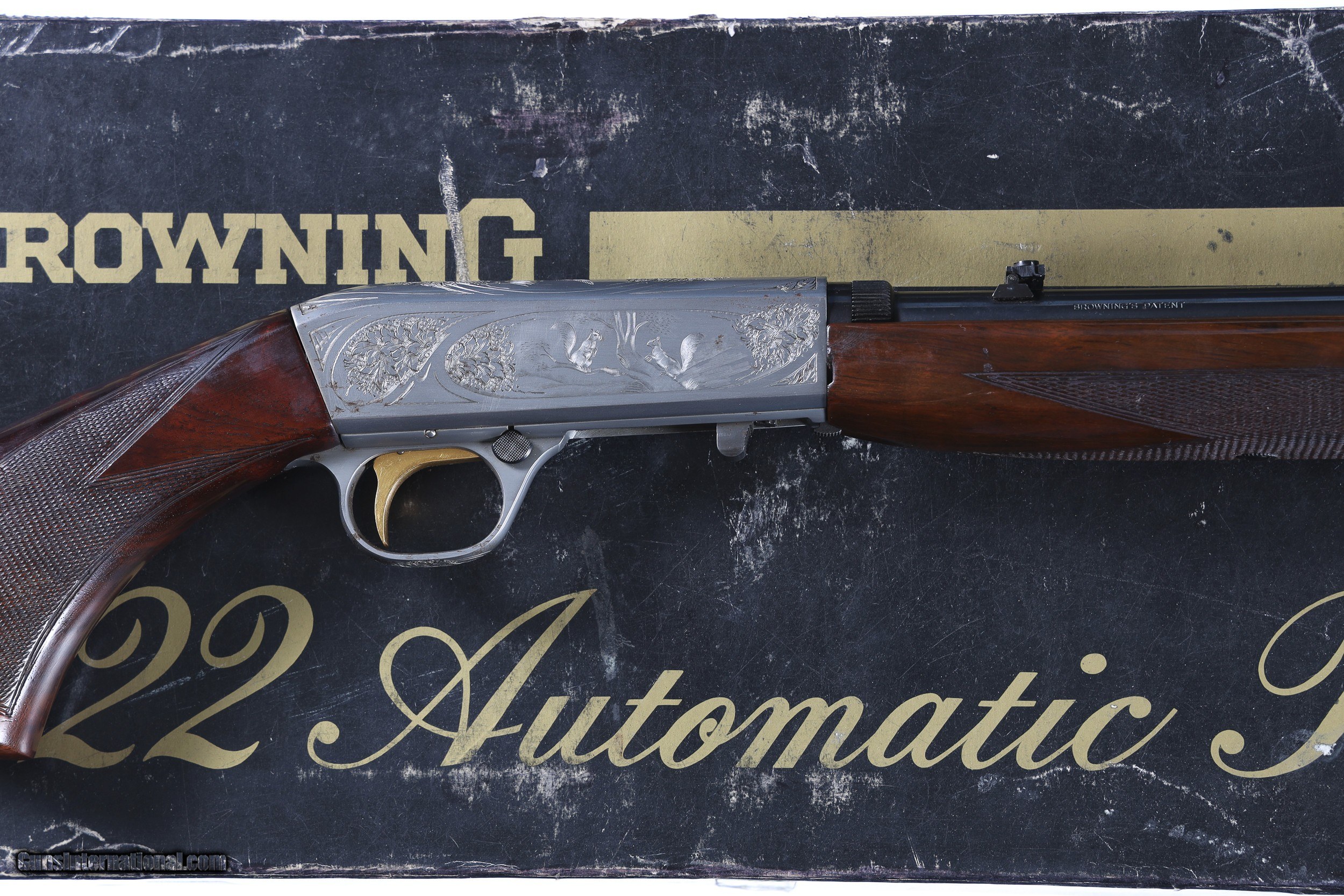 Description: Excellent overall with limited handling marks, tape repair to box. Mfd 1966 in Belgium Grade II, FM marked receiver top. Free Shipping, No Credit Card Fees! SOLD Manufacturer: Browning Model: SA-22 Takedown Serial Number: 6T45992 Barrel Length: 19 Caliber Info: .22 lr |