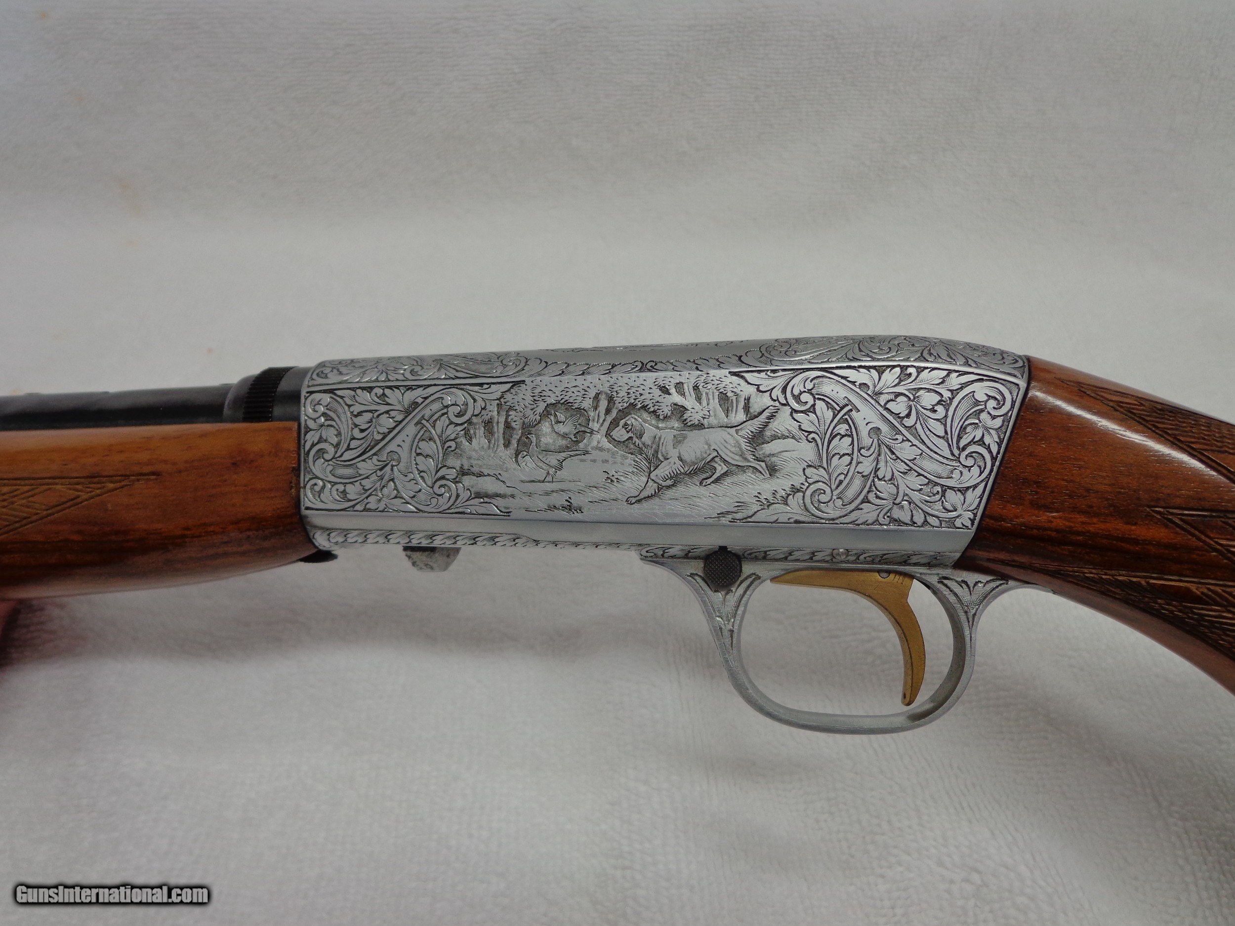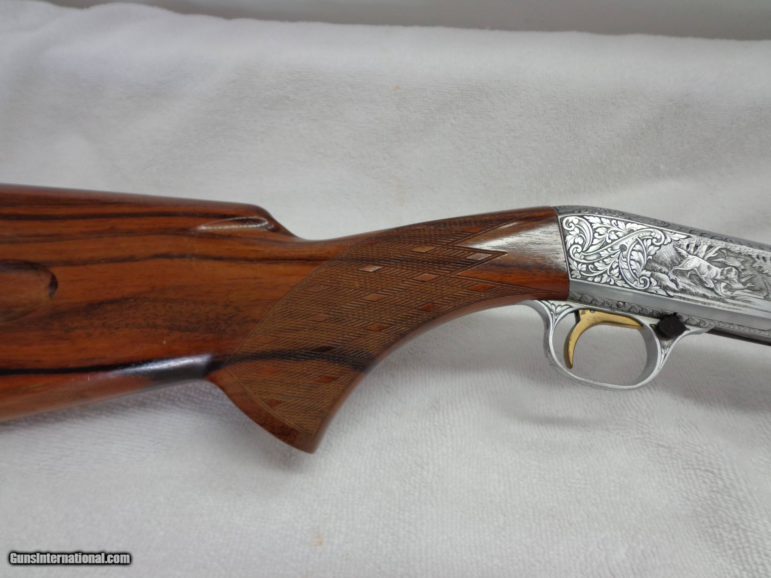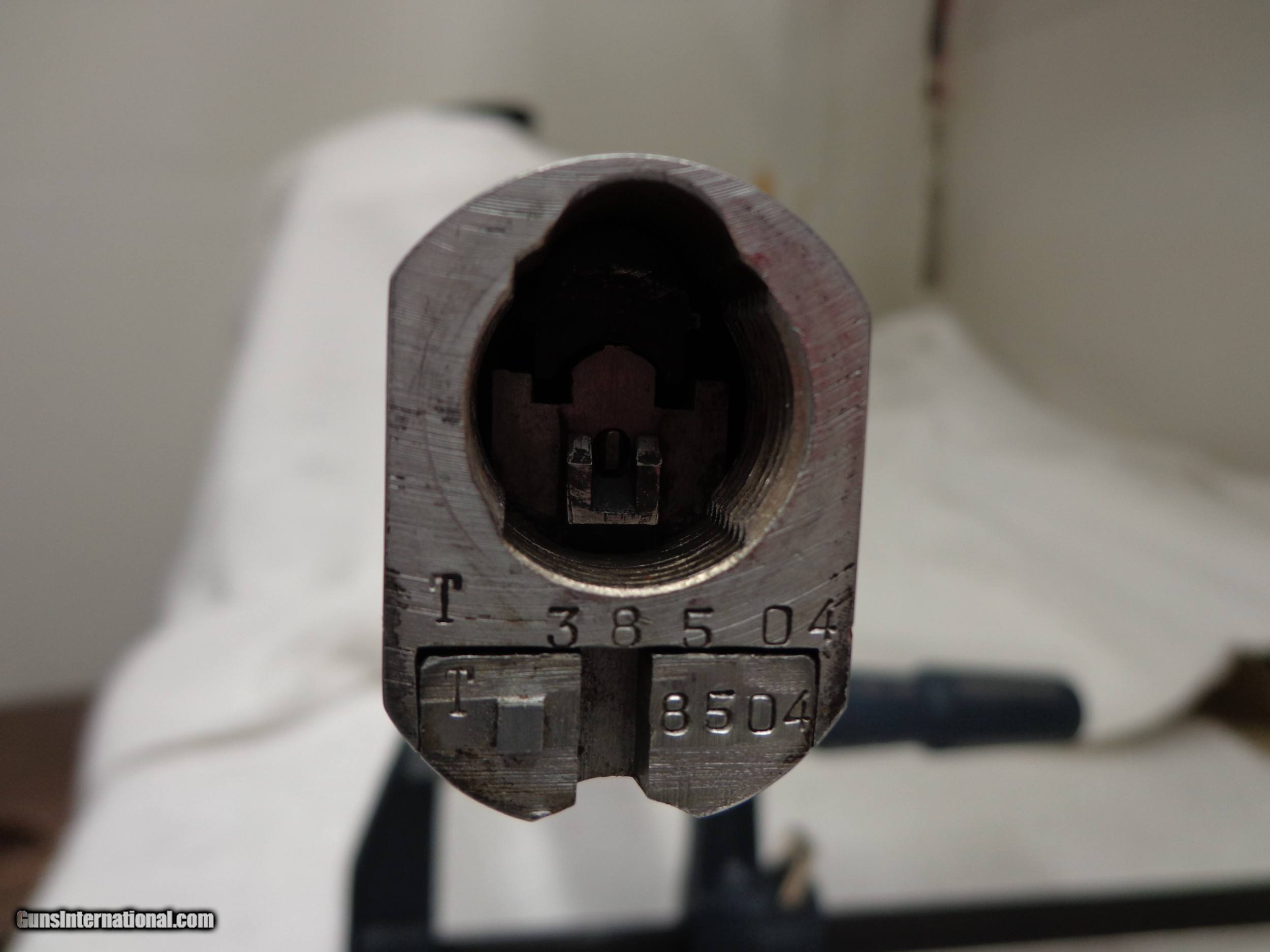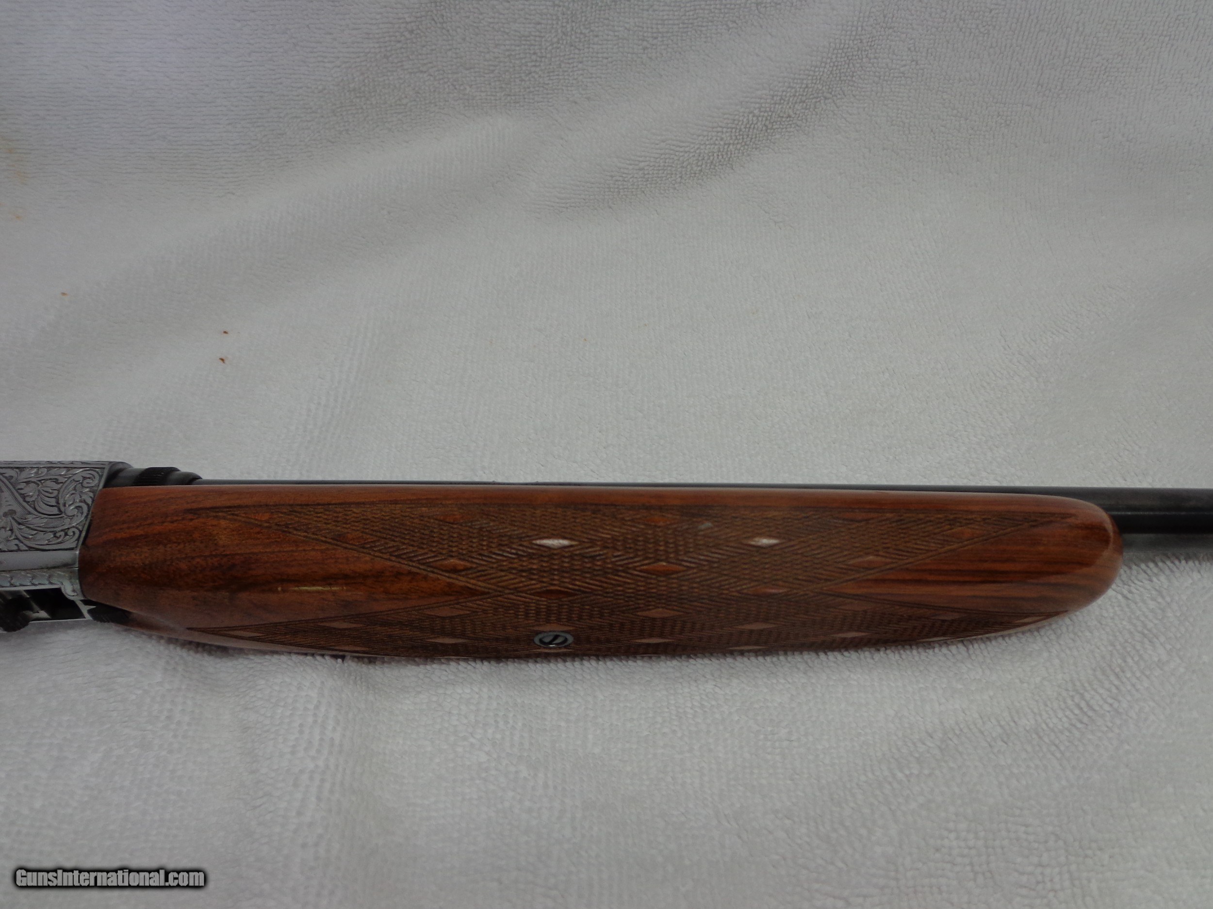 Description: BROWNING SA-22 Grade III. Fabrique Nationale, Belgium. Cal. 22 LR. Serial No.T38504 with matching stock buttplate serial number 38504. Date of manufacture is 1958. Stock is hand rubbed oil finish and shows a few light marks from handling and very light use. Blueing has no rust or worn out spots. Engraving on the receiver is nice and sharp without any nicks or scratches, unsigned. Sights included are the original wheel sight, a newer blade sight and a Leupold Vari X-III 1.5 – 5.0 scope with barrel mount. Rifle barrel is drilled for this mount. Case is the original, very rare, Browning Tolex case with the blue velvet lining. Case is in very good condition inside and out and is provided with one key. Price: $6,200.00 Shipping & Insurance: $50.00 I am a private seller so if your state requires shipment from a FFL add $25.00 SOLD Rifle Caliber: .22 Long Rifle |