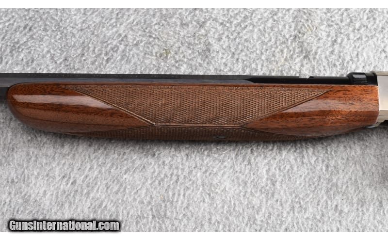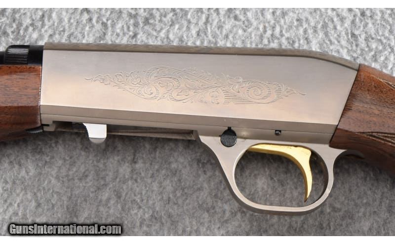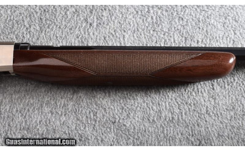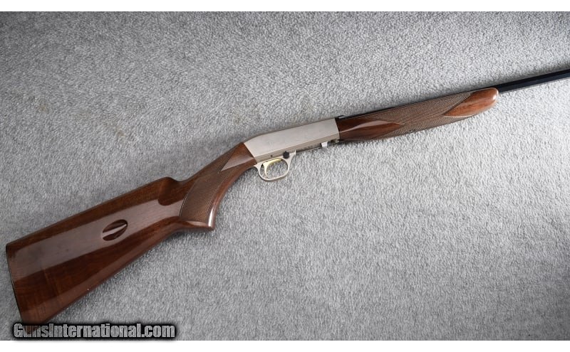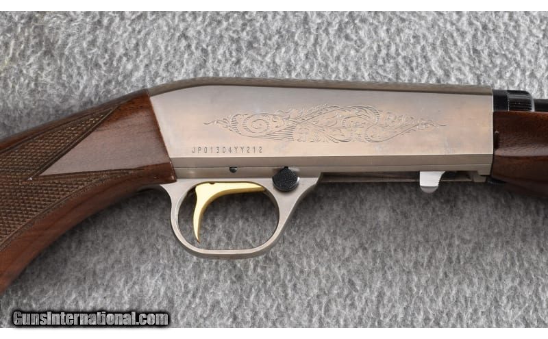Description: This Browning SA22 in .22LR is in excellent overall condition. It features a 19" octagon barrel and a silver receiver. There is a small scratch on the butt stock, otherwise the wood is phenomenal. The bore is bright and shiny and the metal finish shows very little wear. The rear sight appears to be missing and the front sight is of the post & bead variety. This rifle will ship with the original Browning box and trigger lock. .22 Long Rifle SOLD Metal Condition: Excellent Wood Condition: Excellent Bore Condition: Excellent Barrels: 19" Octagon Triggers: Factory Stock Dimensions: 13 3/4" LOP Fore End: Checkered Walnut Semi Pistol Grip Stock - Checkered Walnut Forend Butt Pad: Textured Black Butt Plate Weight: 5 lbs Sights: Post & Bead Front Item Location: Wheeling |