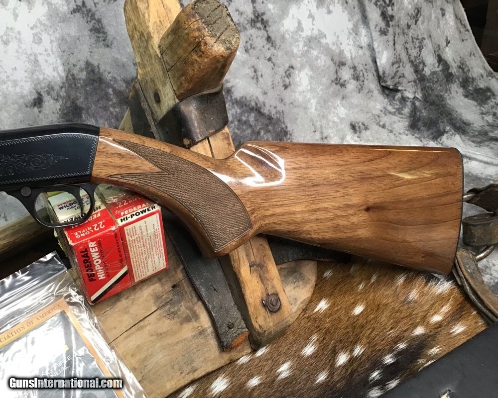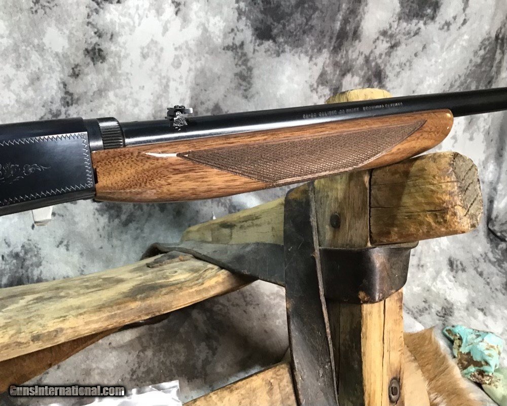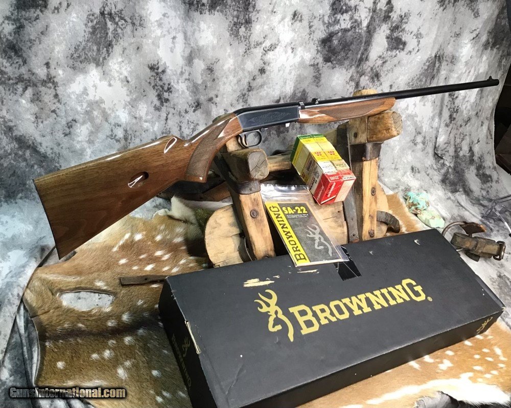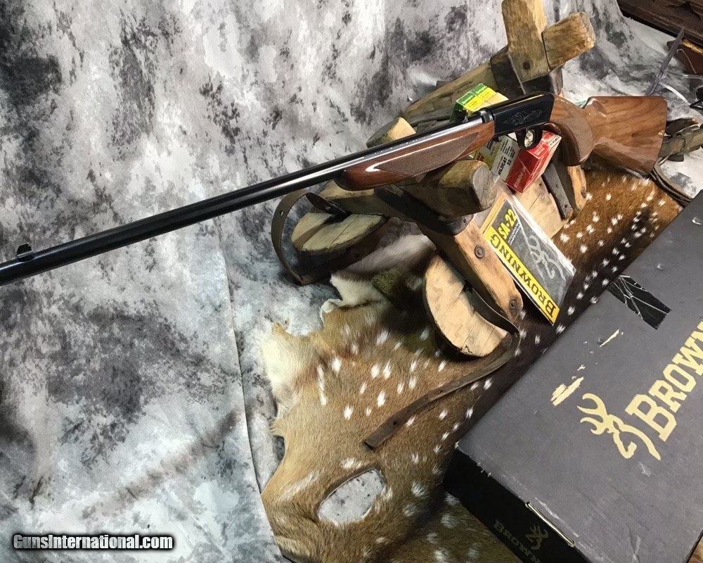 Description: Sold Pending Funds---Scarce Browning SA22 takedown rifle chambered in .22 Short cartridge. Rifle remains unfired in numbered to gun box with manual and owners papers. I had to clean off factory packing grease to take photos of gun and assembly for first time since factory. This model is based on a John Moses Browning patent and has been in production since 1914 and first shipped to US shooters in 1956. The bottom ejection of spent cartridges allows ambidextrous operation and leaves open panels on receiver sides for tasteful factory engraving. Rifle wears a 19.25 inch Blued barrel and checkered Walnut stock with flip up adjustable sights. Fun plinking at targets or hunting small game with the .22 short round is good stuff and a perfect gun to train young shooters. A rare chance to own a new in box SA22 Browning Grade I to enjoy in your collection or spend countless hours of shooting fun with the family. Add 3% if paying with credit card. Free shipping for US veterans and retired LEO. God Bless America from a proud American, and a Viet Nam Vet , thankful for our freedoms.. paid for by the Blood ,Sweat and Tears of our brave men and women in uniform. Ten Below Firearms is a Veteran owned and operated business. We specialize in out of production models of high quality firearms. We love to ship! We ship to all states where legal, just give us a call! Handguns normally ship for $35 and Long guns for $45 up to $75 for extra length long guns. That's 2-3 day USPS Priority shipping, Delivery conformation and with tracking number. Optional Postal insurance is additional $1.70 per $100 and highly recommended. We are OPEN BY APPOINTMENT ONLY FOR IN PERSON VISITS, We trade, sometimes. Layaway:If needed we offer a 60 day layaway program. Terms, 1/3 of purchase price down, 1/3 due in 30 days, and the final third to include card fees and shipping due at 60 days. Funds are non transferable and non refundable .Layaway is not available on negotiated prices. SOLD Rifle Caliber: .22 Short Manufacturer: Browning Model: SA22 Short Grade1 Serial Number: 02956ZX212 Barrel Length: 19.25 inch Condition: NOS Metal Condition: Excellent Wood Condition: Excellent Bore Condition: Excellent Action: Semi Auto Stock: Checkered Walnut Finish: Blued Sights: Flip up adjustable Manufacture Date: 1913 Engraving: Factory Case: Box Item Location: Mn |