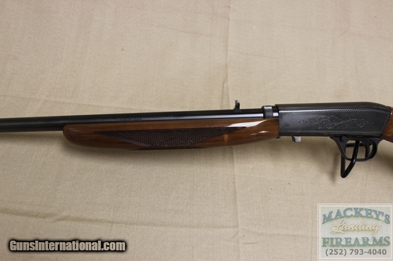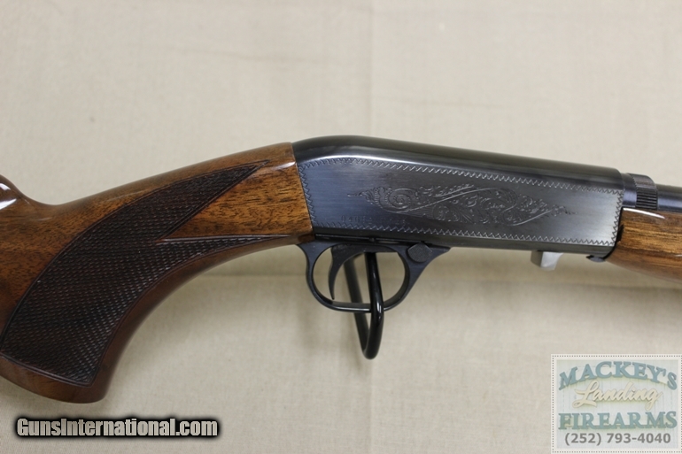 Description: In production for nearly a century, the SA-22 is unlike any other rimfire rifle on the market. Much more than "just a 22," the history of this fine rifle can be traced back to the mind of the gunmaker himself, John M. Browning, and is a lasting tribute to his genius. The SA-22 is sure to become your favorite plinker and varmint rifle. It is lightweight and easy to carry on a squirrel hunt, and easy to load for a day of plinking at the range. Construction quality and materials are top notch to ensure longevity and lasting beauty. The fine Walnut stock is sharply Checkered and polished to a sheen. The SA-22 ejects fired brass out the bottom of the receiver to make shooting a pleasure for right- and left-handed operators. Perhaps the most interesting feature is the ability to take the rifle down into two parts — the buttstock and receiver and the forearm and barrel — for storage or to simplify cleaning. Receiver - Steel, Takedown design, Polished blued finish, Scroll Engraving Barrel - Polished blued finish, Drilled and tapped for scope mount Action - Autoloading, Bottom ejection, Tubular magazine, Crossbolt safety Stock - Gloss finish American Walnut, Checkered Features - Adjustable sights with gold bead front Call (252)793-4040 for more information. Please reference our inventory #46451. FFL required for shipping. No shipping outside of the US. SOLD |