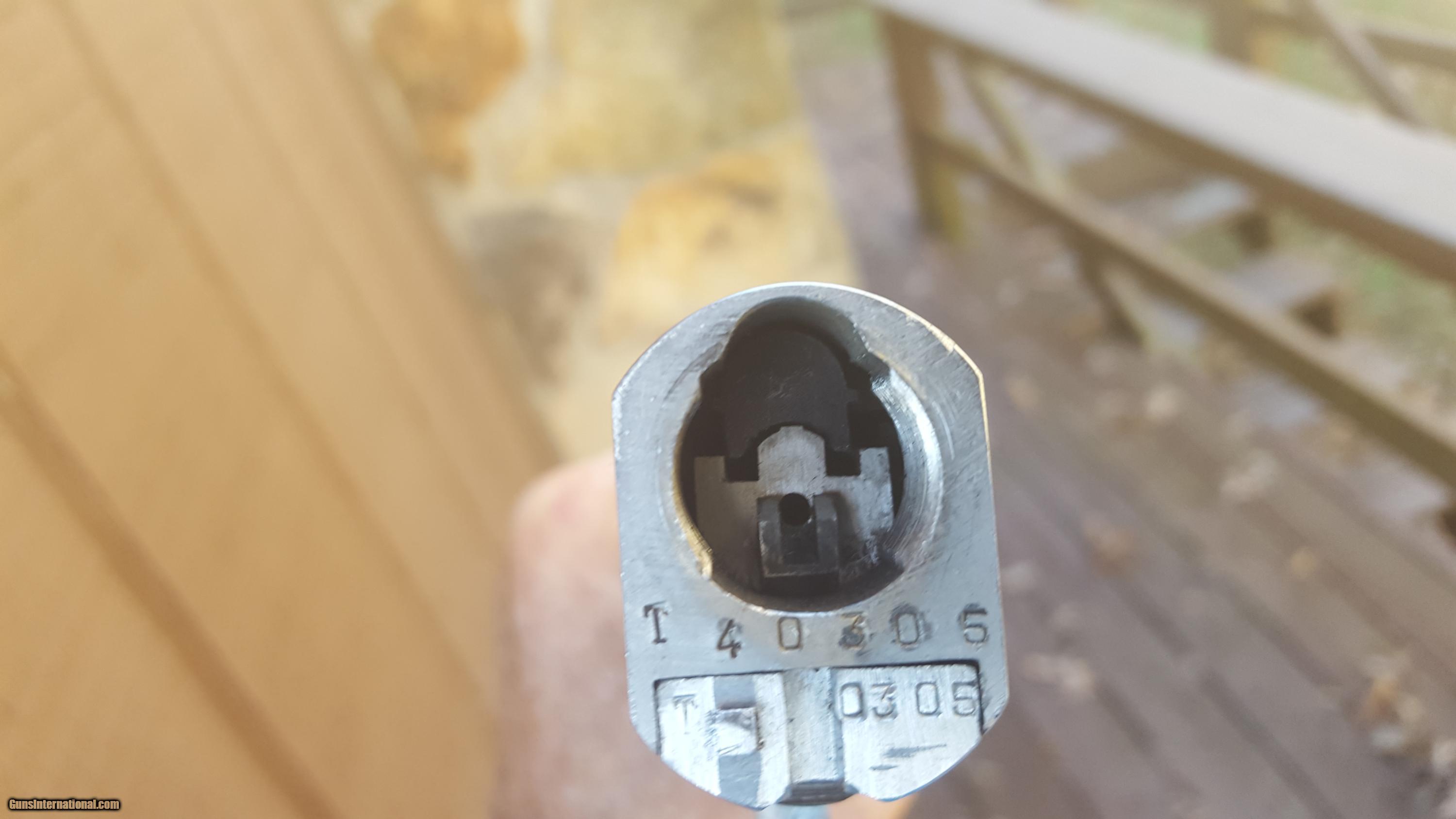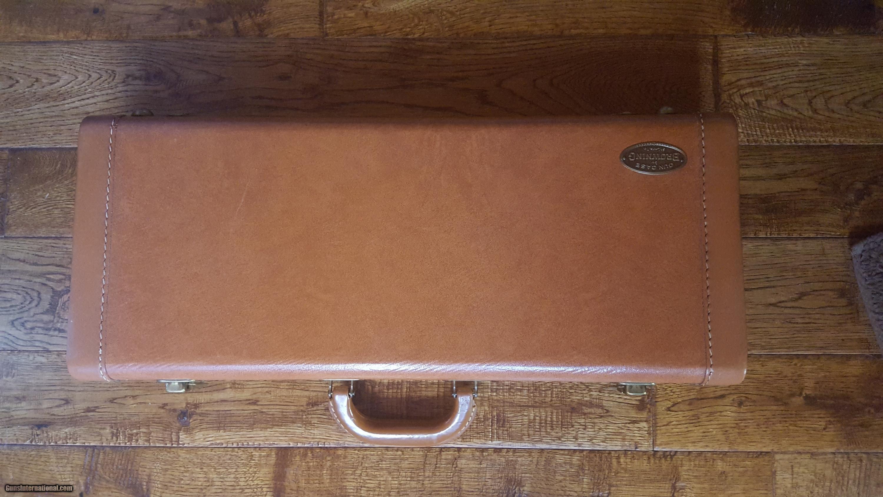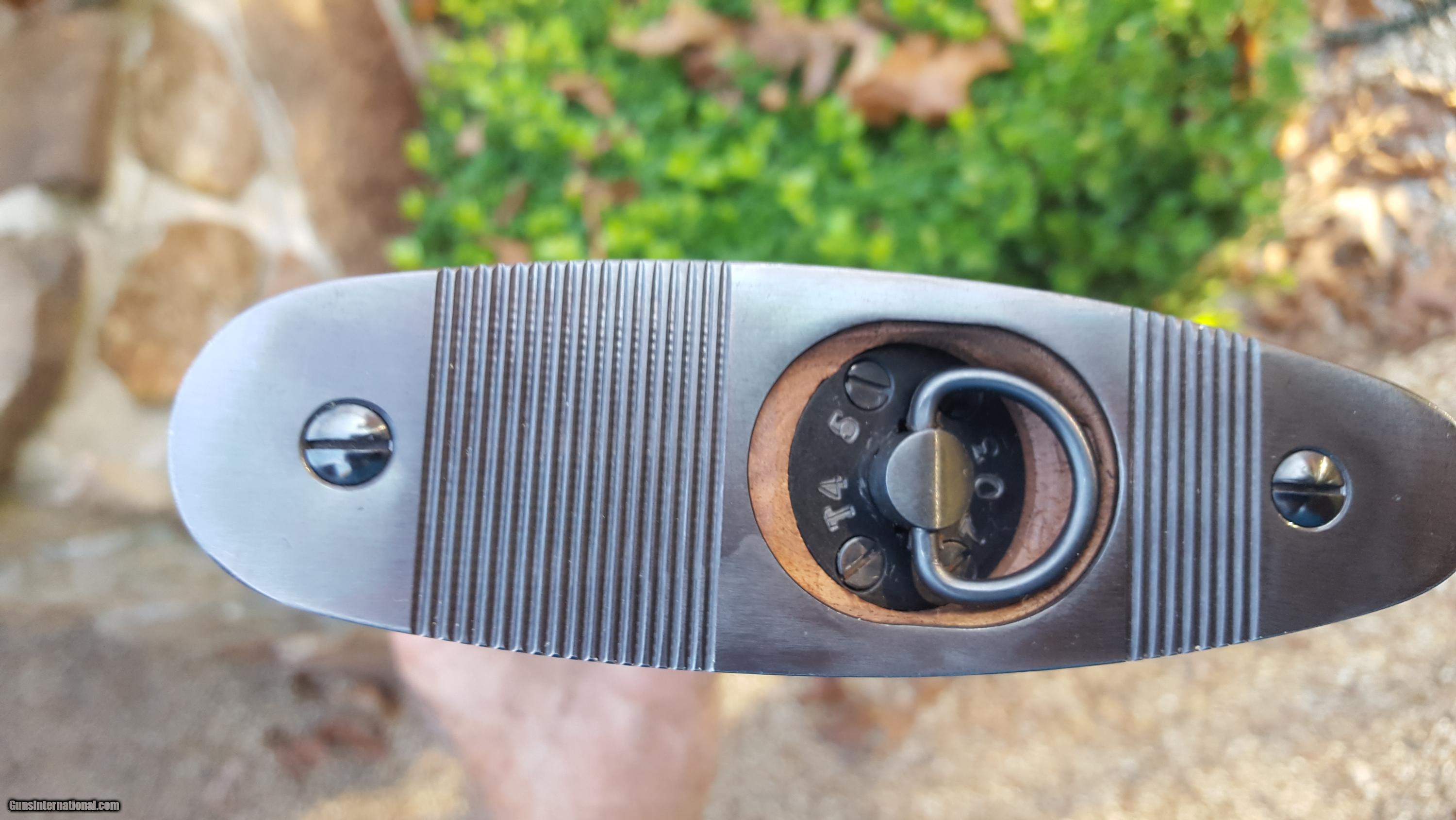 Description: SOLD PENDING RECEIPT OF FUNDS This Grade 3 Belgian Browning .22 semi-auto rifle was manufactured in 1958. It comes complete with original pamphlet, Browning luggage case, and wheel sight. The engraver is unknown. It has been fired and there are a couple small dings in the stock which is spectacular walnut. SOLD Curio/Relic: Yes Manufacturer: Browning Model: semi-auto Caliber Info: .22 Condition: Excellent Metal Condition: Excellent Wood Condition: Excellent Bore Condition: Pristine |