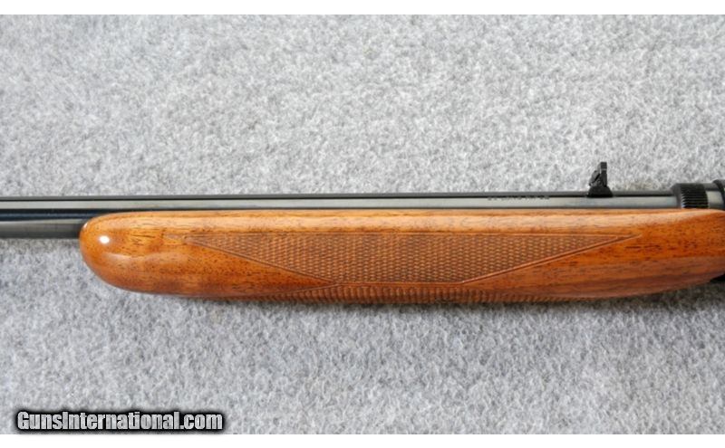 Description: SOLD Manufacturer: 1968 Caliber Info: .22 LR Metal Condition: Excellent with light wear on the sharp edges Wood Condition: Very good with a few scratches Bore Condition: Excellent, sharp and bright Barrels: 19 inch Stock: Checkered walnut pistol grip stock Stock Dimensions: 13 3/4 inch LOP Butt Pad: Serrated steel plate Weight: 4 lbs. 14 oz. Sights: Folding leaf rear, bead front Item Location: Lehi, UT |