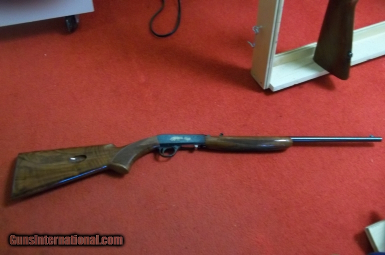 Description: ****************SALE IN PROGRESS*********************** THIS BROWNING 22 SEMI AUTOMATIC 22 GRADE V1 IS IN EXCELLENT CONDITION, NO MARKS, SCRATCHES, RUSTBREAKS, OR DENTS. BLUEING IS 100% FACTORY SIGHTS AND FACTORY TAPPED FOR SCOPE. DOES NOT APPEAR A SCOPE WAS EVER ATTEMPTED TO BE ADDED. THE BARREL CAN BE UNSCREWED IN FRONT OF THE ACTION. SERIAL NUMBER IS 07406PRXXX. RECEIVER IS ENGRAVED WITH GOLD INLAYS ON THE LEFT SIDE IS A DOG CHASEING A RABBIT. ON THE RIGHT SIDE IS A FOX AND SQUIRREL. ON TOP IS A DOGS HEAD ALL IN GOLD. THE REST OF THE RECEIVER ON BOTH SIDES IS ENGRAVED. TRIGGEER GUARD HAS A STAG HEAD IN GOLD. WOOD IS COMPLETELY COVER WITH FIGURE AND THE CHECKERING IS CRISP AND SHARP. I WAS TOLD IT WAS NEVER FIRED BUT I CAN NOT CONFIRM THAT IS DOES NOT HAVE ANY MARKS OF ANY KIND. SHIPPING WILL BE IN A PADDED HARD CASE UPS INSURED $55.00. SOLD |