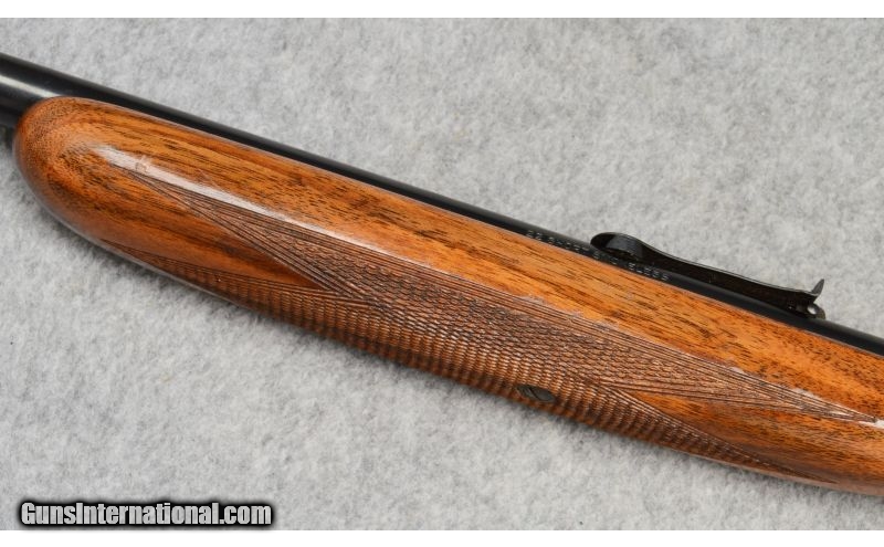 Description: SOLD Caliber Info: .22 Short Metal Condition: Fair with scratches and pitting. Wood Condition: Good with handling marks. Bore Condition: Shiny with some rifling. Barrels: 21½ Stock: Checkered walnut. Fore End: Checkered walnut. Butt Pad: Grooved steel. Weight: 5-lbs., 6-ozs. Sights: Front bead, stepped rear blade. Item Location: Fort Worth, TX |
