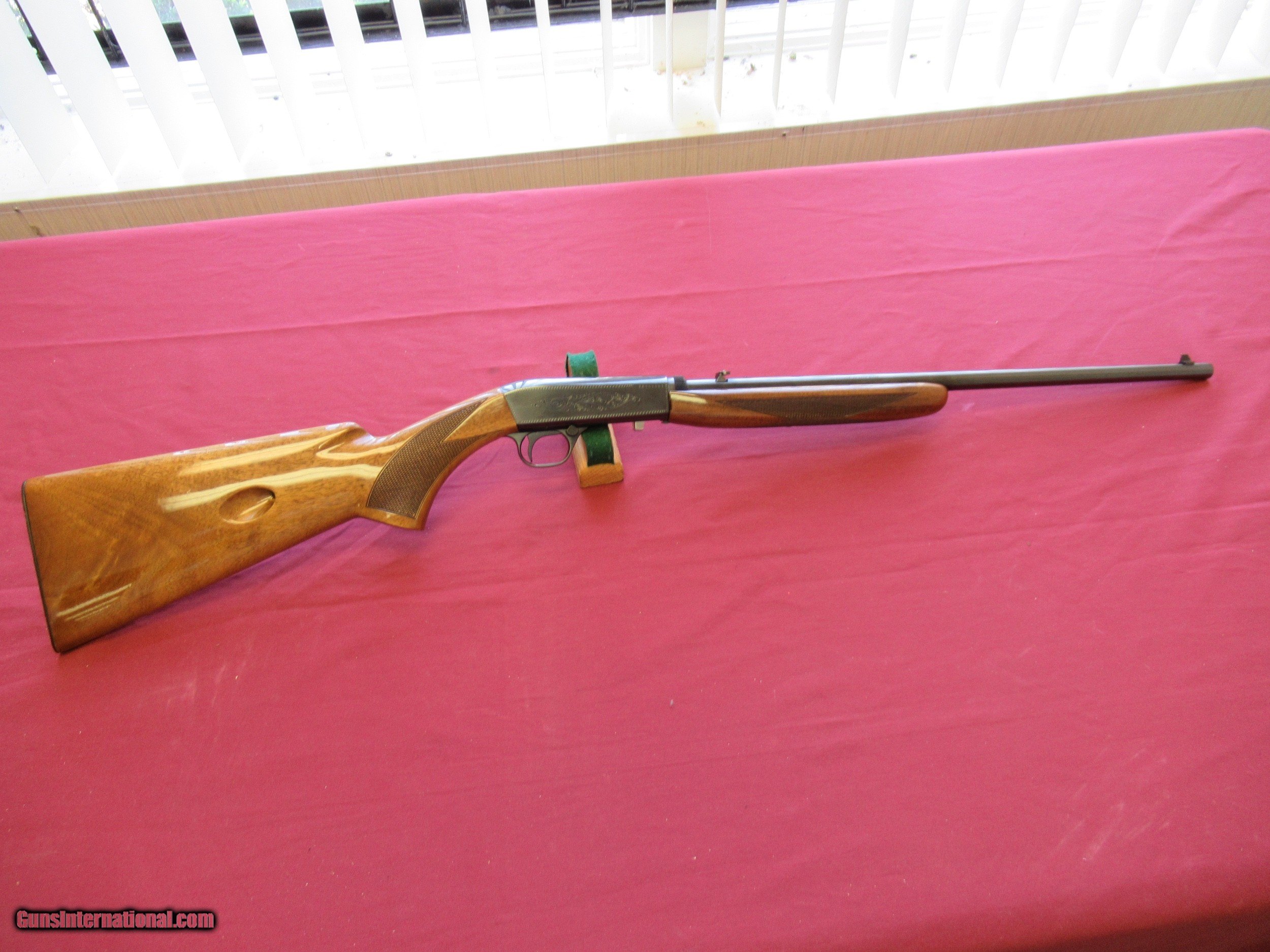 Description: Beautiful Grade I Browning Semi-Auto in 22LR. This gun is near Flawless!! The tiny handling marks are pictured but I cannot be sure one can see them because they are so Minute they may not show up in the photos. One little mark on the top of the receiver and a couple of tiny marks on the butt-stock. Mint bore of course. I can't say enough good things about this gun. It is nearly Perfect. A real Collector if there was one. Just look at the photos. Metal is 99% + and so is the Wood. Not yet a Curio. 44 Years Old. Built in 1972. SOLD |