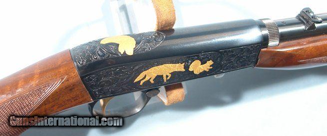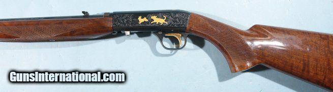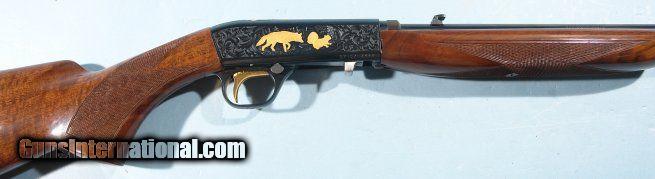 Description: LIKE NEW BROWNING SA-22 .22LR GRADE 6 OR VI SEMI-AUTO RIFLE, CIRCA 1991. 100% factory original blue and gold remaining. Wood same with no losses and unturned screws. Almost NO signs of use. Prime example. Steel buttplate. Original mag tube. Made in Japan. SOLD |
