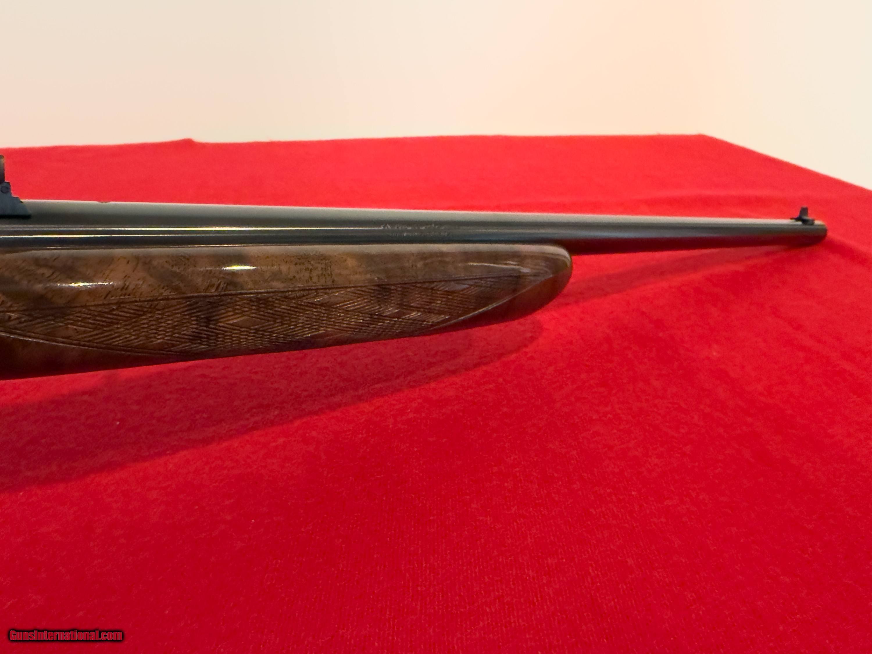 Description: Beautiful Factory Engraved Browning 22 Auto Grade III with original labels The Browning SA-22 Grade III is a semi-automatic rifle chambered in .22?Long?Rifle and fitted with a 19-inch barrel. It features Browning’s takedown design and factory engraving typical of the Grade III configuration. The receiver displays detailed game scenes with a combination of blued steel and French grey finish accents. The rifle retains its original factory labels corresponding to the Grade III designation. Engraving on the receiver depicts a setter flushing pheasants on the left side, a setter flushing mallards on the right, and a setter with a downed mallard on the top surface. The sighting system includes a beaded blade front sight and an elevation-adjustable flip-up rear sight. The stock and forend are made from figured wood with skip-line checkering, and the buttplate is blued steel with a checkered pattern. This SA-22 is used, showing minor handling evidence while maintaining crisp engraving and well-defined checkering throughout. The rifle comes with its original factory box bearing Browning’s period labels. The packaging corresponds to the Grade III model and reflects the manufacturer’s presentation for this configuration. No additional accessories or modifications are indicated, and all markings remain consistent with Browning factory production of the SA-22 Grade III Contact: Guy McRee 972-670-8562 call/txt Rifle Caliber: .22 Long Rifle Manufacturer: Browning Model: SA-22 Barrel Length: 19 Price: $4,790.00 Shipping: $100.00 Buy Now Pay with