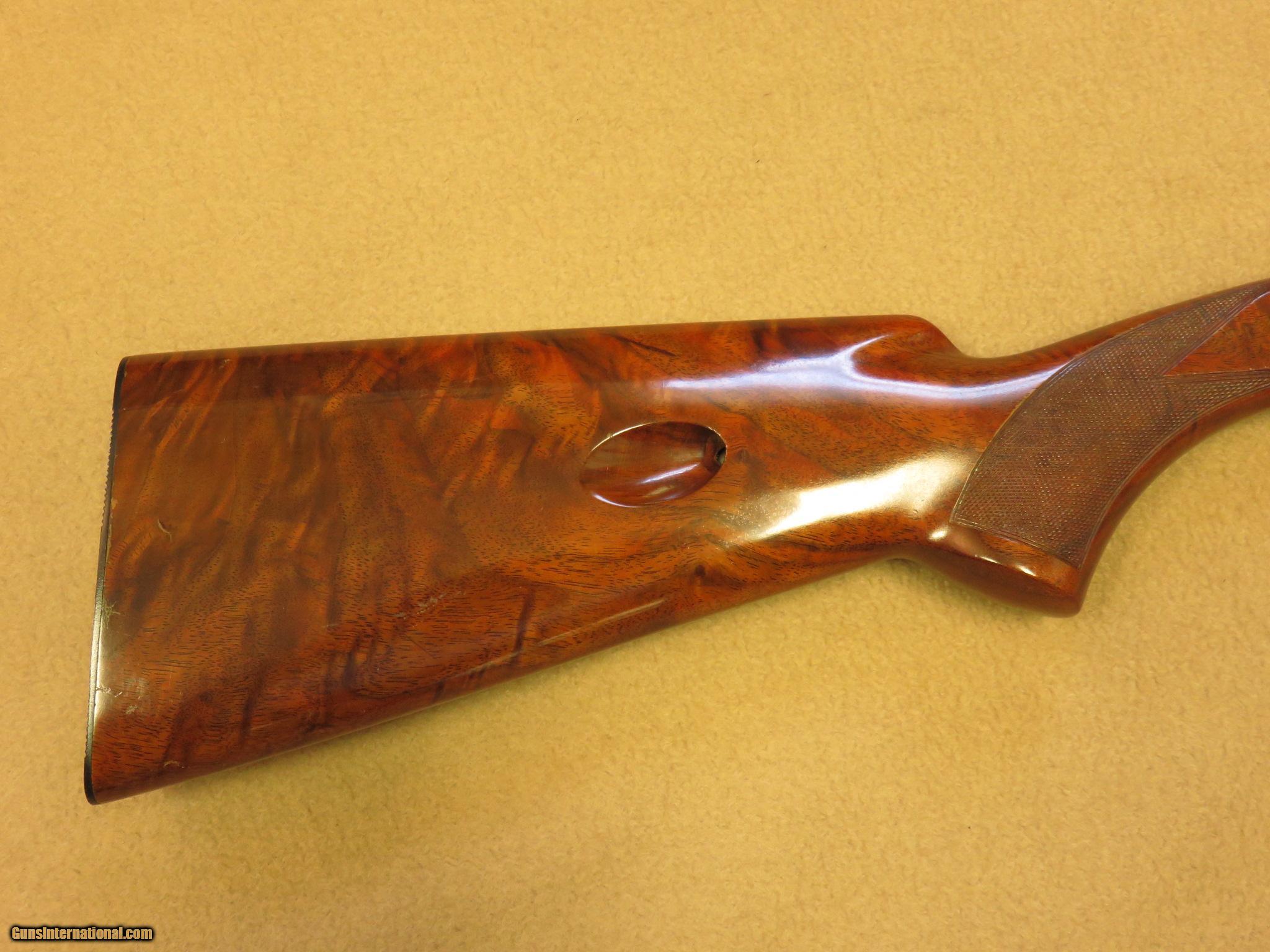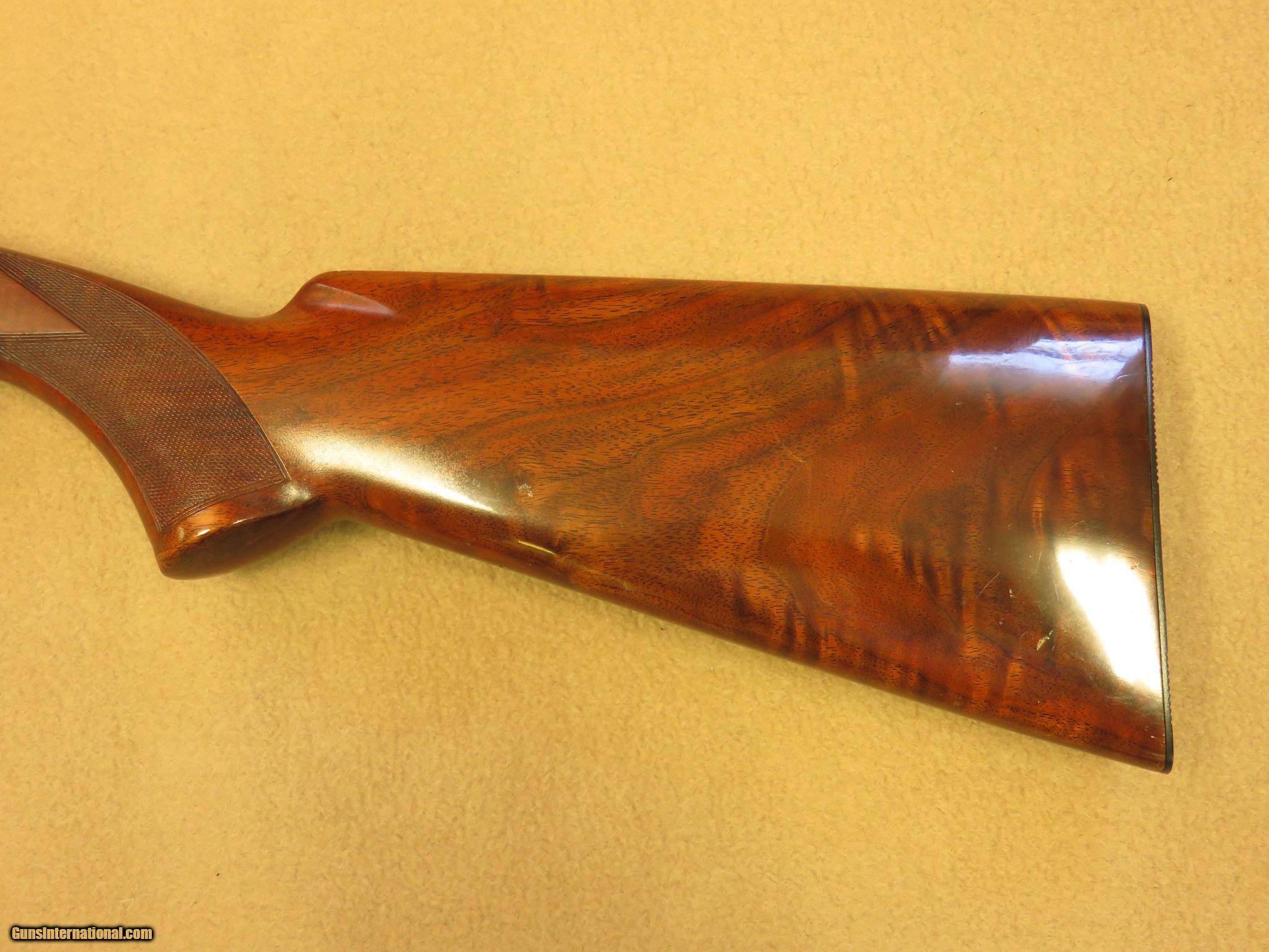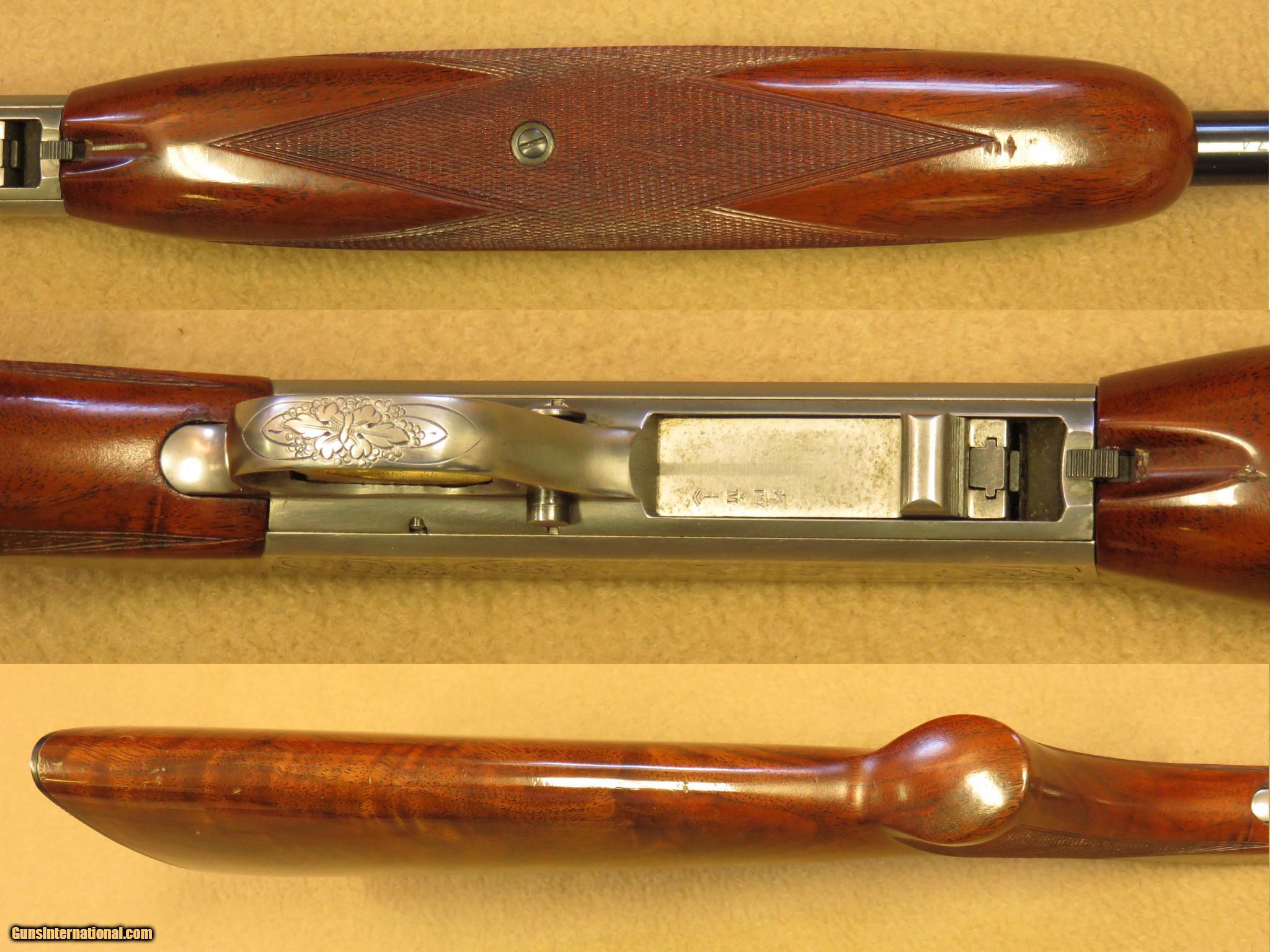 Description: This Grade II Browning .22 Auto was manufactured in 1967 in Belgium. It was hand engraved and is signed by G.C.. The original blue is 95% and the bore is perfect. The walnut stock has exceptionally nice grain and has some minor scratches and one small gauge next to the reciever on the forearm. It is a very pretty little rifle that should appreciate in value, but it is not so nice that you would not want to enjoy shooting it. Sorry, no box or paper-work. PRICE: $1,450 We are Antique & Modern Firearms in Lexington, KY, dealer of fine firearms since 1974. PH. 859-276-1419 We Buy, Sell and Trade Firearms & Knives. Have a Individual Firearm, Firearms Collection, or Firearms Estate to sell, let us know, we can buy or consignment sell it for you. (sales at am-firearms) SOLD |