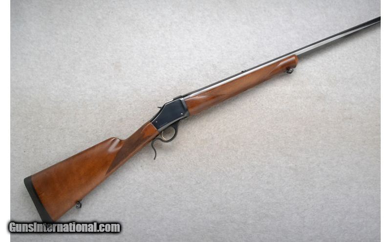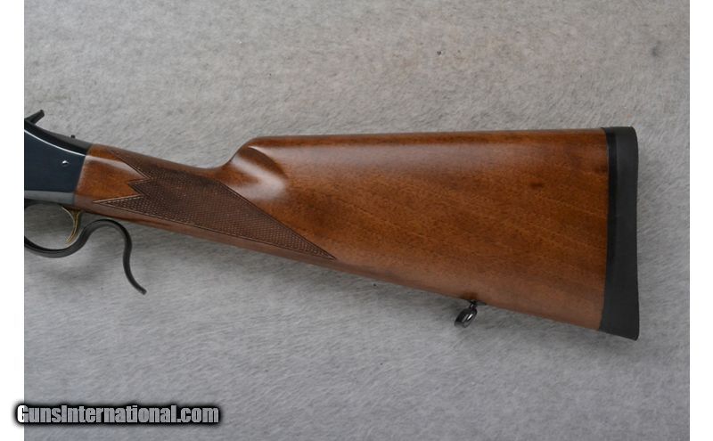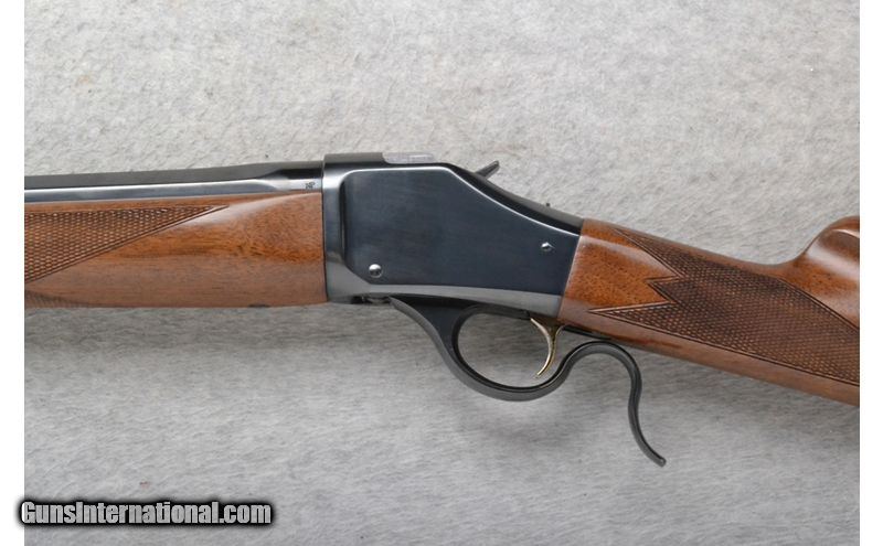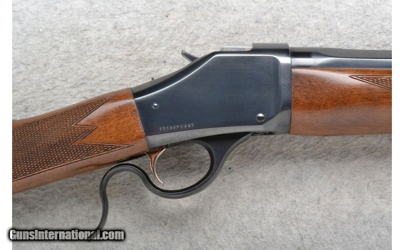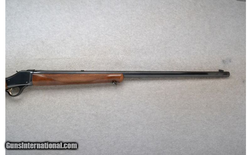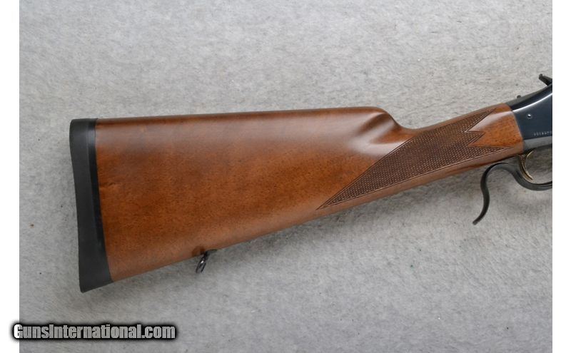 Description: This Browning Model 1885 is a single shot falling block lever action rifle in .45-70 Gov't. Cal. It has a 28 inch octagon barrel. A blade front sight and is drilled and tapped for a scope mount. The butt stock is a checkered grip walnut straight grip. The forearm is a checkered grip walnut Schnabel style. .45-70 Government SOLD Chambers: Single Shot. Metal Condition: Excellent. Wood Condition: Excellent. Bore Condition: Excellent. Barrels: 28 inch octagon. Triggers: Grooved. Stock Dimensions: LOP 13 1/4 inch. Fore End: Checkered grip walnut Schnabel style. Butt Pad: Browning black rubber pad. Weight: 8 Lb. 0 Oz. Sights: Blade front. Drilled and tapped for a scope mount. Item Location: Richfield, WI |