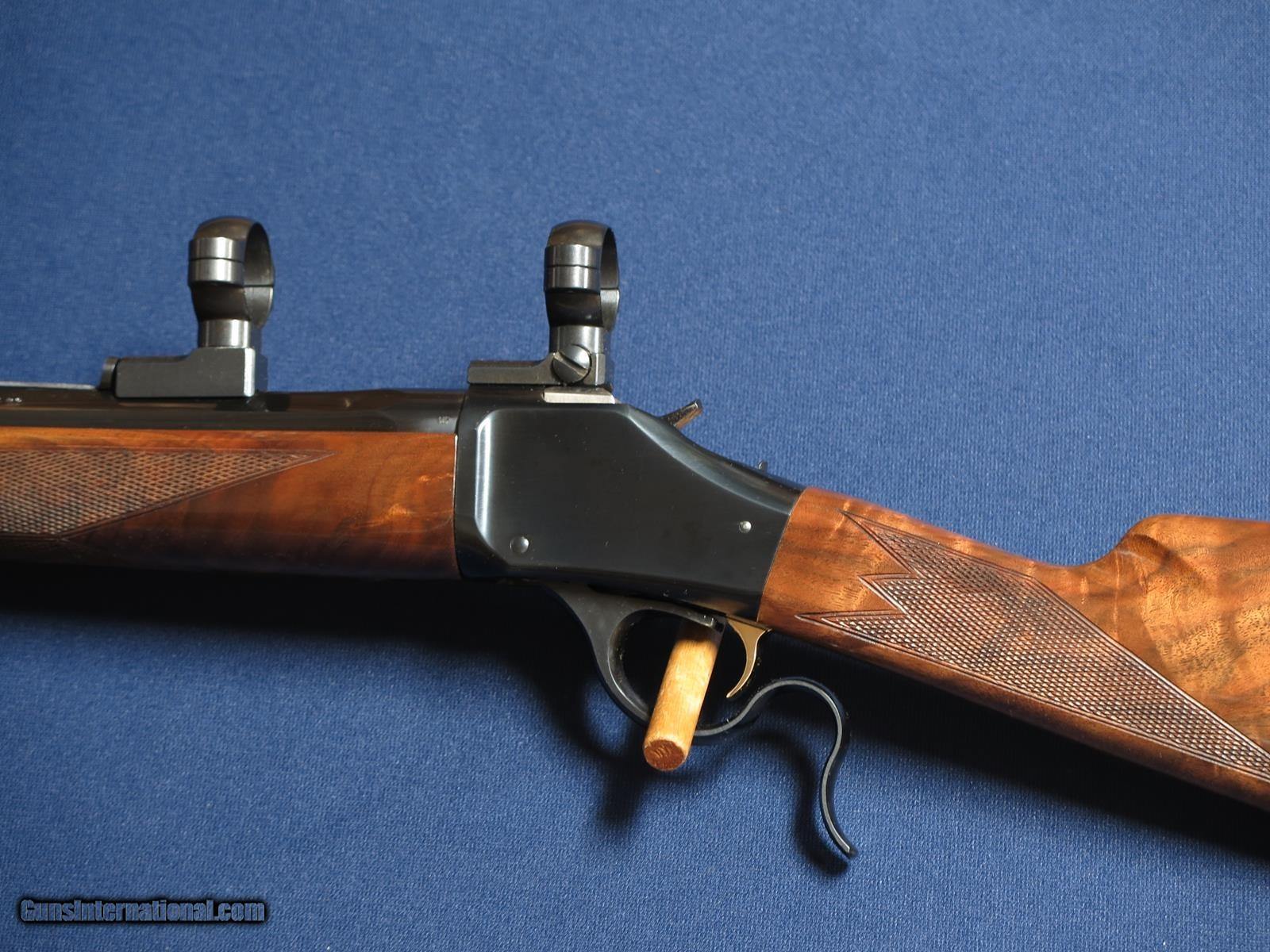 Description: Browning 1885 45-70 rifle. 28 inch octagon barrel. Browning recoil pad. With bases and rings. Wood shows slight use. Excellent bore. SOLD |