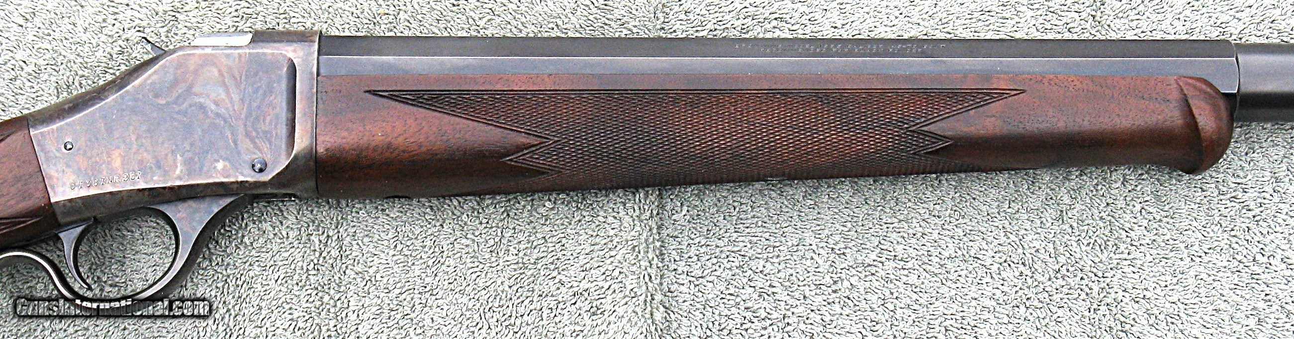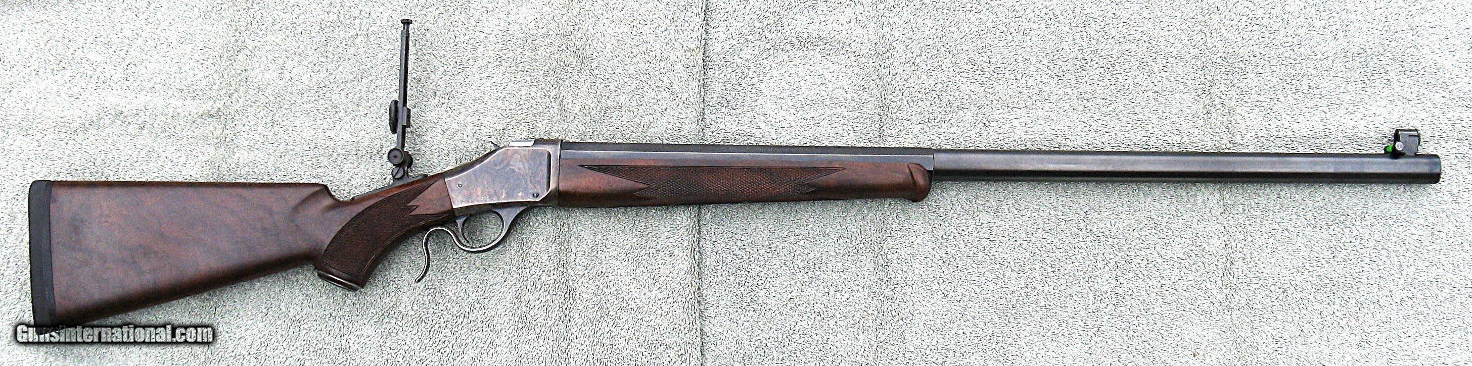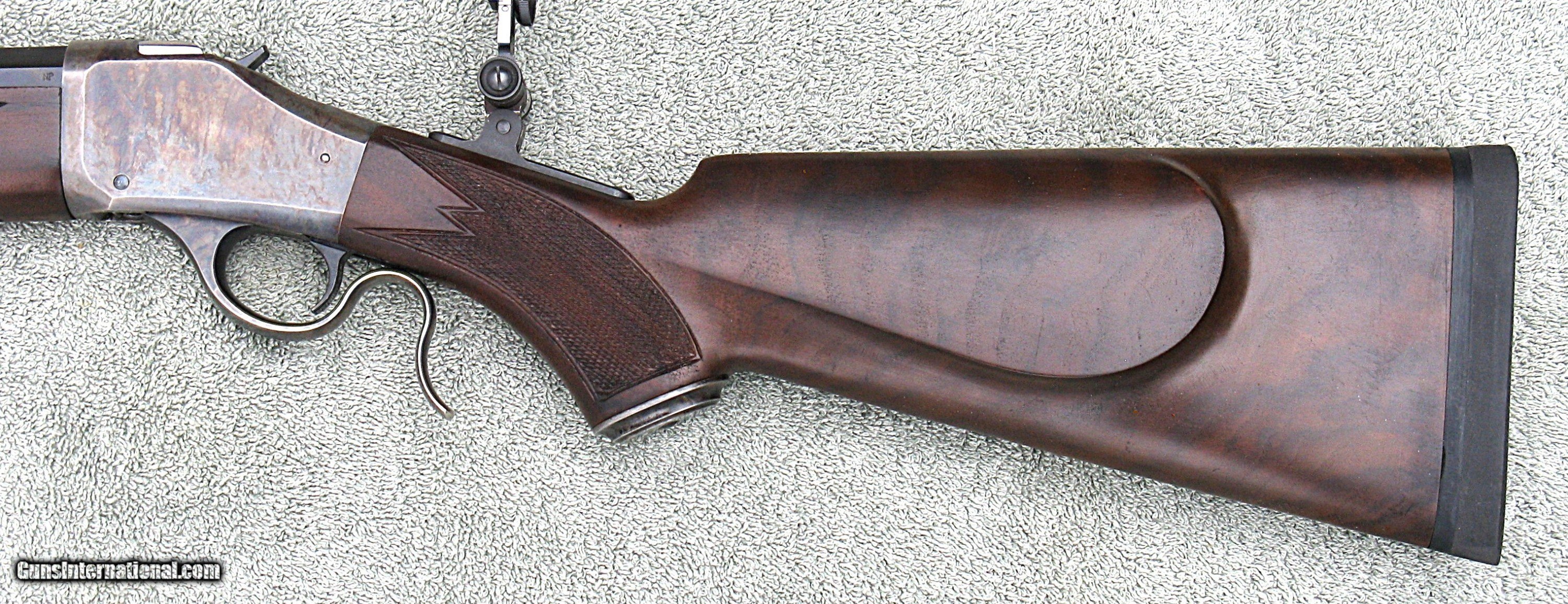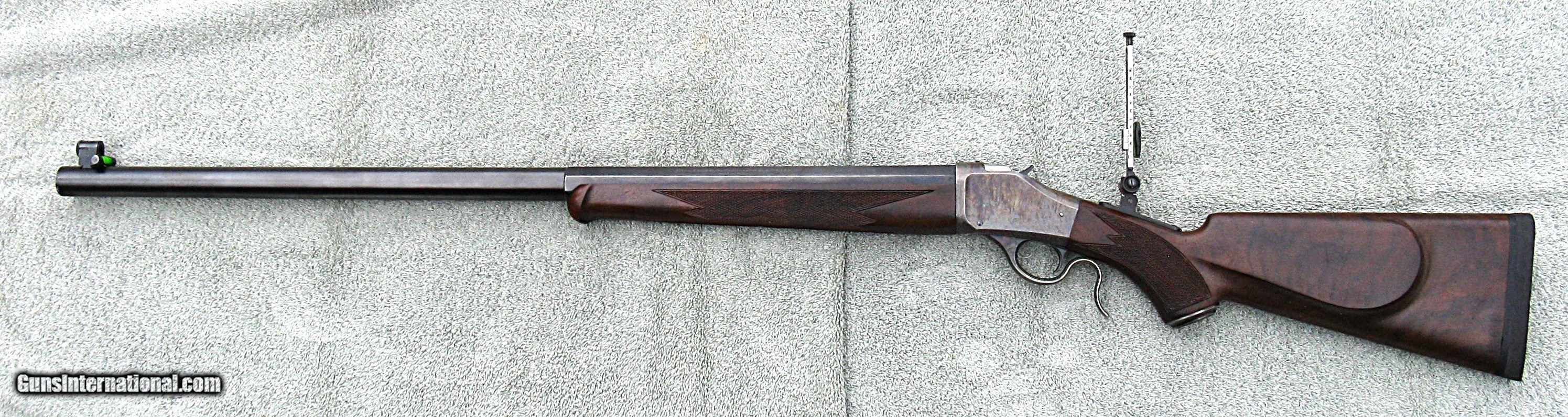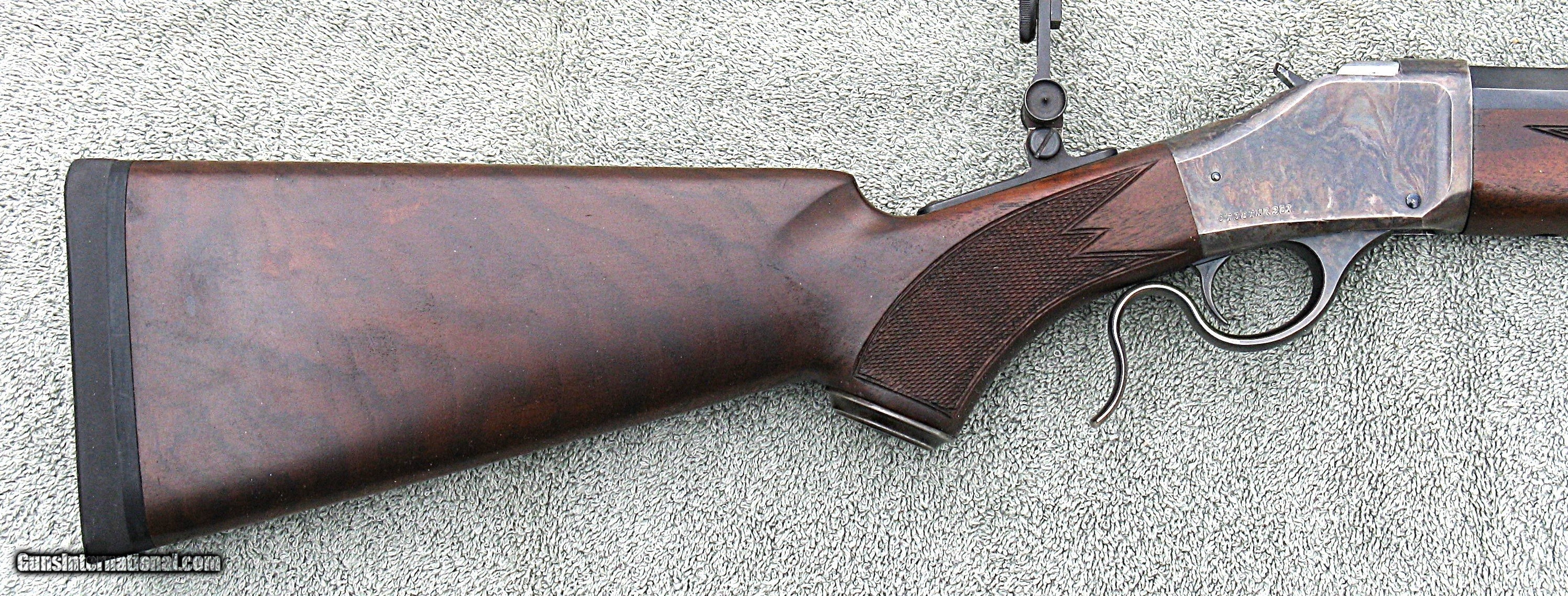 Description: PRICE $2,195 + $80 Shipping. The rifle is in really nice condition & appears to be fired very little. It features a heavy 30" (1/2 octagon 1/2 round) Badger barrel, Browning rear soule sight & spirit level front sight. The Badger barrel has 8-groove right hand twist rifling with a 1:18 twist rate. The rear soule sight comes with one eyecup. I recommend getting a Hadley-style selectable aperture eyecup. A rubber butt-pad has been professionally installed. The length of pull is 14.5”. Front sight inserts that fit a Lyman 17A will fit the Browning & are available from Lee Shaver & other suppliers. If you like a dark stock, this is the rifle for you. The rifle will be shipped with a copy of the rifle owner’s manual. The rifle was completely disassembled & checked out. The action was not dirty & shows no signs of wear. The chamber & bore are perfect. There are no dings or scratches on the metal & only a couple of tiny dings on the stock, too small to show up in the photos. The bluing on the barrel is perfect although it appears in the photos to have been worn off, especially on the edges of the octagon flats, which is due to light reflection. Miroku only manufactured the BPC rifles for Browning from 1996 thru 1998. This rifle was manufactured in 1997. On a very accurate postage scale, the rifle weighs 11lbs 5.4 oz with the sights & an eyecup installed. I measure the trigger pull at 4lbs which is the typical pull-weight from the factory. For an additional $60, a Lee Shaver sear can be installed; reducing the trigger pull to slightly less than 2lbs. NOTE - I SELL TO CALIFORNIA BUYERS FOR NO ADDITIONAL CHARGE. ALSO NOTE - A layaway option is available for an additional $50.00. Layaway requires 1/3 down immediately, 1/3 in 30 days & the balance in 60 days. ABSOLUTELY NO REFUND ON CANCELED OR UNCOMPLETED LAYAWAYS. The rifle will be shipped after the final payment is received. A signed copy of your dealer’s FFL will be required with their phone number. The rifle will be shipped to the address on the FFL. Shipping & handling is $80.00 (CONUS only), which also covers full insurance. Shipping to Alaska and Hawaii will require an additional charge. I only ship FedEx ground fully insured. For immediate shipping US Postal Service money orders are required. Certified cashier’s checks will delay shipping 5 business days. A phone number is required to contact the issuer of a cashier's check for verification. No other forms of payment are accepted. Specializing in Browning and Winchester BPCR's, the rifles are displayed and described as accurately as possible and I have not had a dissatisfied customer. As a seller of scores of Browning and Winchester BPCRs, and having written and published a book on the rifles, you can trust that each rifle, new or used has been fully checked out and is in the conditioned advertised. THE PHOTOS ARE OF THE ACTUAL RIFLE BEING SOLD. SOLD Rifle Caliber: .45-70 Government |