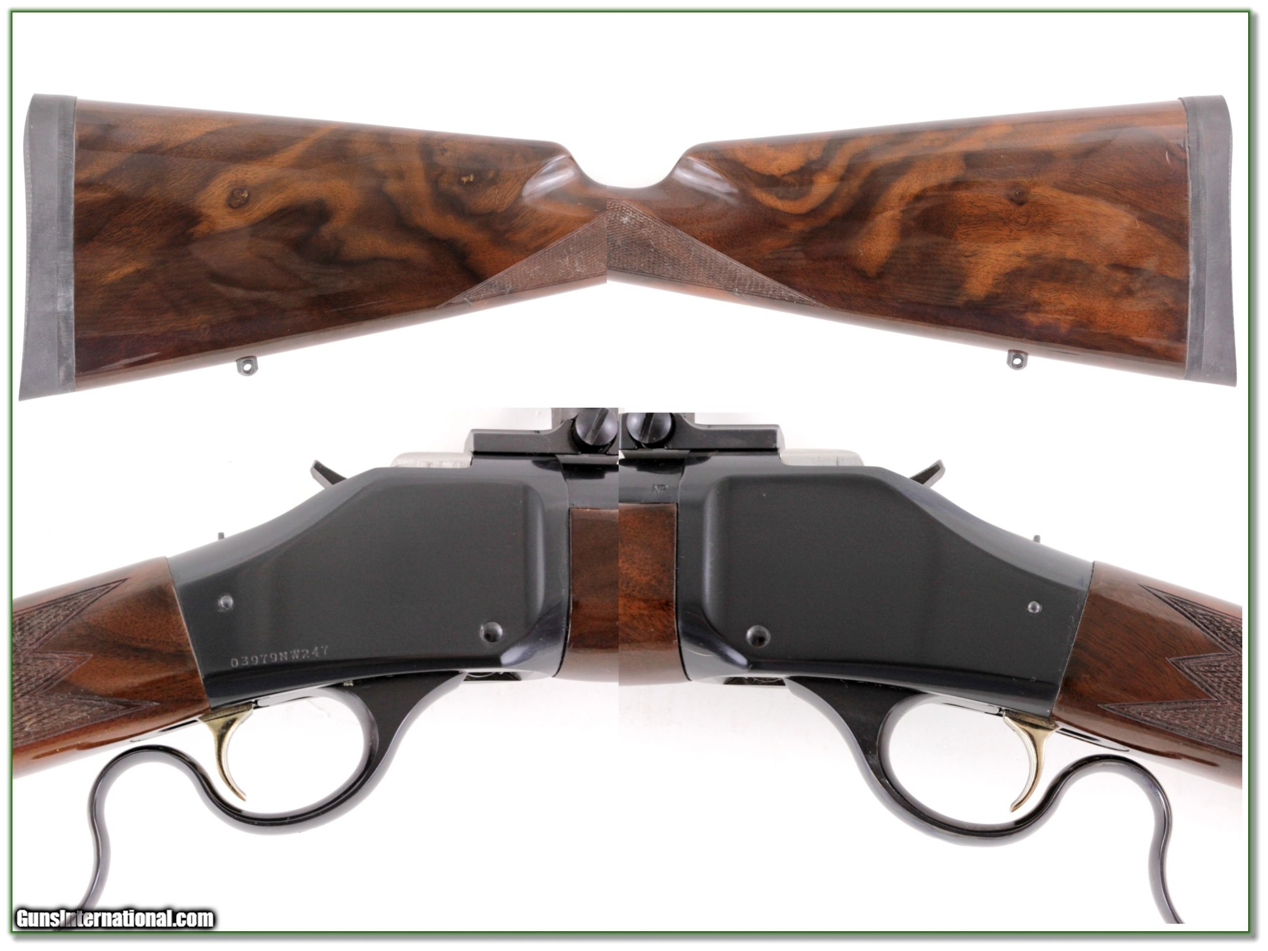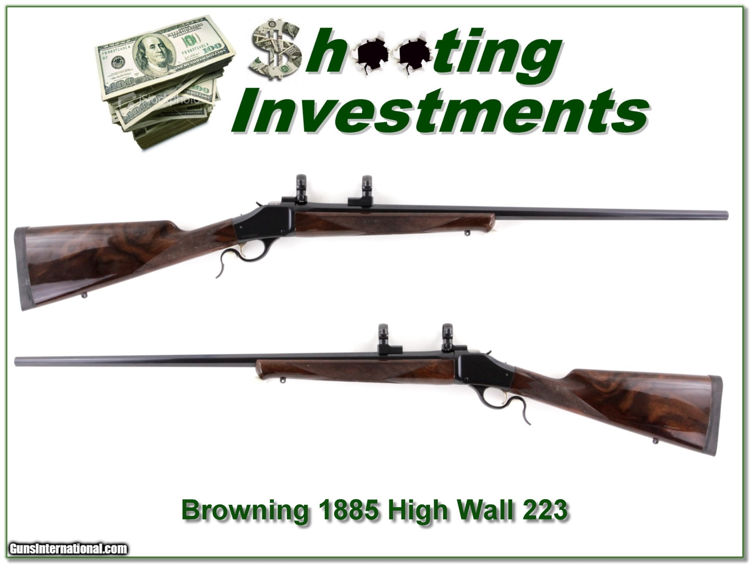 Description: Collectors and shooters, this is a Browning 1885 High Wall in 223 Remington. These are VERY hard to find as most 223’s are Low Walls. This one has the NICEST wood of any I’ve ever seen and it is in near new collector condition. It comes with bases and rings as seen! Shipping with insurance is $39. Please email me with any questions or larger pictures. (Consign your quality firearms with Shooting Investments for only 12%! Let me know if you have any you would like to sell!) 19-0001 Payment: Payment is by Money Order, Cashiers Check or Personal Check. I can now also accept Credit Cards (MasterCard, Visa, Discover & American Express) with a 3% convenience fee. PayPal can be used for some items but never for firearms. Shipping: The shipping charge will be listed in each description. It is $39 for most firearms. Some heavy guns or those insured for over $2000 will be higher. Shipments to Alaska and Hawaii are higher because air shipment is required. Most firearms are shipped on Tuesday and Thursday and usually in 5 days of receipt of payment. We package all shipments carefully and insure them. Optics are shipped Priority Mail and most other non-firearm shipments are shipped First Class. Returns: Our return policy is simple. If for any reason you are not pleased with your purchase, you may return your item for a full refund of purchase price. Ammunition cannot be returned. It is important to us that you are happy. Guns cannot be fired or dissembled before returning them and they must be returned in the same condition as received. Notification of a return must occur with-in 3 days of receipt at your dealer. Shipping, convenience and dealer fees are not refundable and are the responsibility of the buyer. Lay-a-way: If needed, we offer a 60 day lay-a-way option on most firearms. It is 1/3 now, 1/3 in 30 days and 1/3 in 60 days. Lay-a-way firearm sales are final and if not completed the first payment cannot be returned. Consigning your firearms with Shooting Investments: We will help you get top dollar for your firearms. While most local guns shops charge 20% or more, our fee is only 12% with a minimum of $75. At your local gun shop it might take months to sell. Selling on-line provides instant access to thousands of interested buyers. You won’t find any other on-line dealer willing to sell your firearms for only 12% or listing every gun on 3 separate s. Selling through an House typically costs the seller 15% and the buyer an addition 15% (so 30%) and you have to wait several months to sell and longer to receive funds. If properly priced, we will sell your firearms in a few weeks. Send us an email or give us a call and we’ll explain how easy it is for you to get top dollar. Trading: Trading for use is really just buying your gun to re-sell. If you have a gun you want to trade, please email a picture and we will let you know what we can give or it. You will always get more if we sell it for you on consignment. Help for California Buyers: We are happy to ship to California. It is the buyer’s responsibility to make sure any item you buy is legal in your state. We are also happy to help with your purchase of a firearm from someone other than us. If you see a gun you would like to buy but the seller can’t or won’t ship to California they can ship to use and we’ll then ship it to your California dealer. The cost for this service is only $30 + shipping. Let us know if we can help! SOLD |
