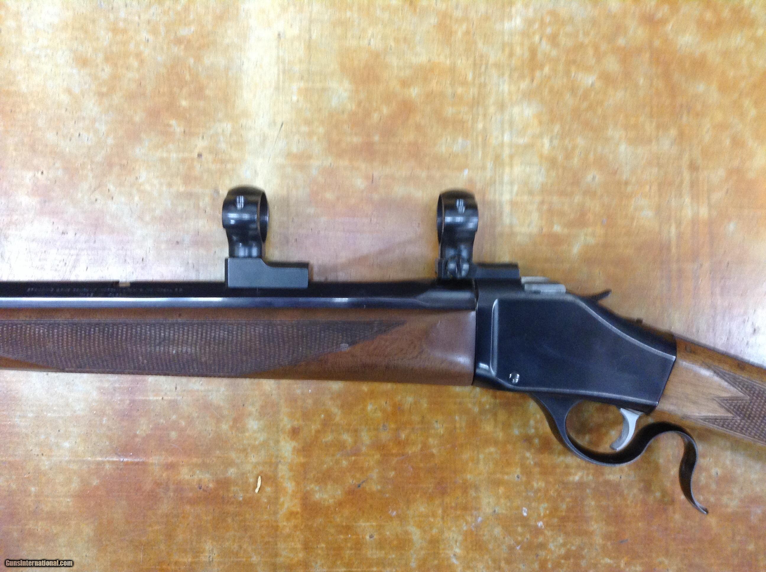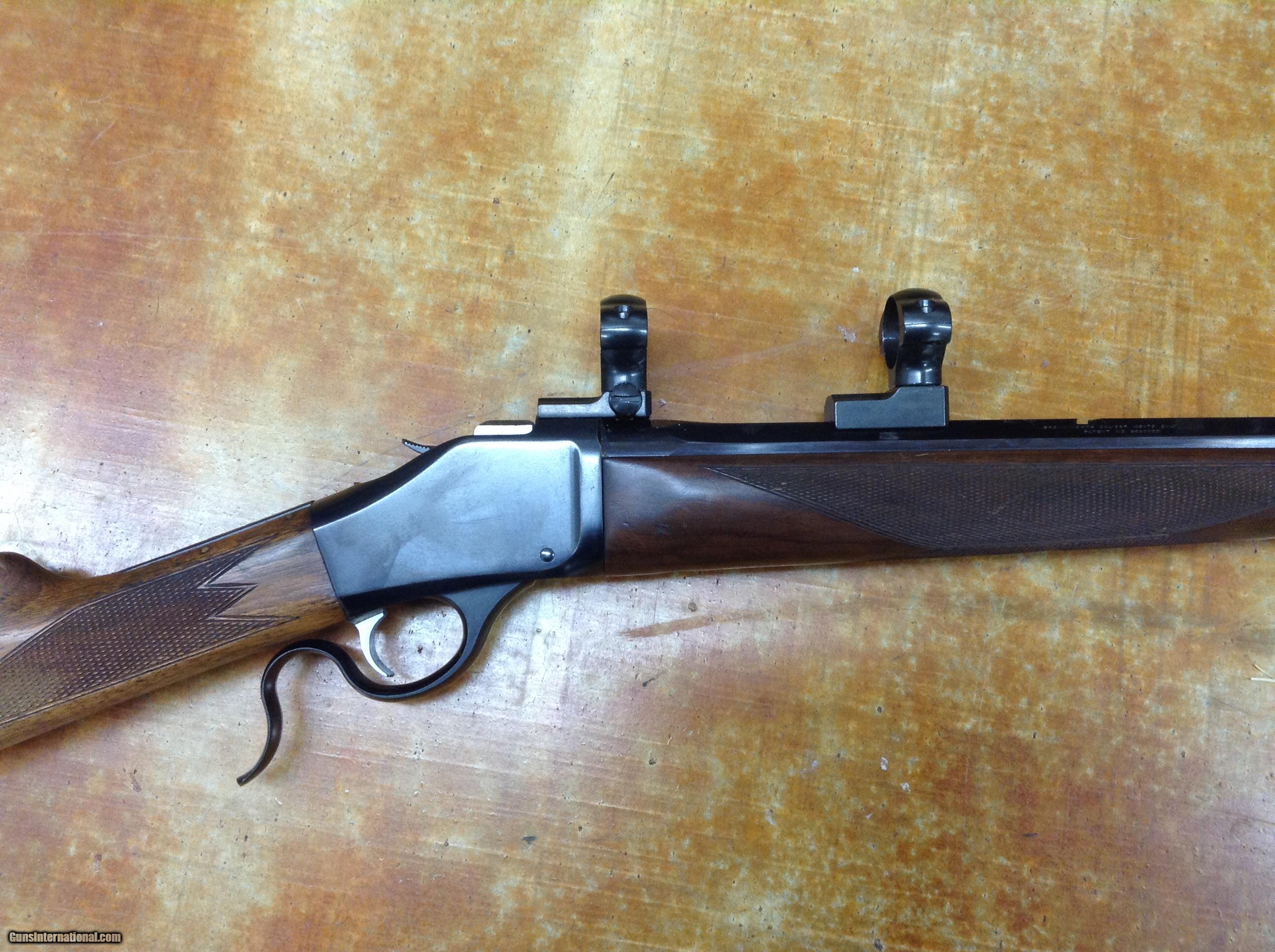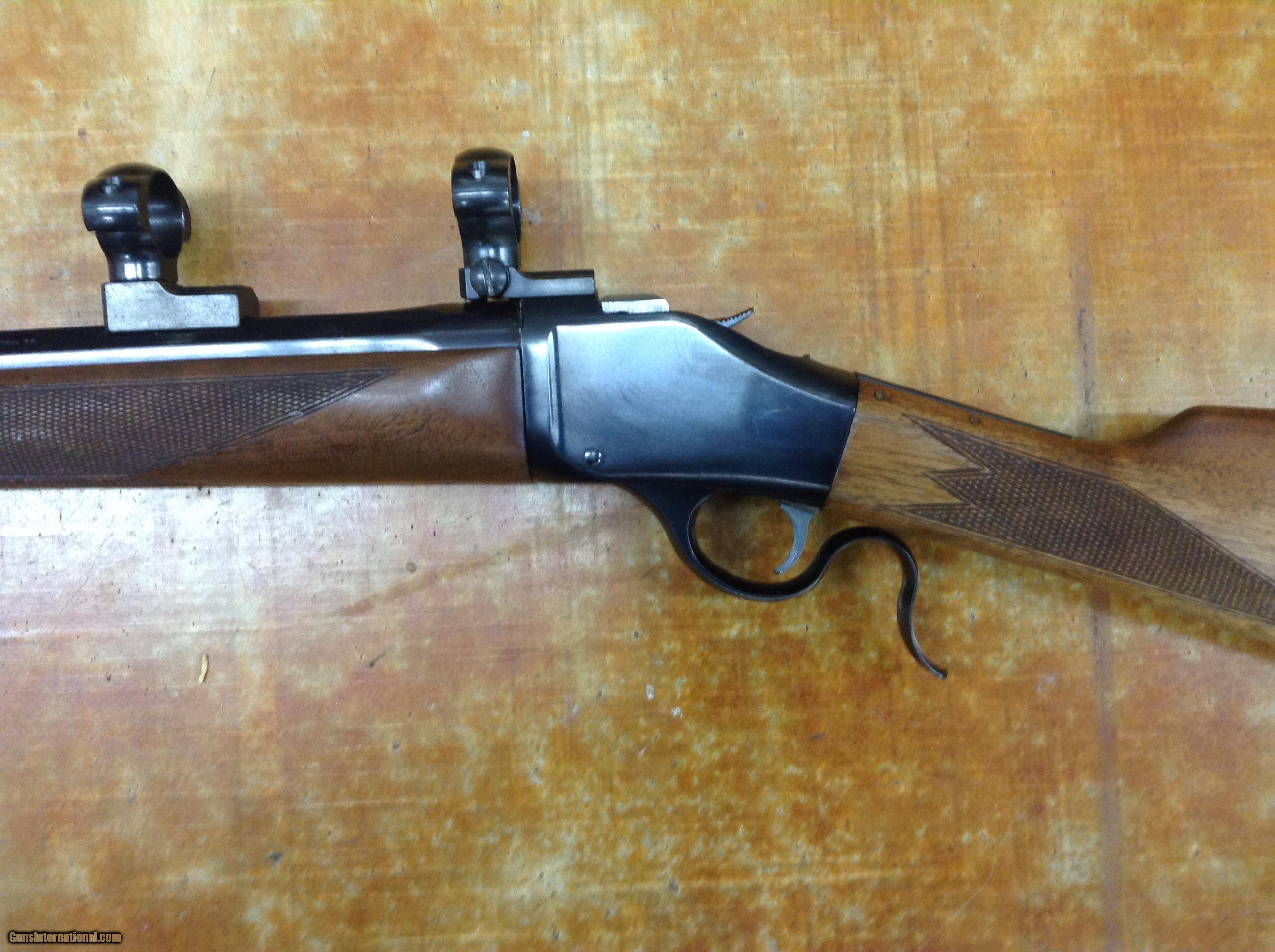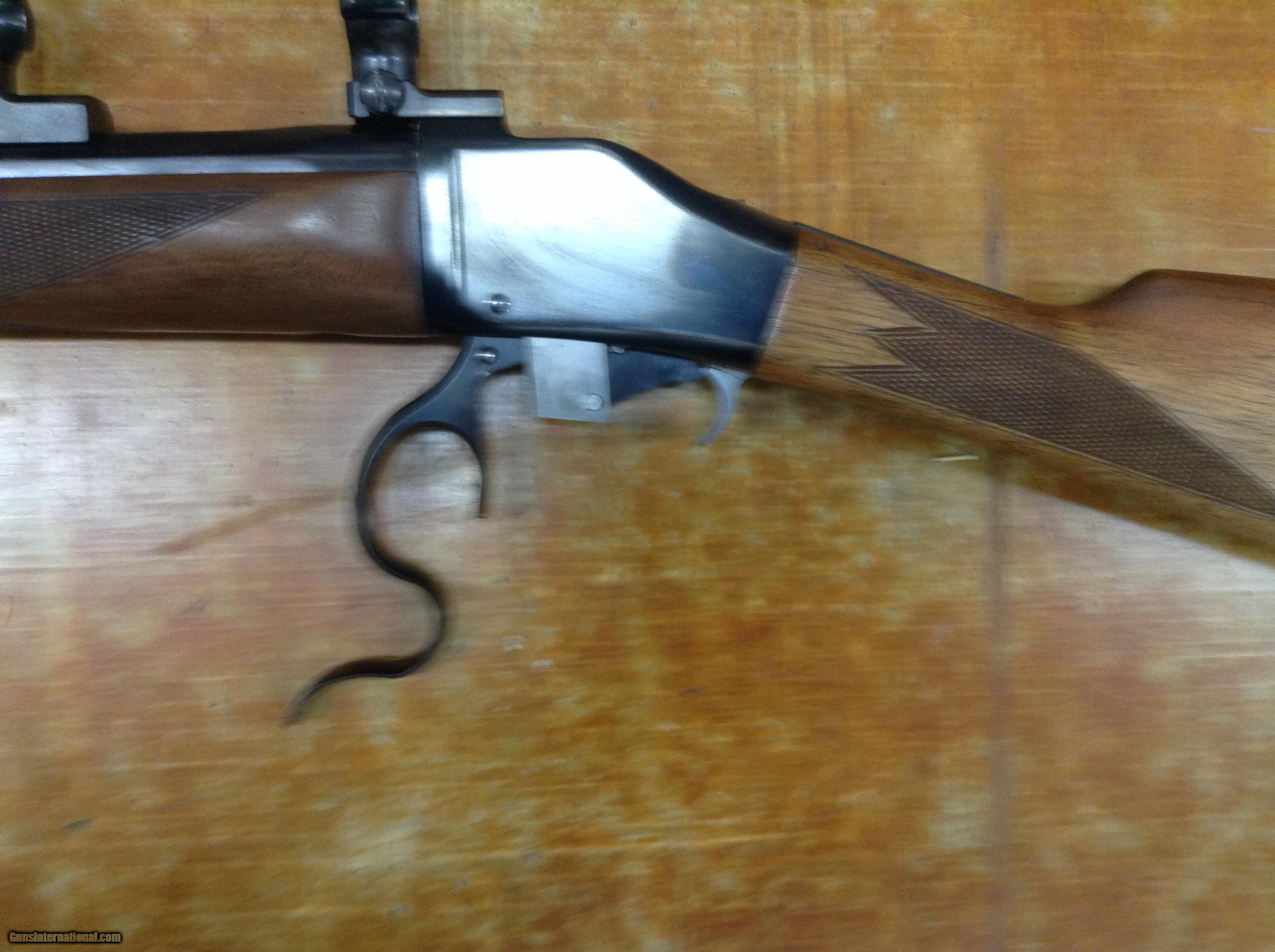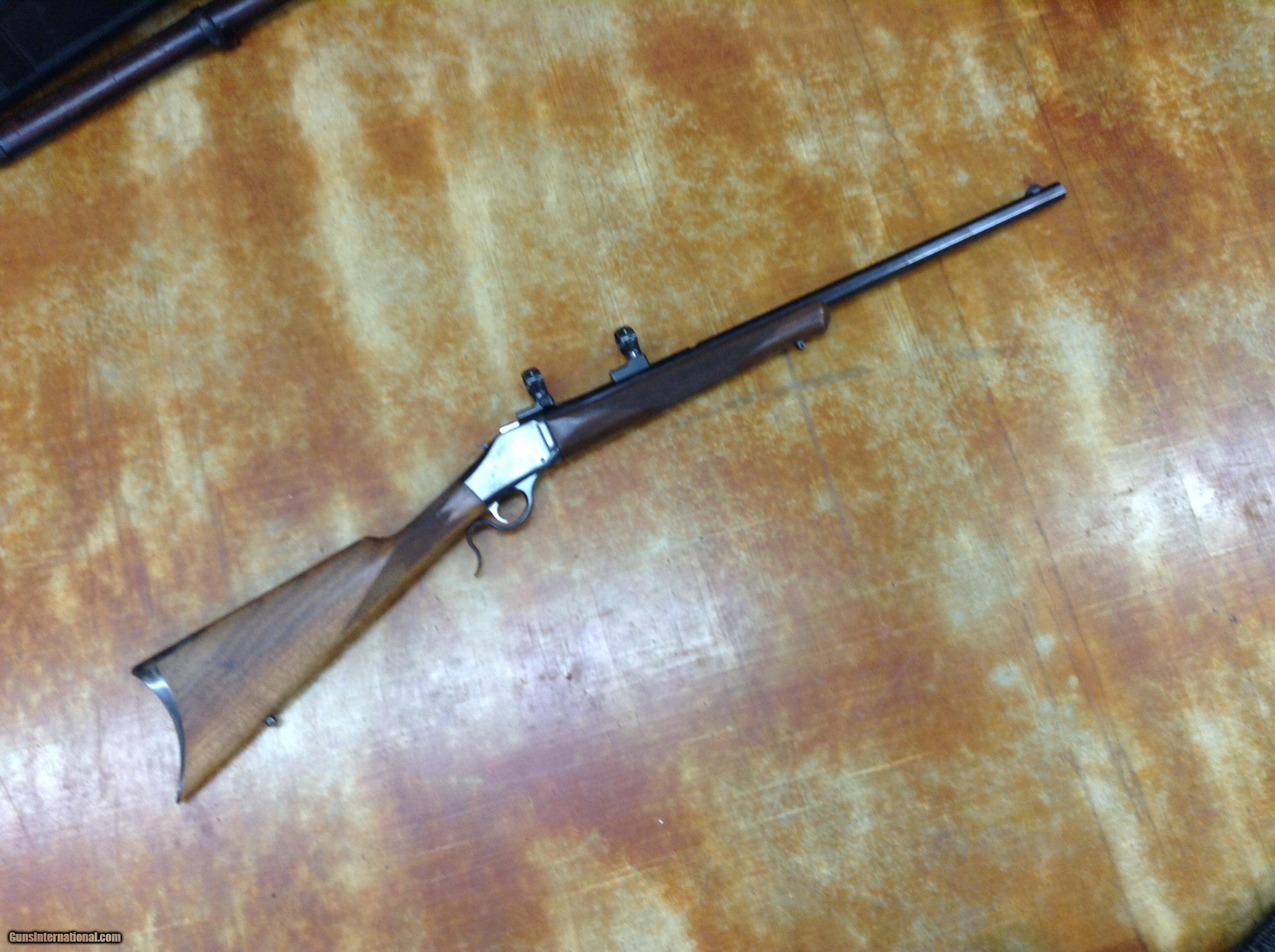 Description: Browning model 78 , rechambered.to 45/120 , Leupold bases and rings , very clean bore . Crescent butt plate, overall cond. very good , missing rear sight . 24" oct barrel, 2 # trigger. $1000.00 + $45.00 his dies , brass w/ gun SOLD |