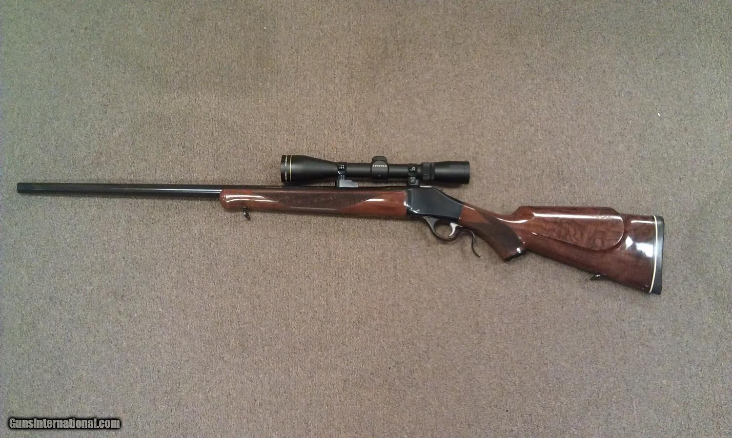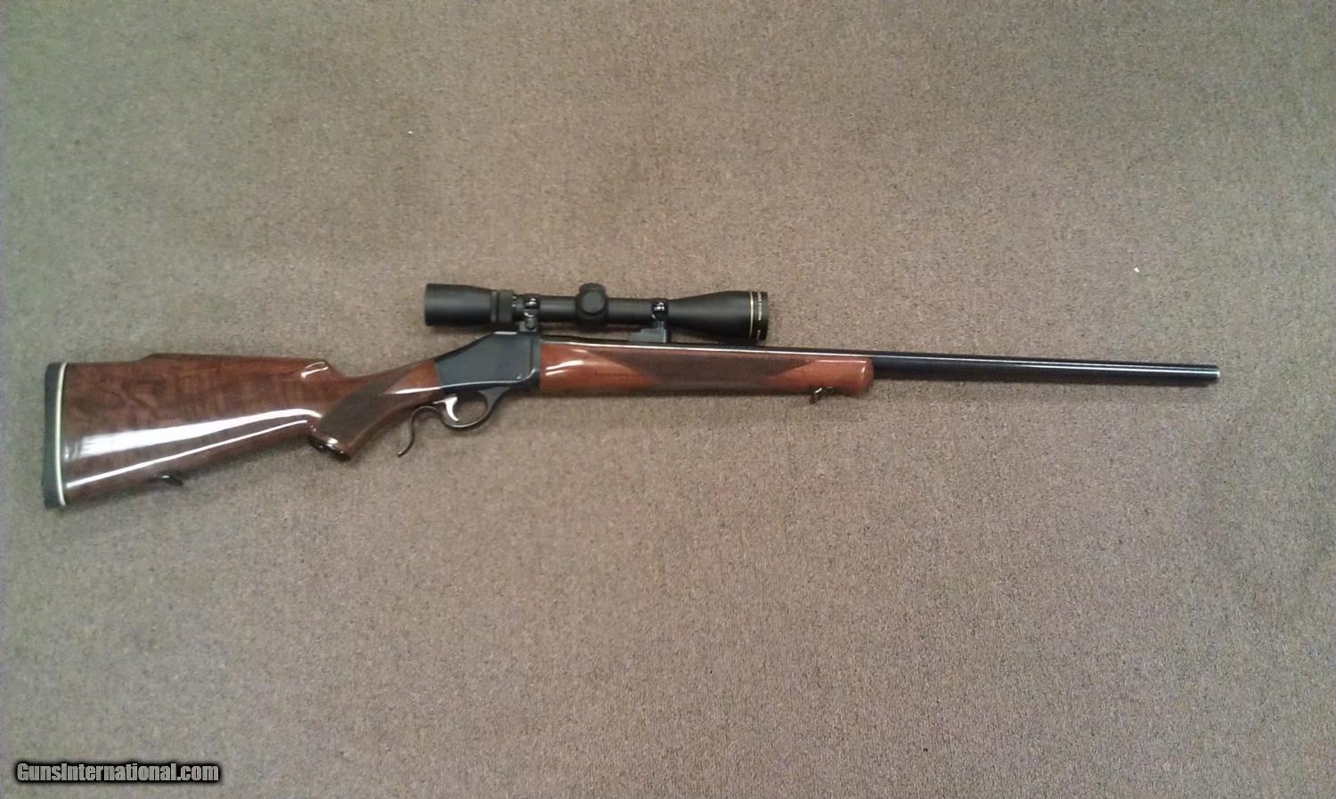 Description: Browning B-78 22-250 26" Octagon barrel, lever activated falling block, no sights, checkered walnut stock. Very nice wood, Browning bases and rings, Leupold Rifleman 4-12x40mm scope. Little wear at the muzzle, rest of the blueing is 98% / wood has a few small handling marks. add 3% for C/C SOLD Manufacturer: Browning Model: B-78 Serial Number: 01642RT147 Caliber Info: 22-250 Condition: VERY GOOD |