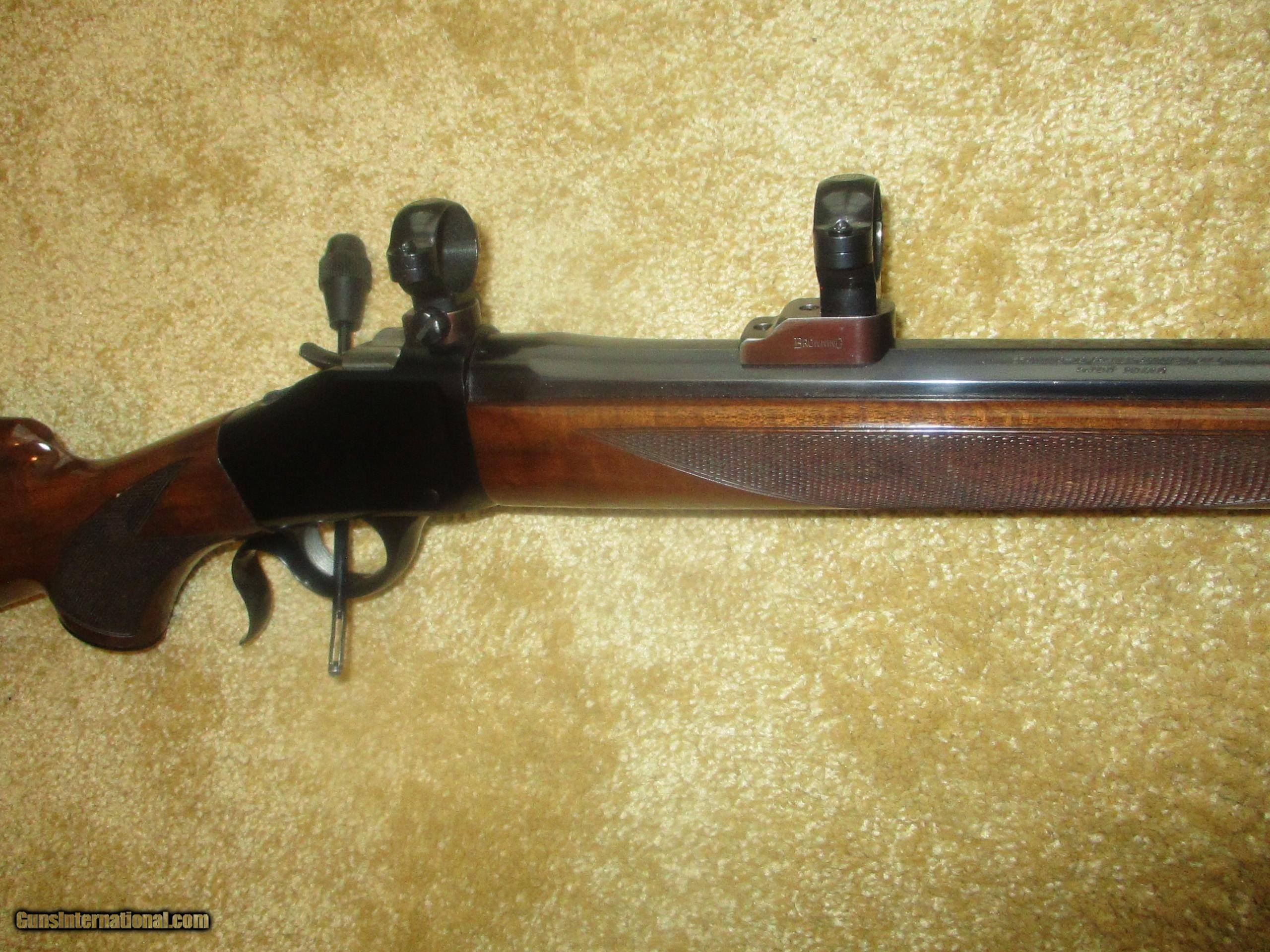 Description: 26" octogon bbl., lever activated falling block action, no sights, factory 1" bases & rings, checkered select walnut Monte Carlo hi-gloss stock & schnoble forearm, factory Browning sling swivels, factory hard rubber buttplate, 99% blue, minor handling, shot little, fewer than 1,000 ever mfg.in 6mm Rem.!! SOLD |