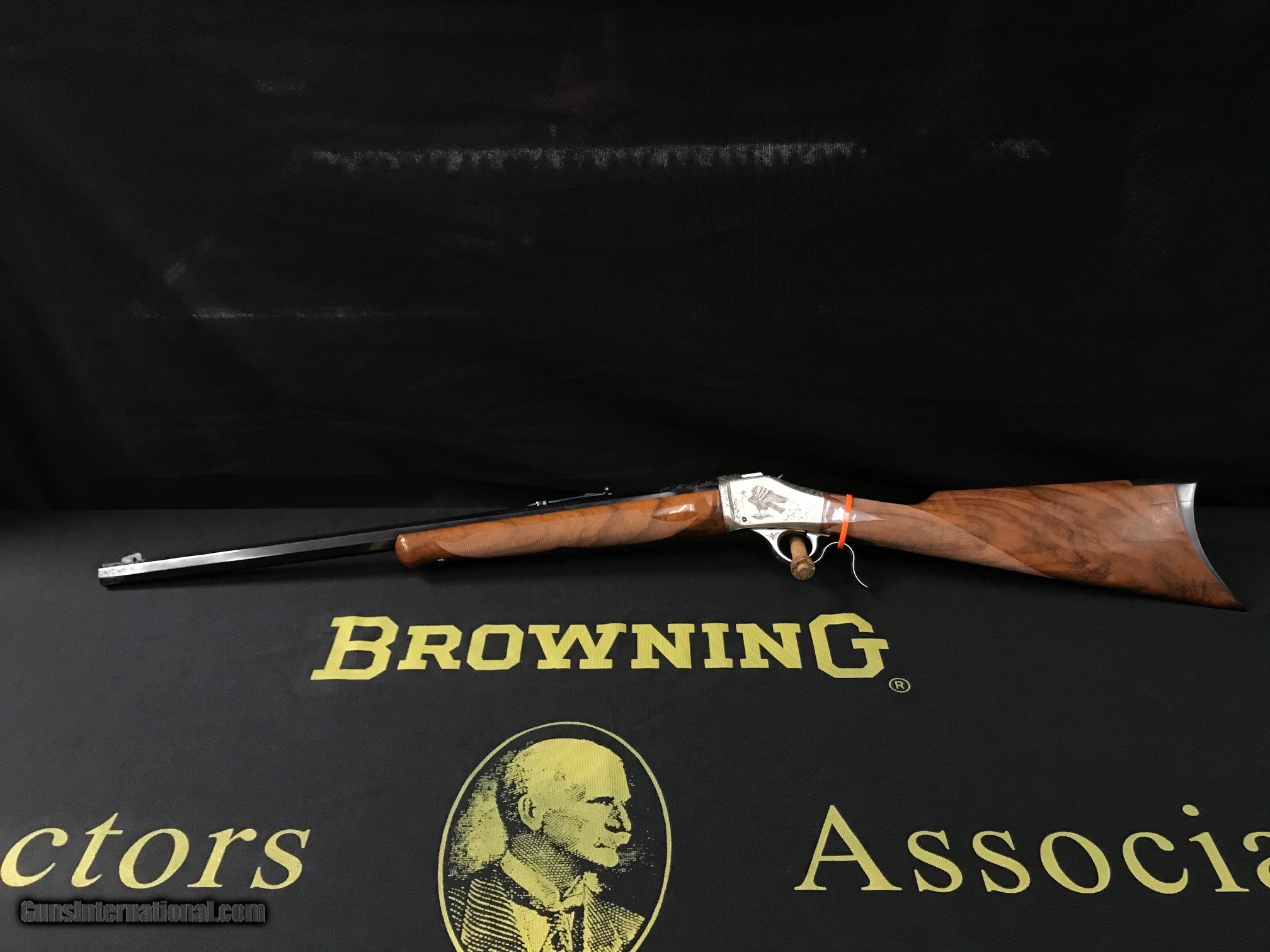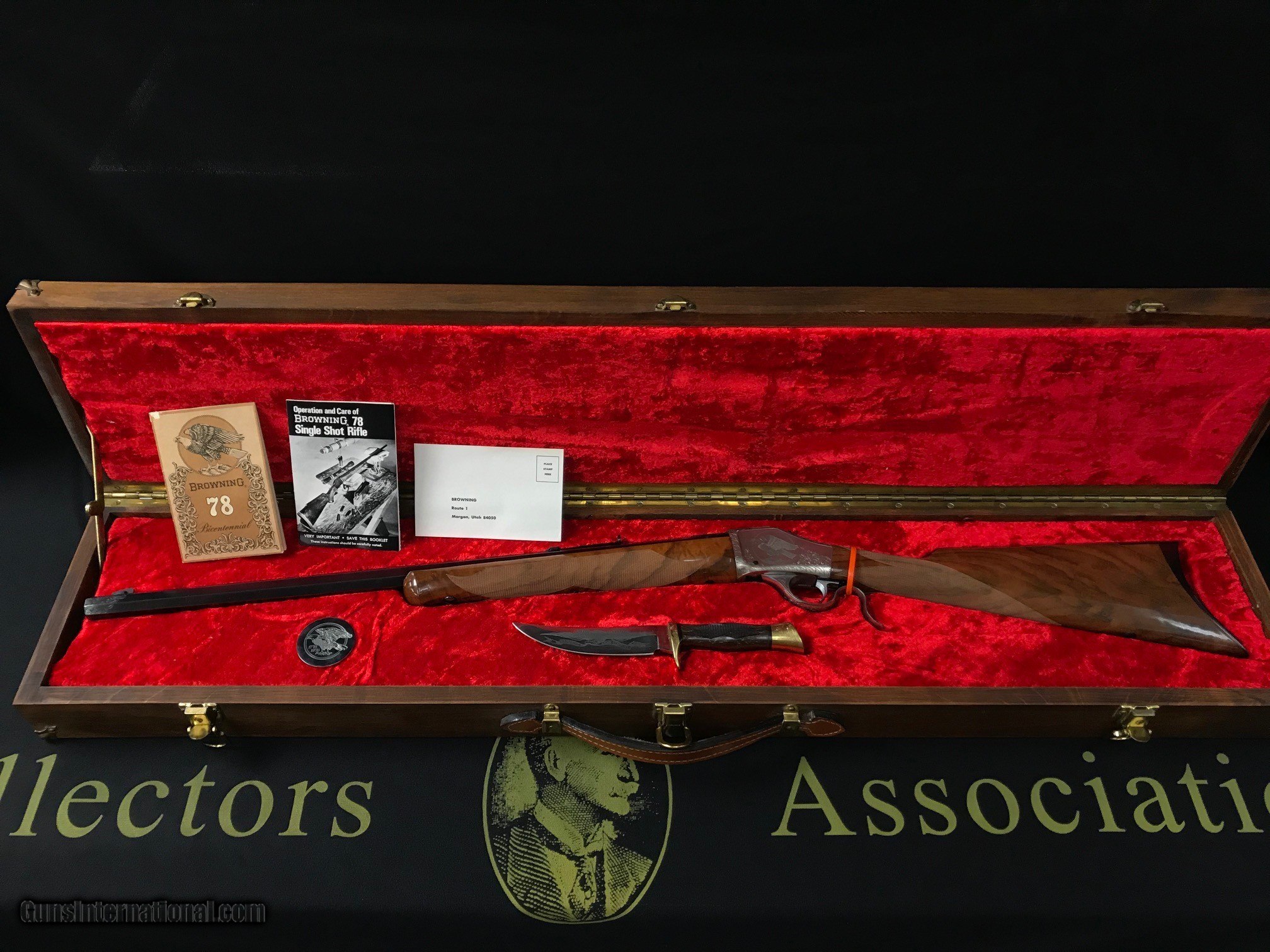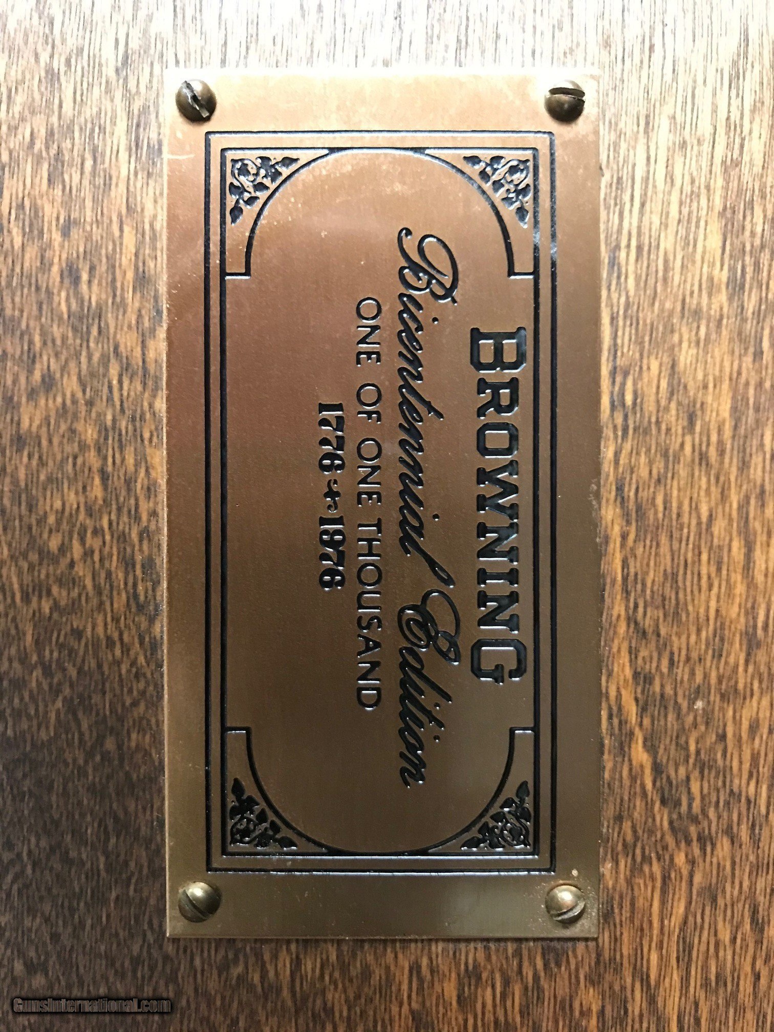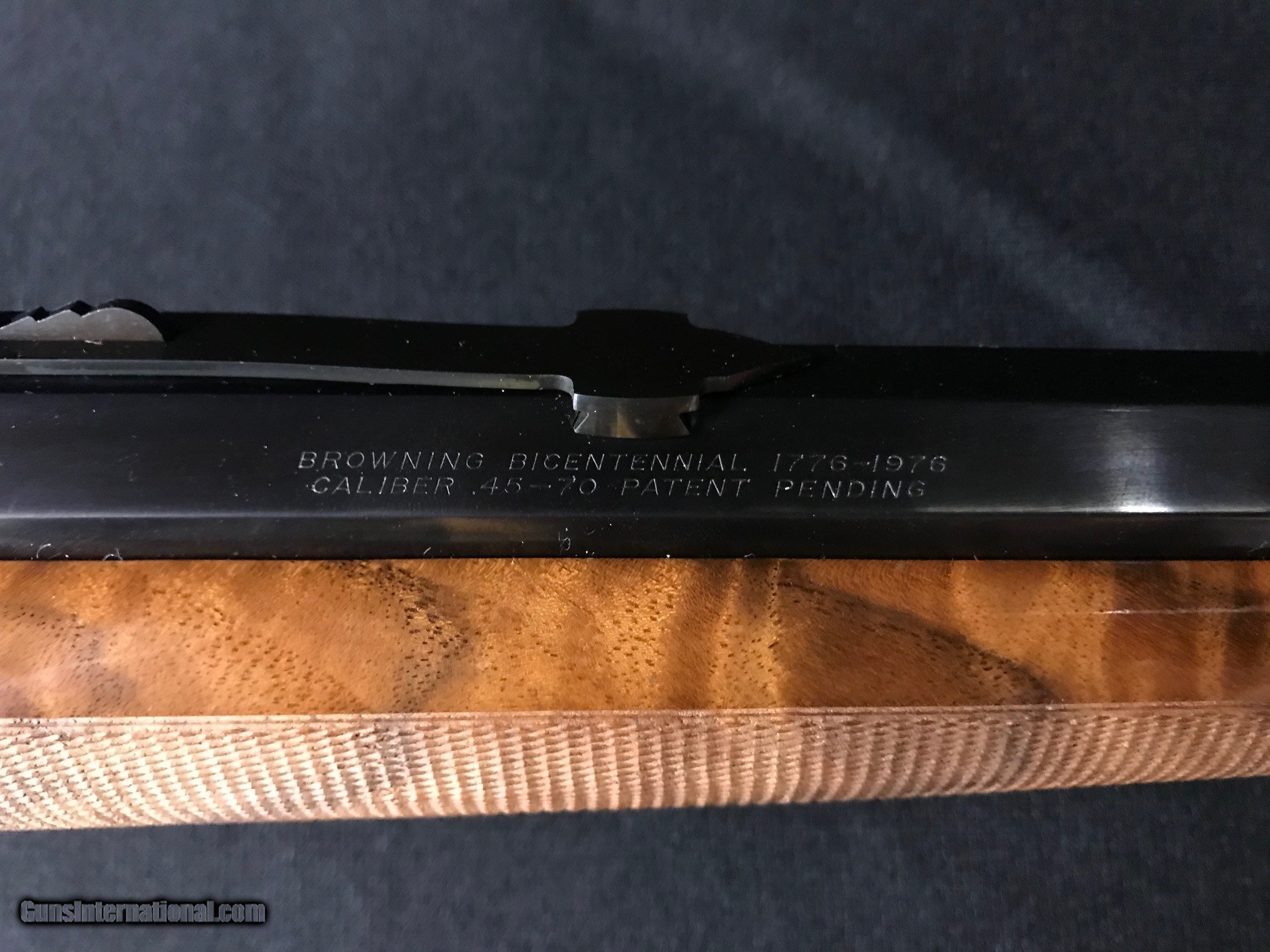 Description: Browning Bicentennial. This beatiful rifle has never been fired. Does include had wooden case. Inside case in browning engraved knife with medallion coin and manuals. For more information about this rifle or purchasing PLEASE CALL 1 (479) 968-4106. PRICE - $3,300 + Shipping *CONTACT BY PHONE - (M-F) (9:00 A.M. - 6:00 P.M.) (SAT) (9:00 A.M. - 4:00 P.M.) CST. SOLD Manufacturer: BROWNING Model: Bicentennial B-78 Serial Number: 1776 # 0775 Caliber Info: .45-70 Condition: NIB Action: Single Shot Case: Wood Case |