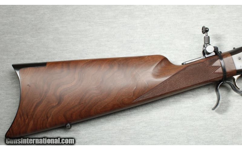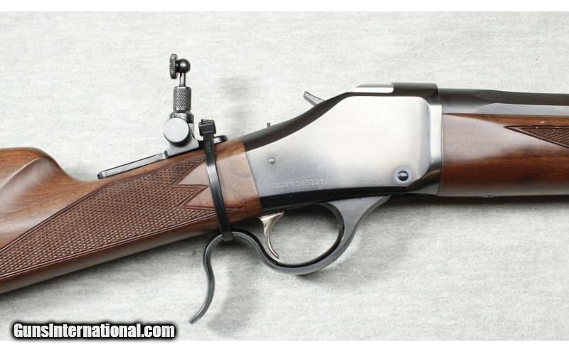 Description: Excellent condition, few light wear and handling marks. Classic Browning Model 1885 rifle, 28" matte finish octagon heavy barrel, blued receiver, smooth action & crisp trigger, factory iron sights and adjustable peep sight installed, premium checkered wood forend and buttstock with curved metal buttplate. .45-70 Government SOLD Metal Condition: Excellent Wood Condition: Excellent Bore Condition: Bright Barrels: 28 Triggers: Factory Stock Dimensions: 13 Fore End: Checkered Butt Pad: Curved metal butt plate Sights: Adjustable peep sight Item Location: La Vista, NE |