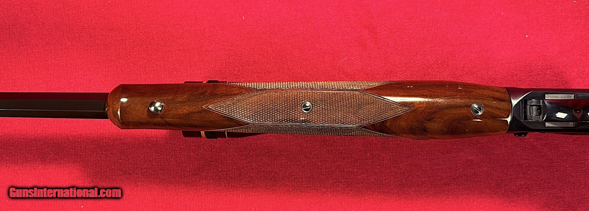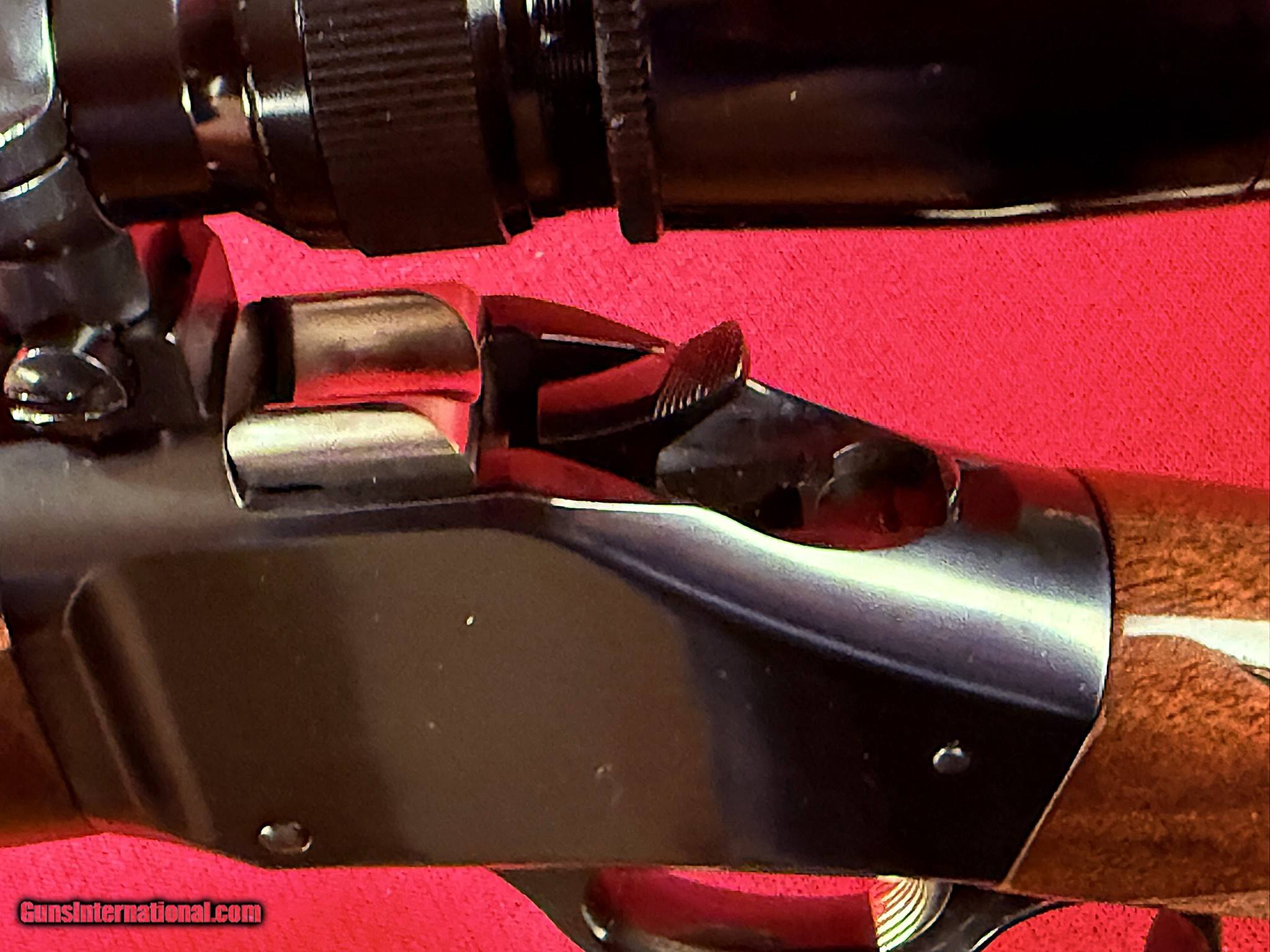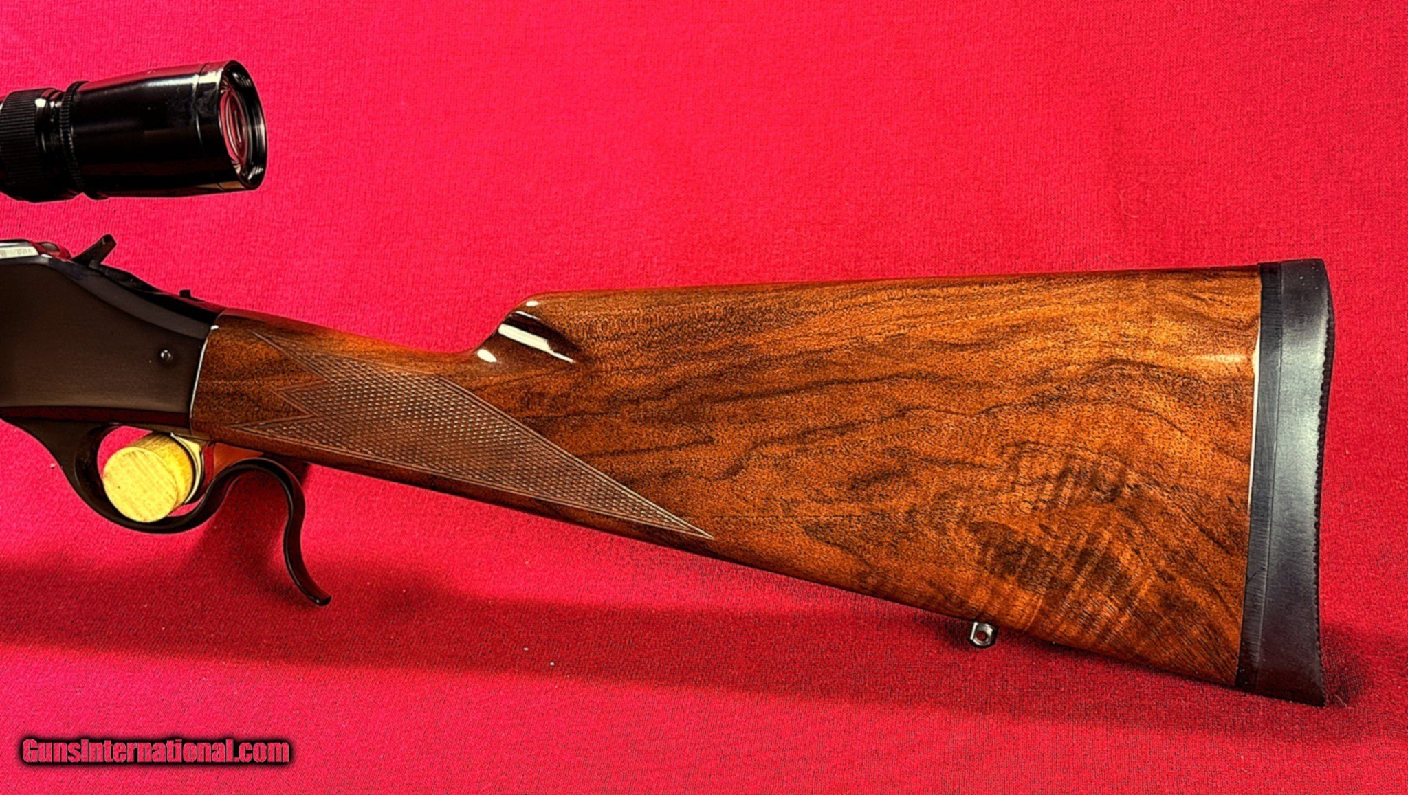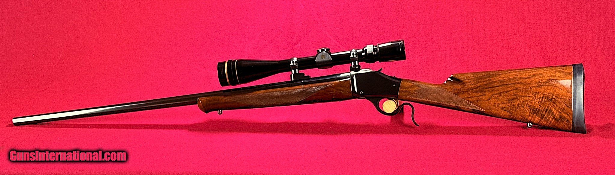 Beautiful BROWNING 1885 Rifle in 22-250. It comes with a Leupold 6.5 X 20 Vari-X III scope that looks brand new. The rifle is in excellent shape with virtually no wear on the bluing. According to the serial number, this one was made 30 years ago in 1995. The Walnut stock is really nice with some fiddleback in the buttstock. It is checkered in the original Winchester checkering pattern. There are a couple of small marks on the stock finish, most noticeable on the left side of the forearm just in front of the receiver. Other than that the stock is nearly perfect. The photos tell the story. This one has not been fired very much and the bore appears perfect. The falling block action works crisply, and I really like the exposed hammer. It has a octagon barrelthat measures 28 inches long. You should get some great velocity from this long barrel. Even with the long barrel, the rifle is shorter than most bolt actions with 24" barrels. The Leupold scope looks new and the optics are perfect. It has the fine plex crosshair that is really helpful when aiming at small ground squirrels at long range. I think that you will be very impressed with this one, especially with the scope.
