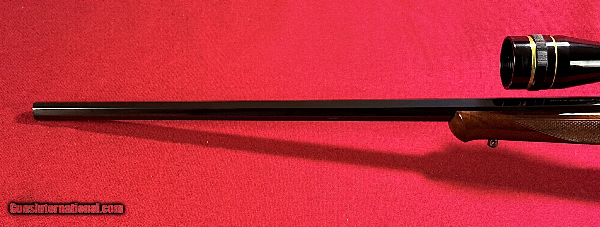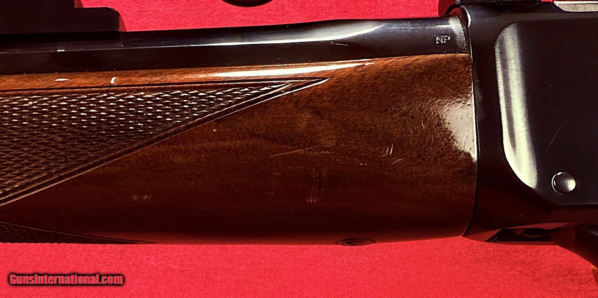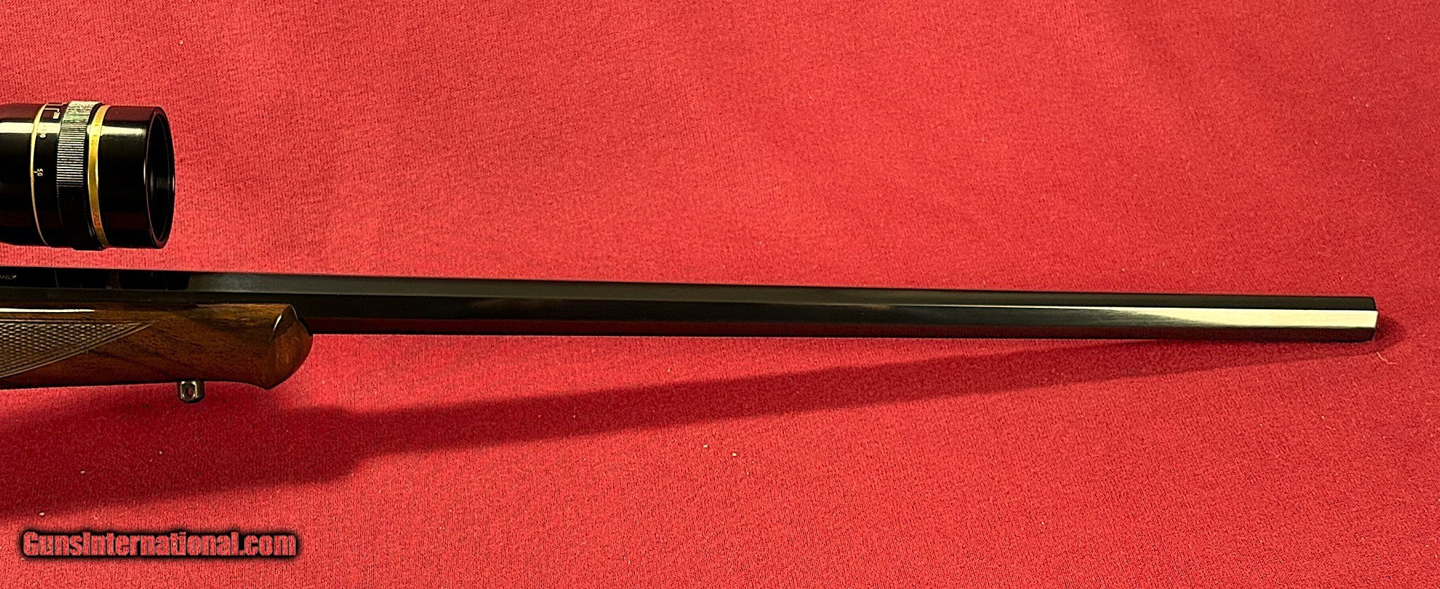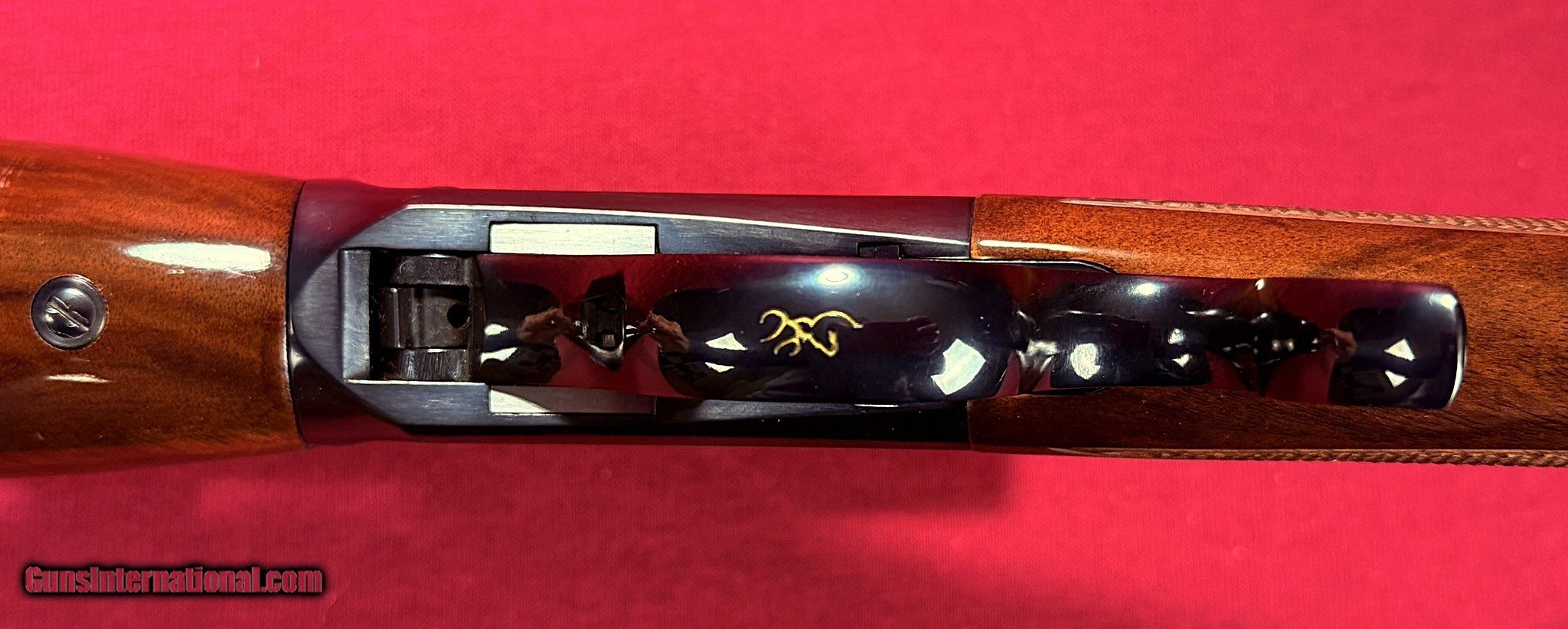 Beautiful BROWNING 1885 Rifle in 22-250. It comes with a Leupold 6.5 X 20 Vari-X III scope that looks brand new. The rifle is in excellent shape with virtually no wear on the bluing. According to the serial number, this one was made 30 years ago in 1995. The Walnut stock is really nice with some fiddleback in the buttstock. It is checkered in the original Winchester checkering pattern. There are a couple of small marks on the stock finish, most noticeable on the left side of the forearm just in front of the receiver. Other than that the stock is nearly perfect. The photos tell the story. This one has not been fired very much and the bore appears perfect. The falling block action works crisply, and I really like the exposed hammer. It has a octagon barrelthat measures 28 inches long. You should get some great velocity from this long barrel. Even with the long barrel, the rifle is shorter than most bolt actions with 24" barrels. The Leupold scope looks new and the optics are perfect. It has the fine plex crosshair that is really helpful when aiming at small ground squirrels at long range. I think that you will be very impressed with this one, especially with the scope.