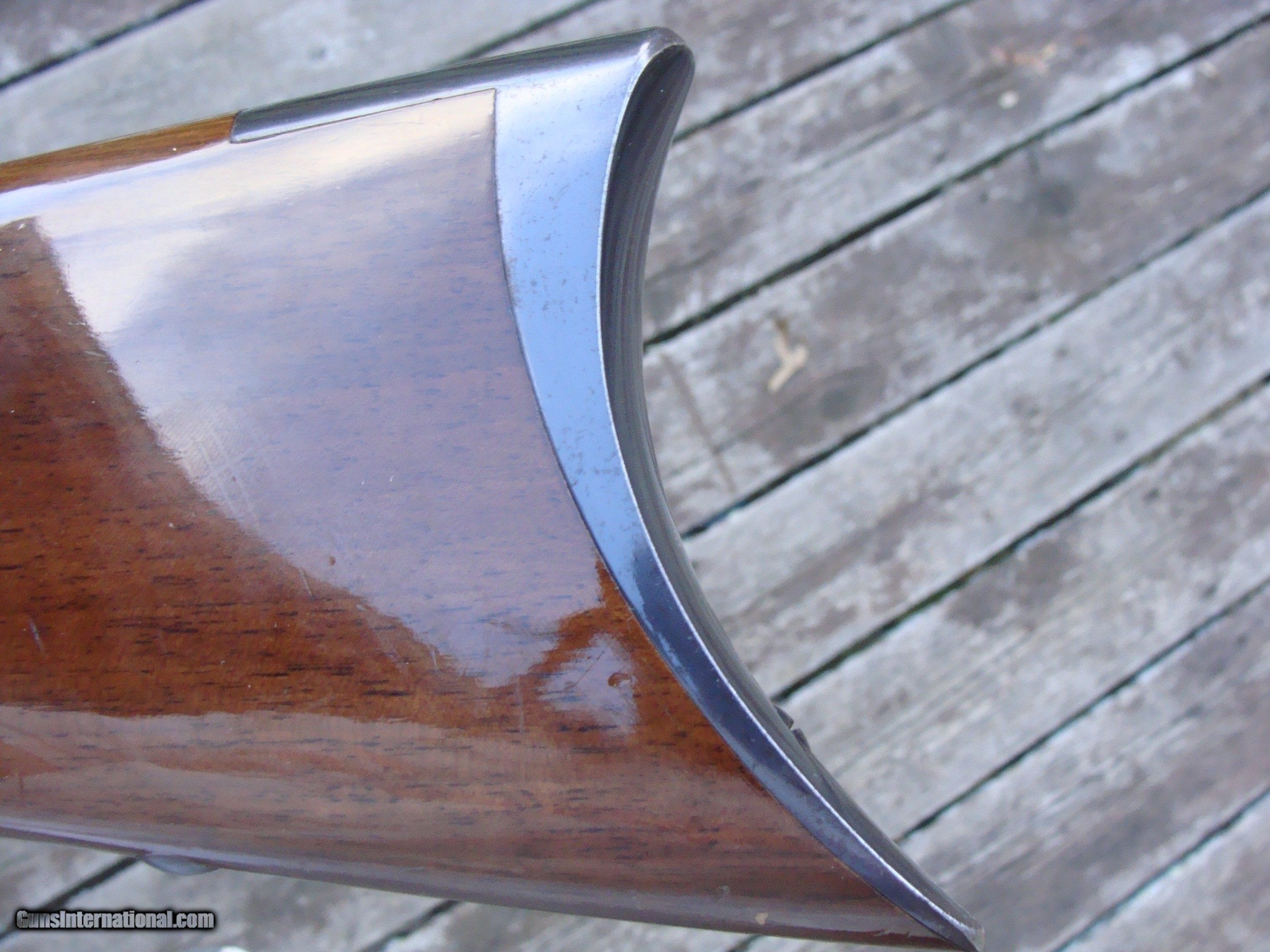 Description: This handsome and distinctive falling block type rifle with octagon barrel and scnable (2 pc stock) forend and traditional curved steel butt. Beautiful dark nicely checkered American Walnut stock. This gun has been hunted and has some loss of blue and hunting marks on stock Includes quality US Made Redfield Scope Shown. Shipping $ 59.00 PLEASE READ EVERYTHING BELOW IN BOLD: IF IT DOES NOT SAY NEXT TO THE PRICE..."SALE PENDING OR UNDER DEPOSIT"...IT IS AVAILABLE. WE DO NOT REPLY TO INQUIRIES THAT SAY "INTERESTED IN THIS GUN" OR "IS IT AVAILABLE" IF YOU WOULD LIKE TO BUY THIS OR ANY OF OUR GUNS WE SUGGEST YOU PHONE US; WE ARE OFTEN AVAIALABLE LONG HOURS. IF YOU ARE INTERSTED IN A GUN THAT IS UNDER DEPOSIT AND WOULD LIKE TO BE NOTIFIED IF A SIMILAR GUN COMES IN DROP US A LINE AND WE WILL MAKE EFFORTS TO CONTACT YOU WHEN ONE DOES COME IN. WE HAVE OVER 2000 SALES ON ALL SITES WITH AN A+ RATING ON ALL WE ALSO KEEP AN INVENTORY OF OLDER PERIOD CORRECT SCOPES; CALL WITH NEEDS WE MOSTLY PICK VERY CLEAN AND LIGHLTY USED GUNS. WE ARE HAPPY TO TAKE CONSIGNMENT GUNS AND COLLECTIONS OR WILL BUY YOURS OUTRIGHT. WE SOMETIMES ARE EMPLOYED FOR ESTATE PURPOSES AND VALUATIONS. CT RESIDENTS MUST CONTACT US TO UNDERSTAND OUR IN STATE TRANSFER POLICIES. PAYMENT USPS MONEY ORDER ONLY AT THIS TIME. ( WE CAN TAKE A DEPOSIT WITH A CARD BUT THE GUN MUST BE PAID WITH A USPS MONEY ORDER) IT IS THE BUYERS RESPONSIBILITY TO GET US A COPY OF YOUR RECEIVING FFL'S LIC AND A COPY OF YOUR PHOTO ID BEFORE THE GUN SHIPS YOU MUST CALL YOUR FFL.WE DO NOT CALL FOR YOU. LAYAWAY PURCHASES NOT COMPLETED OR ANY RETURNED ITEM UNLESS NOT AS DESCRIBED OR DAMAGED ARE SUBJECT TO A 10% RELISTING/RESTOCKING FEE AND MUST BE RETURNED WITH NO NEW MARKS OR SCRATCHES, SENT BACK INSURED, PRIORITY SIGNATURE REQUIRED. ALL INFORMATION CONTAINED HEREIN IS BELIEVED TO BE ACCURATE BUT IS NOT GUARANTEED. WITH ANY OLDER OR USED GUN IT SHOULD BE EXAMINED BY A GUNSMITH OR COMPETENT EXPERT PRIOR TO USE) SOLD Serial Number: 1 |