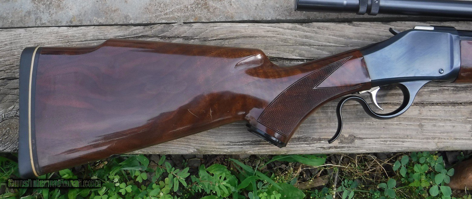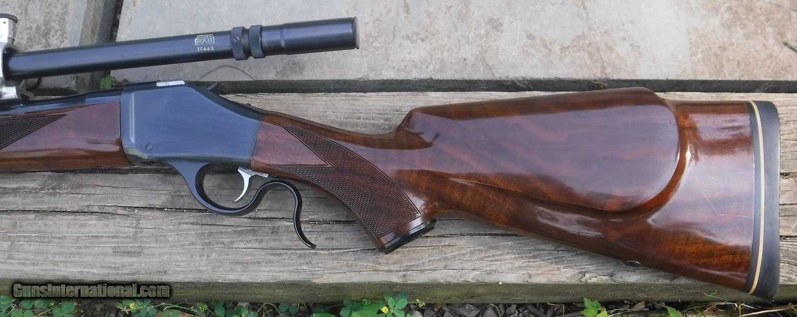 Description: BROWNING MODEL 78 FALLING BLOCK RIFLE IN CALIBER 6 mm Remington - mounted with unertl target scope - blueing is 99.9% - wood 98% with a coule of scratches. overall 99% gun. SOLD |