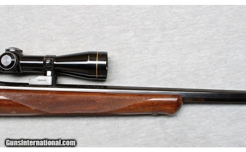 Description: Browning Model 78 Rifle chambered for 6MM Remington. The 78 was basically a resurrection of the old Winchester High Wall. This elegant rifle has a high polish steel blue receiver that is drilled and tapped for scope mounting. It has a heavy octagon sporter contour barrel. It has a lever operated single shot falling block action. It has a checkered Grade III/IV walnut pistol grip style gloss finish stock with Monte Carlo cheek piece and blued steel grip cap. A Leupold M* 6X Scope with rings and bases included. 6mm Remington SOLD Metal Condition: Very Good Wood Condition: Good - solid stock with many handling marks Bore Condition: Bright Barrels: 26 Inches Triggers: Factory Stock Dimensions: LOP 13 1/2 inches Fore End: Checkered walnut Butt Pad: Rubber pad Sights: Leupold M8 6X Item Location: La Vista, NE |