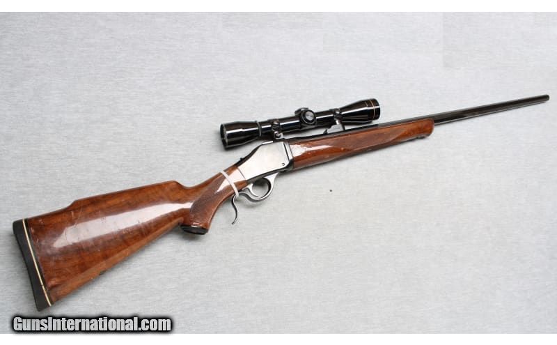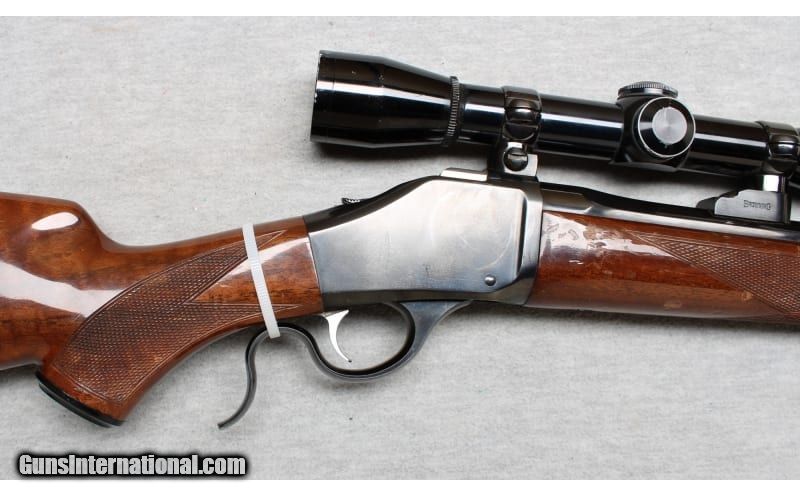 Description: Browning Model 78 Rifle chambered for 6MM Remington. The 78 was basically a resurrection of the old Winchester High Wall. This elegant rifle has a high polish steel blue receiver that is drilled and tapped for scope mounting. It has a heavy octagon sporter contour barrel. It has a lever operated single shot falling block action. It has a checkered Grade III/IV walnut pistol grip style gloss finish stock with Monte Carlo cheek piece and blued steel grip cap. A Leupold M* 6X Scope with rings and bases included. 6mm Remington SOLD Metal Condition: Very Good Wood Condition: Good - solid stock with many handling marks Bore Condition: Bright Barrels: 26 Inches Triggers: Factory Stock Dimensions: LOP 13 1/2 inches Fore End: Checkered walnut Butt Pad: Rubber pad Sights: Leupold M8 6X Item Location: La Vista, NE |