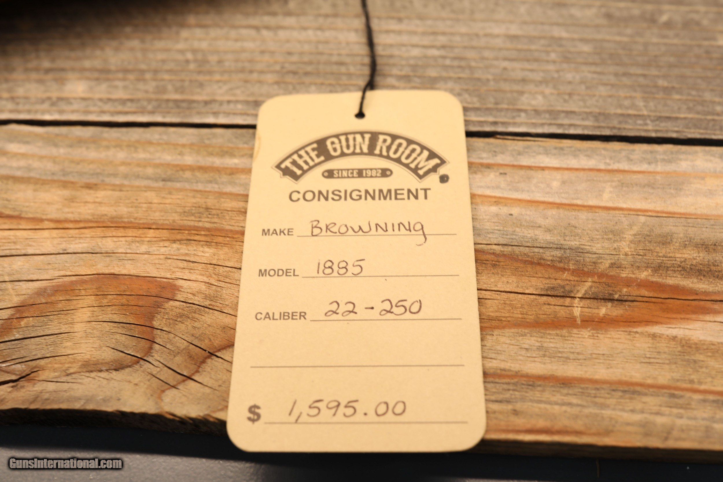 Description: Browning 1885 Single Shot 22-250 Lever operated single shot comes with sling and Redfield scope as pictured Octagonal barrel SOLD Rifle Caliber: .22-250 Remington Manufacturer: Browning Model: 1885 Serial Number: 01348PV247 Condition: Excellent Metal Condition: Excellent Wood Condition: Excellent |