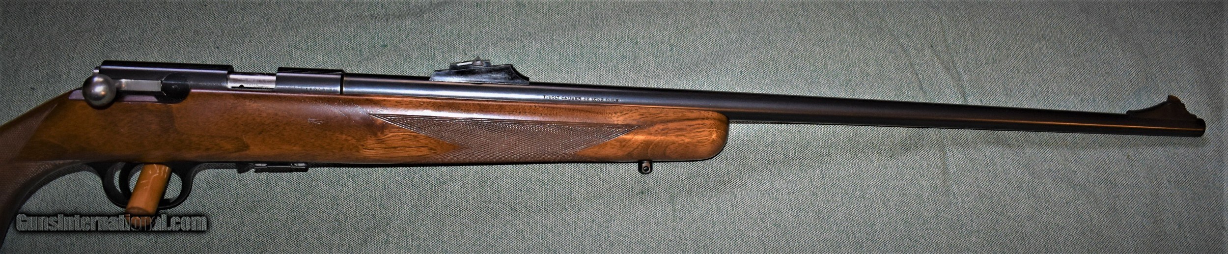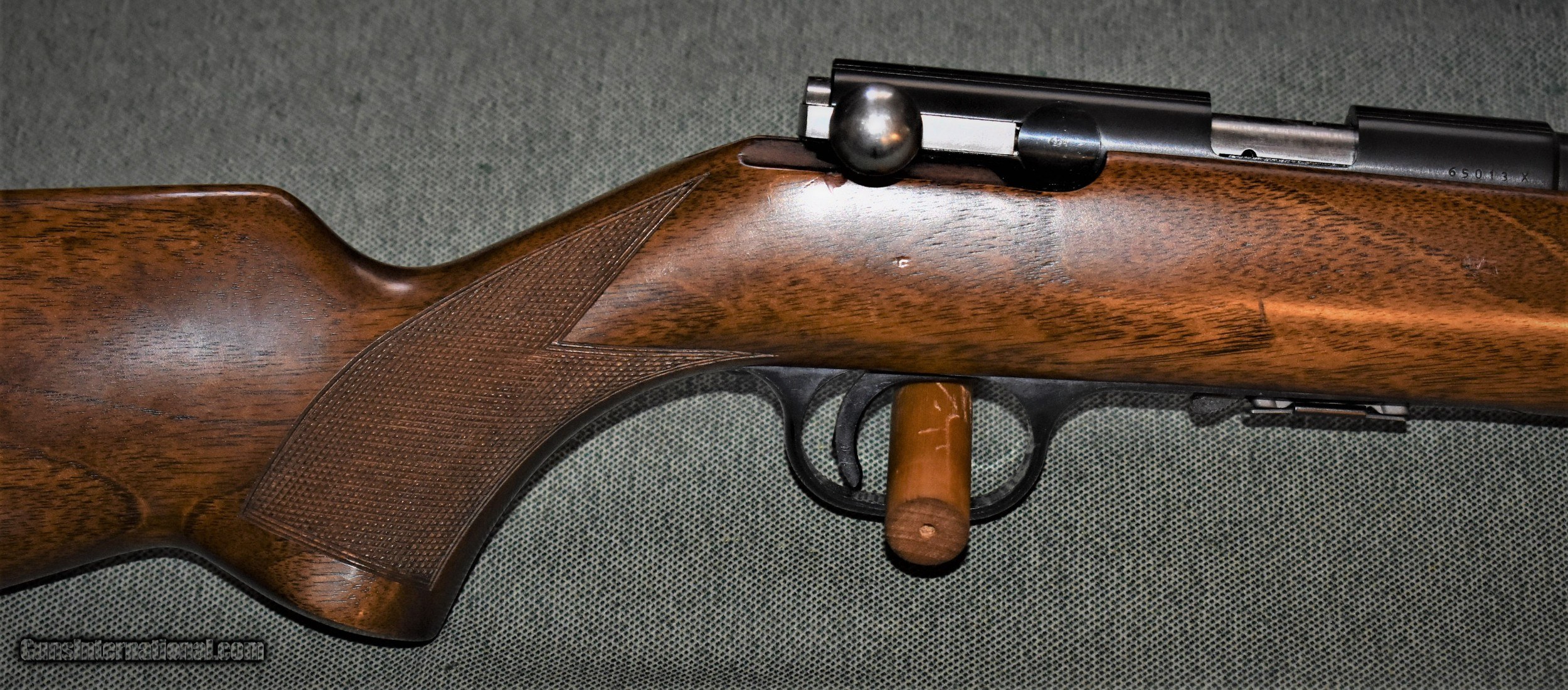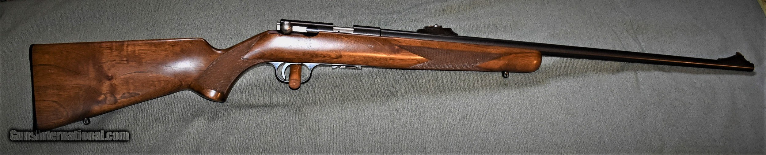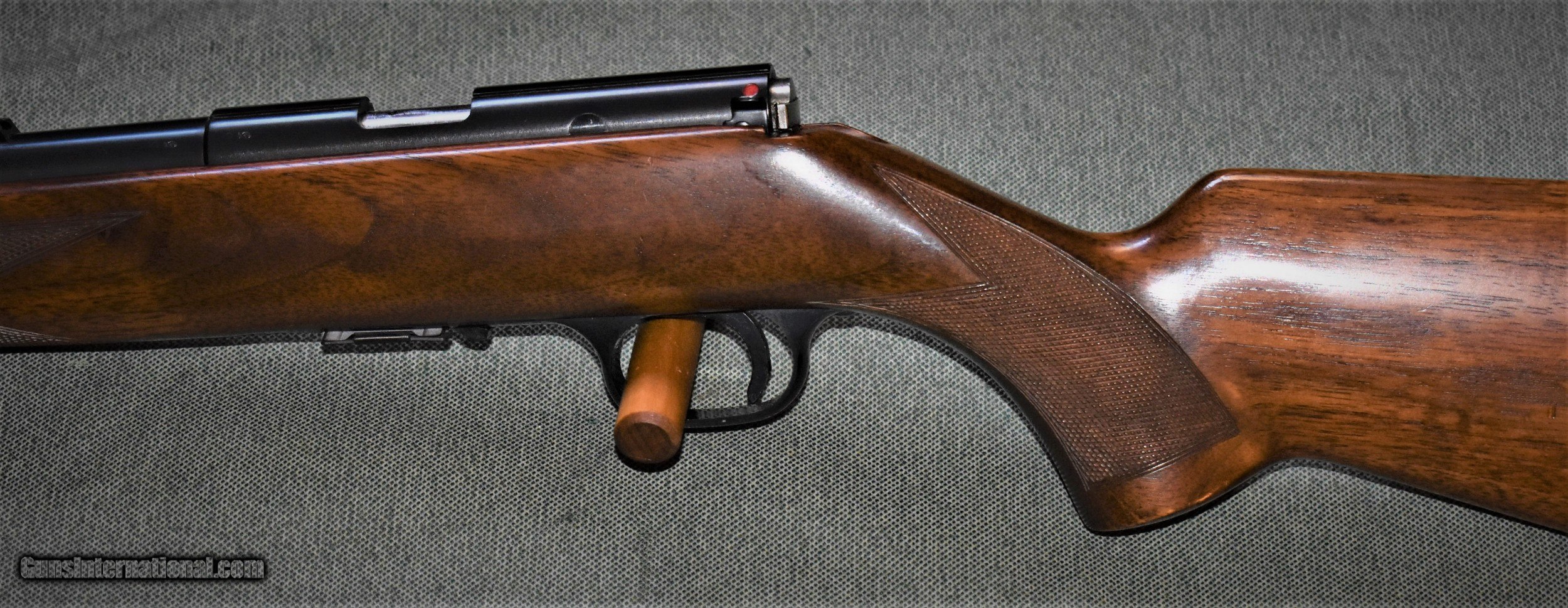 Description: Belgian Browning T2 Tbolt 22 long rifle in mint like new original condition. This rifle retains 100% of the original blue and wood finish. The wrap around checkering shows no wear and the stock is salt free. The grooved top receiver has never had a scope on it. The bore is mint with sharp well defined rifling The rifle has a factory installed Williams rear sight which indicates that this rifle was built in the mid 1970s at the end of the first T bolt production. It comes with one factory magazine. A classic little 22 for collector or shooter. Hard to find in this condition. SOLD Rifle Caliber: .22 Long Rifle Manufacturer: Browning (FN) Model: T2 Tbolt Serial Number: 65013X Condition: mint Metal Condition: mint Wood Condition: m Bore Condition: mint Barrel Type: Browning Special Steel Action: Bolt Butt Pad: Factory Buttplate |