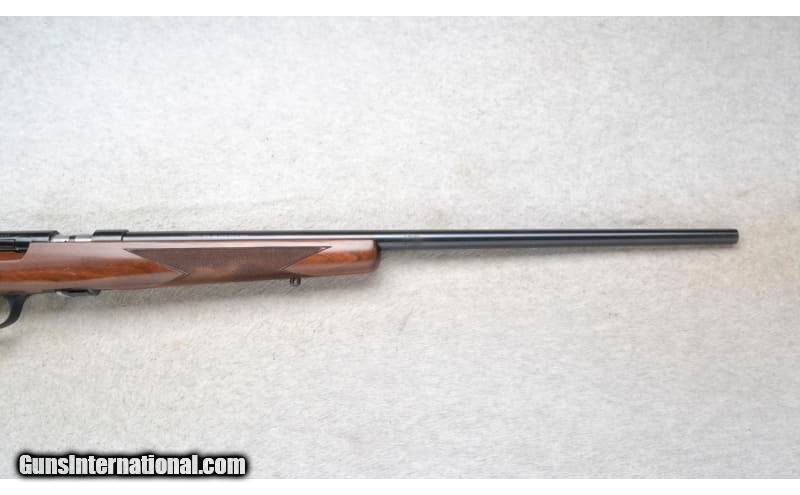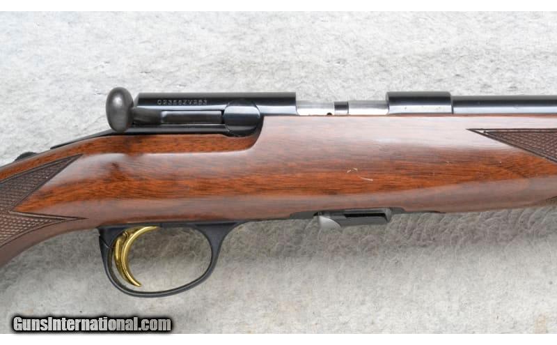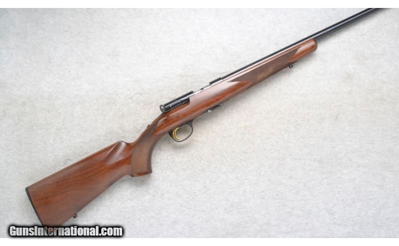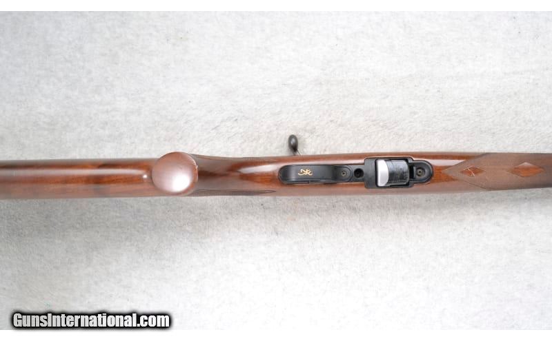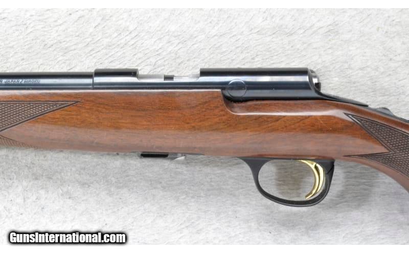 Description: This Browning Model T-Bolt is a right hand bolt action rifle in .22 Long Rifle Cal. It has a 22 inch barrel. It is drilled and tapped for a scope mount. The butt stock is a checkered grip walnut pistol grip. The forearm is a checkered grip walnut. Made in Japan. .22 Long Rifle SOLD Chambers: Detachable Magazine. Metal Condition: Barrel has some heavier freckling. Wood Condition: Very Good. Some minor handling marks. Bore Condition: Excellent. Barrels: 22 inch. Stock Dimensions: LOP 13 1/2 inches. Fore End: Checkered grip walnut. Butt Pad: Browning black plate. Weight: 5 lb. 6 oz. Sights: Drilled and tapped for a scope mount. Item Location: Richfield, WI |