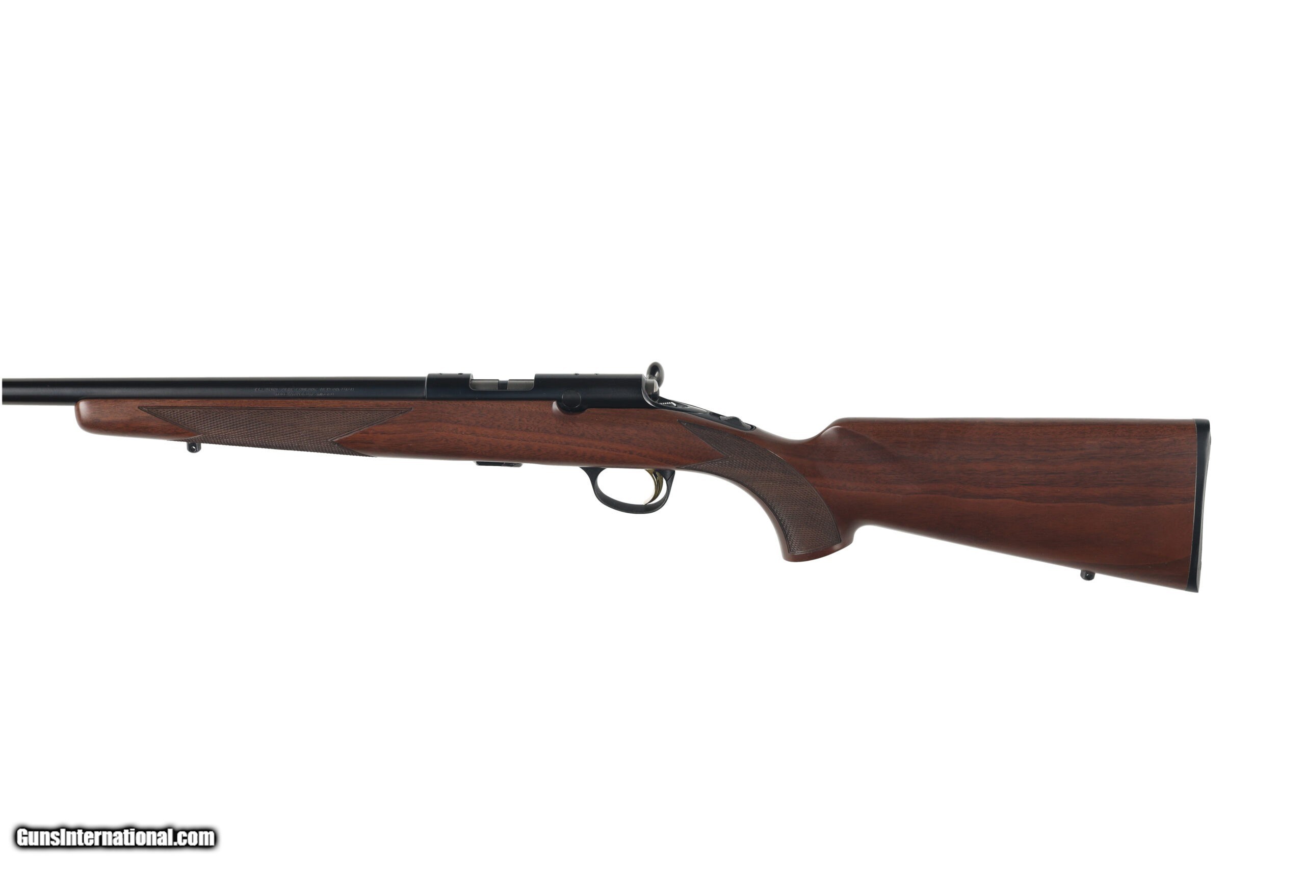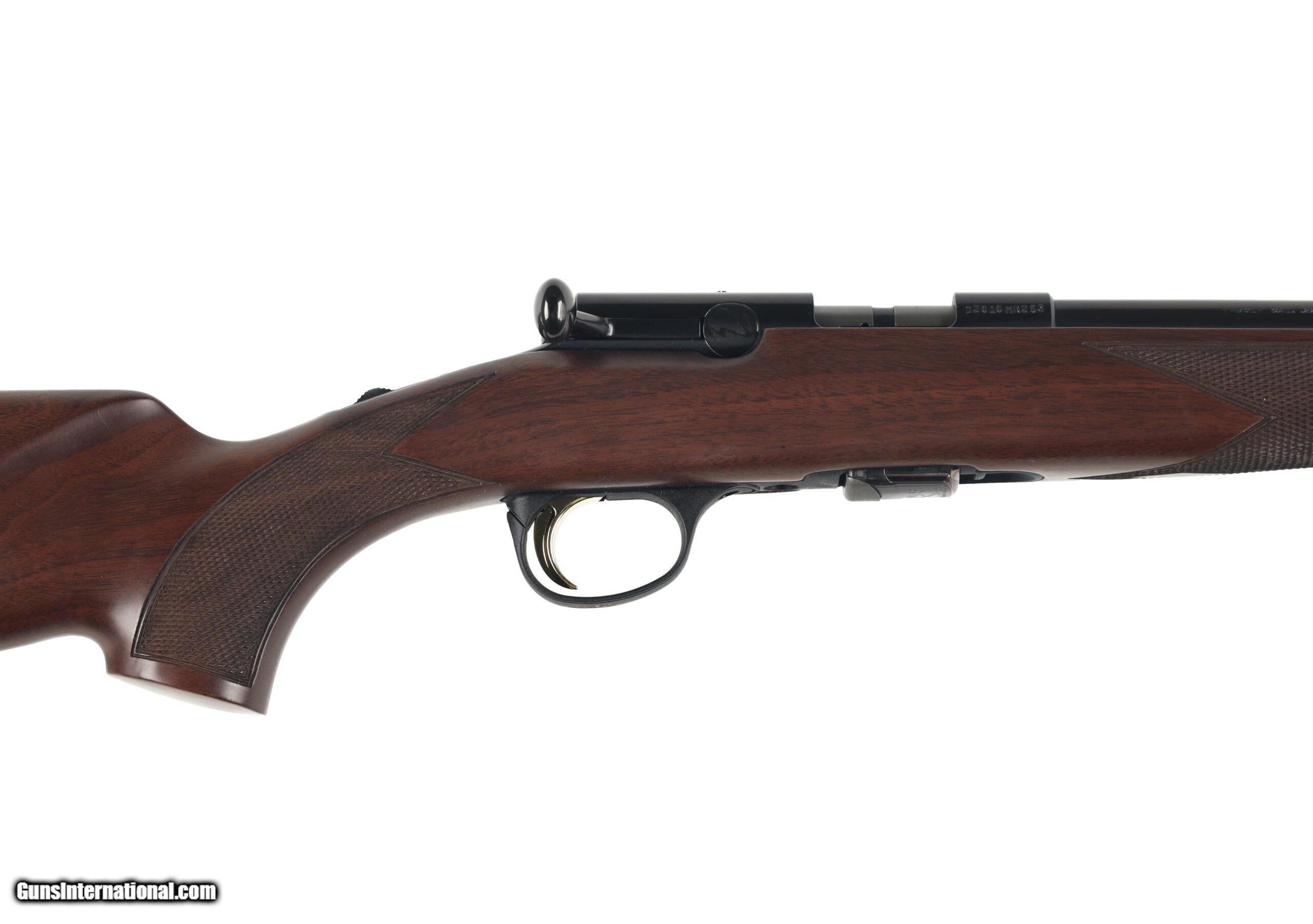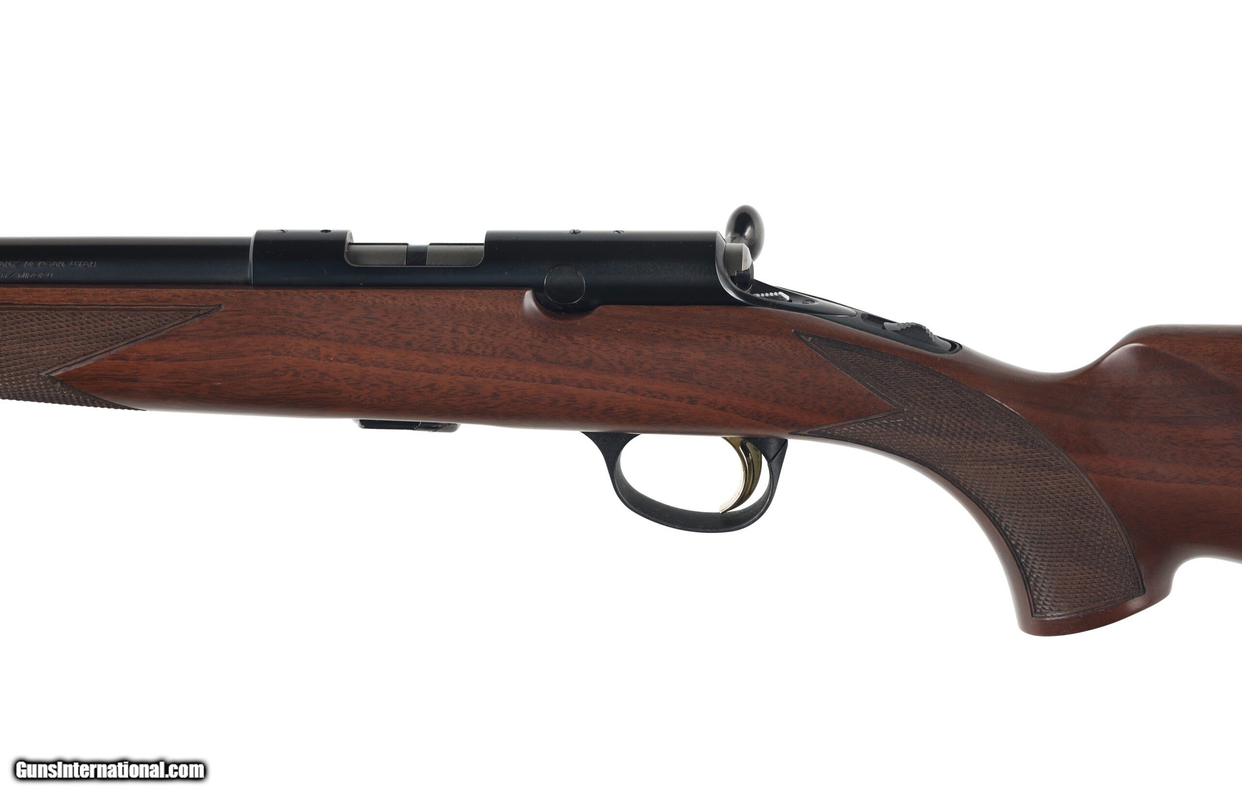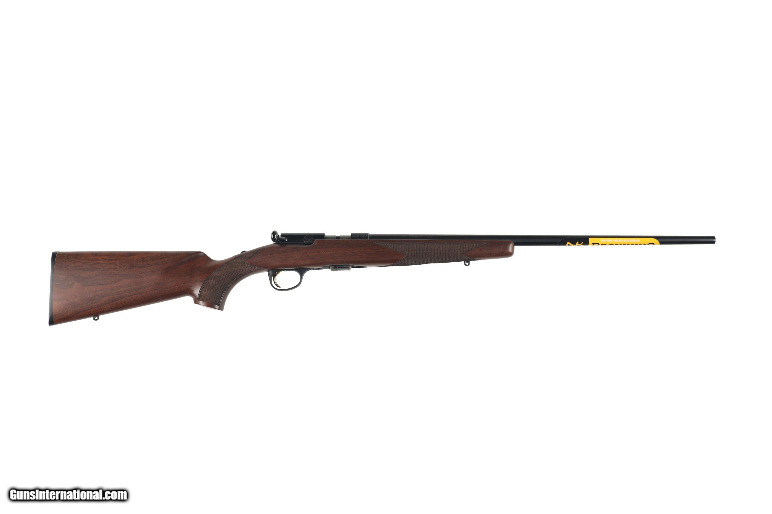 Description: The browning T-Bolt was originally released in 1965, introducing its unique straight pull bolt design utilizing a locking plunger actuated by its T shaped bolt handle. In 2006 the system was redesigned to utilize a new rotary and introduced several synthetic stock designs. This example is in like new condition, appearing to have never been used and comes in its original box. Manufactured in: Japan Hand: Right Hand Action Finish: Blue Metal Finish: Original Barrel Length: 22 Inches Barrel Condition: As New Stock Finish: Original Stock Condition: As New Type of Butt: Factory Plate Grip: Pistol Forend: Checkered SOLD Manufacturer: Browning Model: T-Bolt Caliber Info: .22 Long Rifle Condition: Preowned Metal Condition: As New Action: Straight Pull Bolt Triggers: Single Fore End: Checkered LOP: 13 1/2 Finish: Original Weight: 5.4 lbs Case: Factory Box |