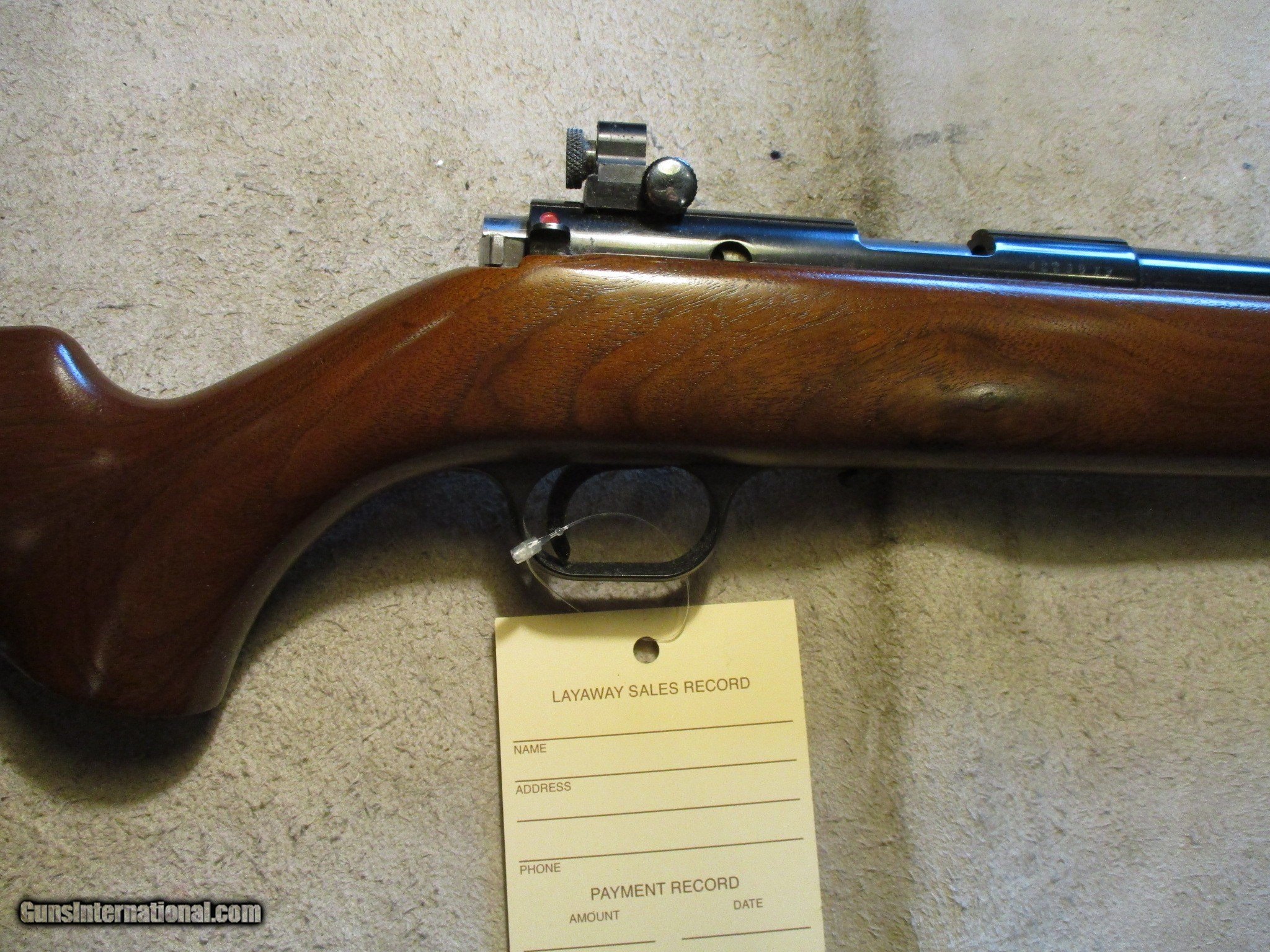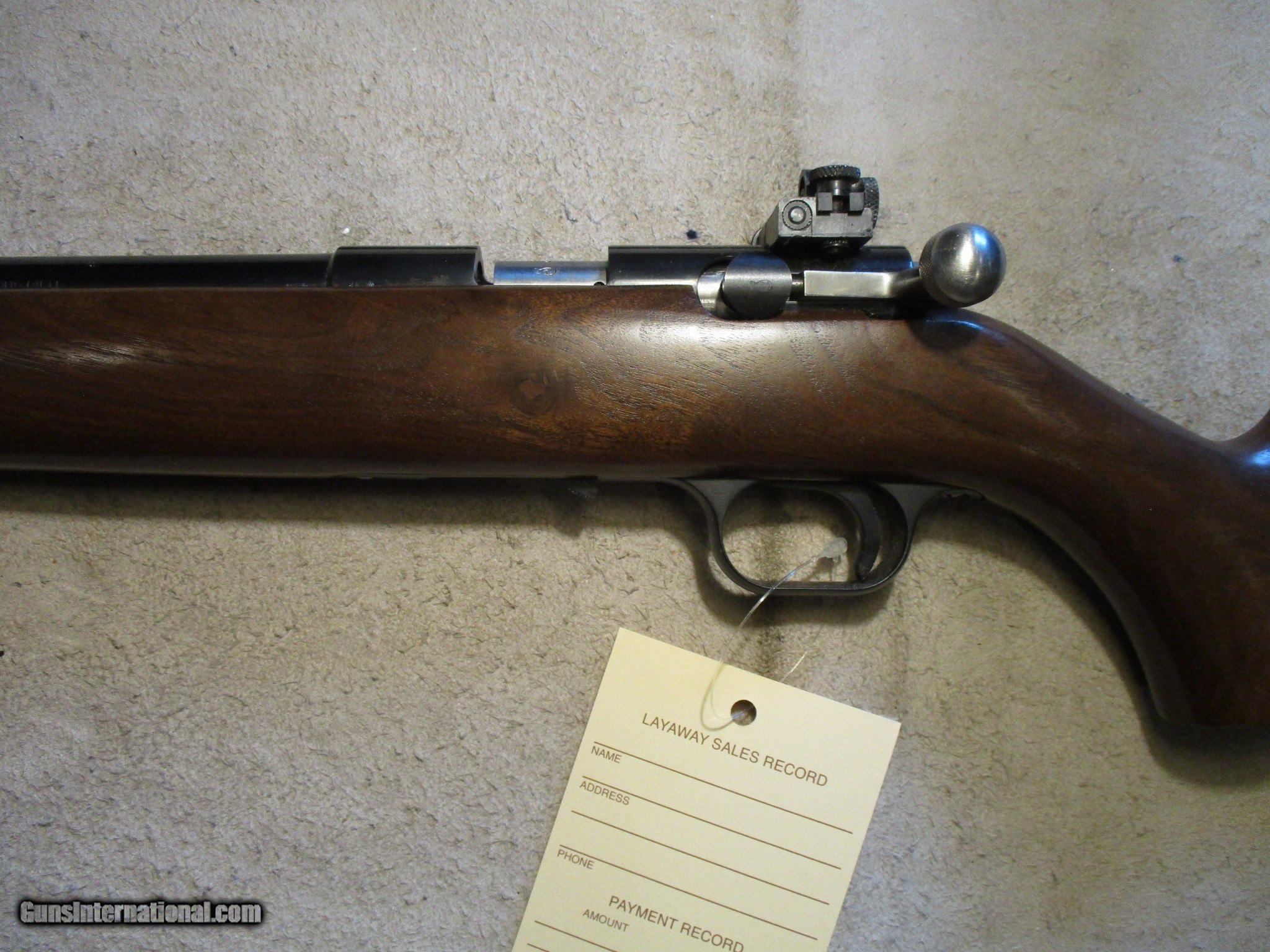 Description: Belgiium Browning T-Bolt Left Hand, 22" barrel, 22LR with a peep sight. Comes with a 5 round mag, and a single shot addaptor. Comes with the facotry owners manual and paperwork. Factory butt plate, factory finish on both wood and metal. Clean all original gun, hardly been shot at all. We will trade for silver and gold. We accept personal check, any certified funds, Venmo or Zelle. We can also take your credit card, +3%. Email me if you would like these pictures sent to you, they will come through bigger and better than on the listing page here. We do offer Layaway. Our standard terms are 25% down, 90 days. Initial deposit is not refundable. Email me with any questions. Please check your local laws to confirm it is legal to own in your state! Buyer pays $60 shipping and insurance in a brand new PLANO hard case to your FFL in the lower 48. AK, HI or PR is extra. I will ship to California, as long as it is legal, NO PROBLEM! All my guns come with a non-firing, 3 day unconditional return privilege, from the day UPS delivers to your dealer. Buyer pays shipping both ways if the gun comes back. Please make sure to make it to your FFL to inspect within the 3 days. I am a licensed FFL, and will include a copy of my FFL with the gun for your dealer’s records. I will ship to a C&R if the gun is eligible. I will ship to California, but you need to confirm the gun is legal where you are, California or other. WE BUY AND CONSIGN GUNS AND GUN COLLECTIONS! We will travel to pick up collections! I am always looking for good clean, old original Winchesters to buy, consign, or trade, especially Pre '64's model 70's and model 54's. WE ALSO TRADE FOR CLASSIC CARS AND TRUCKS! We also trade for gold and silver. SOLD Rifle Caliber: .22 Long Rifle Manufacturer: Browning Model: T-Bolt Barrel Length: 22 Condition: Used |