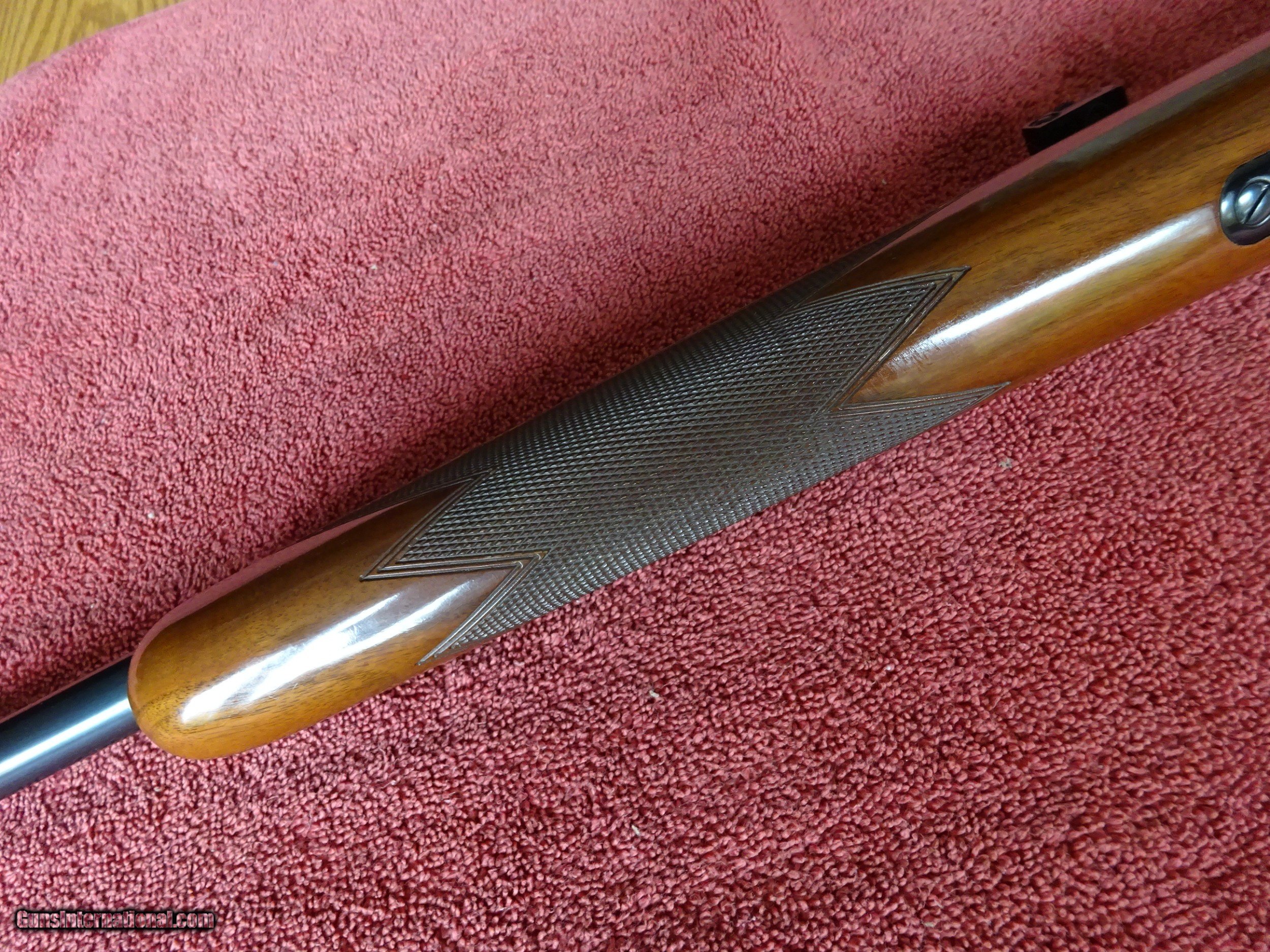 Description: BROWNING GRADE 2 T-BOLT. MADE IN BELGIUM, 24" BARREL, LONG RIFLE, 100% BLUE, MIRROR PERFECT BORE, RAMP FRONT SIGHT, REAR GROOVE MOUNTED PEEP SIGHT. NICELY FIGURED EUROPEAN WALNUT, MINOR FLAKING TO THE VARNISH FINISH, CHECKERED GRIP AND FORE STOCK. TRIGGER GUARD SHOWS 100% FINISH, 5 SHOT CLIP AND SINGLE SHOT ADAPTER. VERY PLEASING, 100% ORIGINAL CONDITION WITH NO INDICATION OF SALT WOOD. NICE GUN. $775.00 + $50.00 Insured shipping to an FFL address. See all Pats gun listings on this site! We also have hundreds of pieces of ORIGINAL gun company advertising & memorabilia available for sale on our site SPORTINGCOLLECTIBLES. We have no reprints or reproductions. Email for more information. SOLD Curio/Relic: Yes |