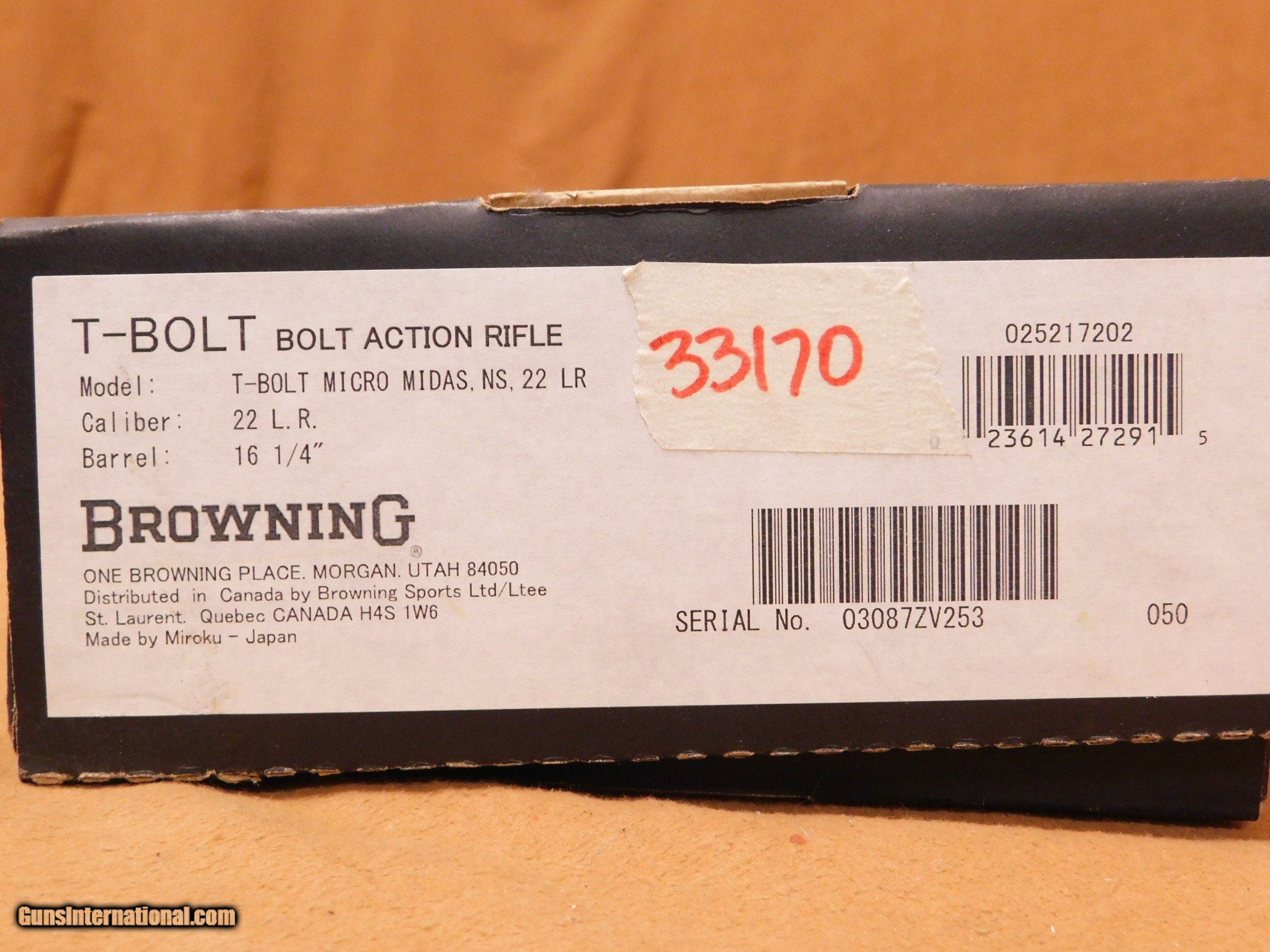 Description: This is a Browning T-Bolt Micro Midas. It is a youth-sized bolt-action rifle. This example was our store display model and, since the model is no longer in production, it needs to find a good home. It has several small dings from handling, but most, if not all, of them should steam out. This rifle comes with its factory box, booklet, and one magazine! All items are also available for sale in our brick & mortar store and are subject to prior sale. Think long, think wrong. Payment On firearms, we typically only accept credit cards or money orders/cashier's checks.