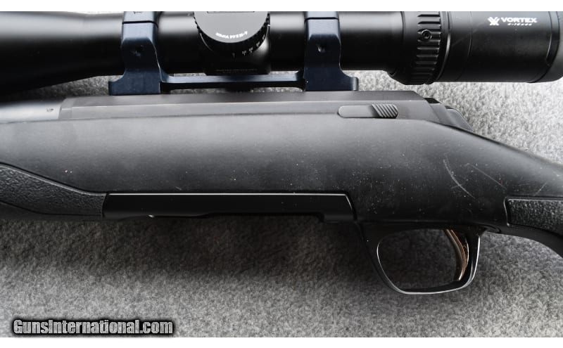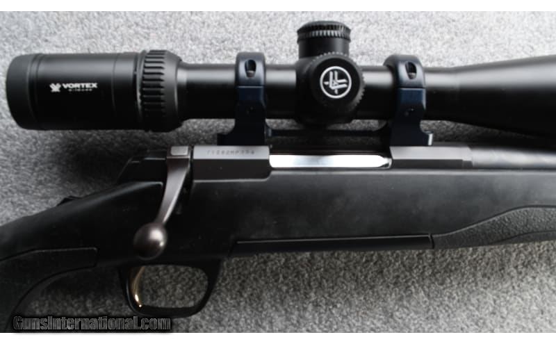 Description: Accurate bolt-action rifle with a tough composite stock, matte blue barrel and bolt-action, detachable rotary magazine, short throw bolt and adjustable trigger. .270 WSM SOLD Chambers: .270 Winchester Short Magnum in a three round detachable magazine Metal Condition: Very good Bore Condition: Very good Barrels: 23 Triggers: Gold-plated factory Stock Dimensions: 13 5/8" LOP Butt Pad: InFlex Weight: 7 Lb 10 Oz Sights: "No sights, fitted with a Vortex Viper 4-16x44 Scope Item Location: Grand Junction, CO |