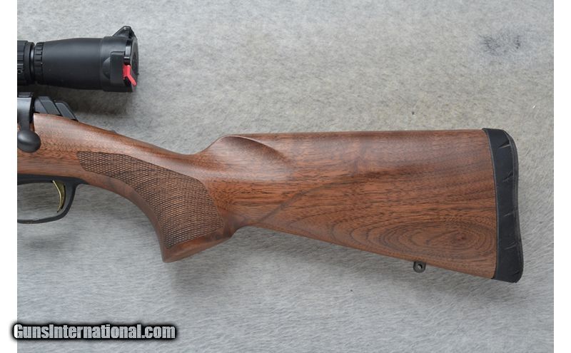 Description: This Browning Model X-Bolt is a left hand bolt action rifle in .30-06 Sprg. Cal. Only. It has a 22 inch barrel. It is outfitted with a Leupold VX-Freedom 3-9x40 Scope. No iron sights. The butt stock is a checkered grip walnut pistol grip. The forearm is a checkered grip walnut with finger grooves. It has a loaded chamber indicator. .30-06 Springfield SOLD Chambers: Left Hand bolt action with a 3 round detachable magazine. Metal Condition: Excellent. Wood Condition: Excellent with a couple of handling marks right side bottom butt stock. Bore Condition: Excellent. Barrels: 22 inch. Triggers: Golden. Stock Dimensions: 13 5/8 inches. Fore End: Checkered grip walnut with finger grooves. Butt Pad: Inflex Technologies black rubber recoil pad. Weight: 7 lb. 11 oz. Sights: Leupold VX-Freedom 3-9x40 Scope. No iron sights. Item Location: Richfield, WI |