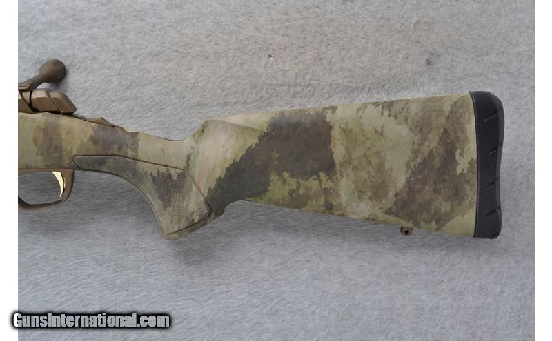 Description: This Browning Model X-Bolt is a right hand bolt action rifle in 7mm Rem. Mag. Cal. It has a 26 inch fluted barrel plus a muzzle device. 1-8 Twist. It is drilled and tapped for a scope mount. No iron sights. The butt stock is a textured grip polymer pistol grip in Camo. The forearm is a textured grip polymer in Camo with finger grooves. It has a loaded chamber indicator. Made in Japan/Miroku. 7mm Remington Magnum SOLD Chambers: 4 round detachable magazine. Metal Condition: Excellent. Bore Condition: Excellent. Barrels: 26 inch fluted barrel plus a muzzle device. 1-8 twist. Stock Dimensions: LOP 13 5/8 inch. Fore End: Textured grip polymer in Camo with finger grooves. Butt Pad: Inflex Technologies black rubber recoil pad. Weight: 7 Lb. 6 Oz. Sights: Drilled and tapped. No iron sights. Item Location: Richfield, WI |