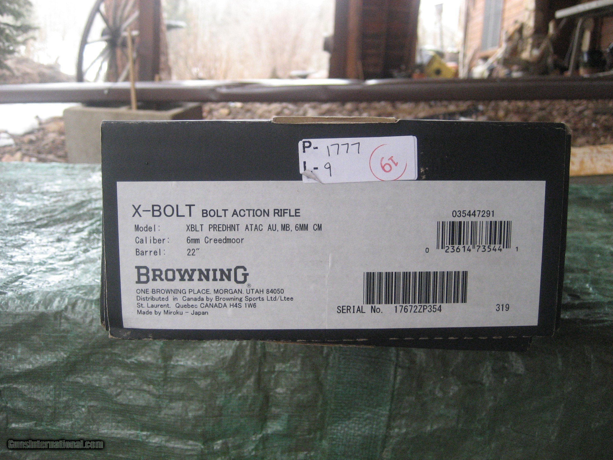 Description: Browning X-Bolt Hells Canyon 6mm Creedmoore NOT 6mm PPC . Dies, brass and bullets available at extra cost. Like new fired 20 rounds and ACCURATE! Not a mark on it, as new but fired. It loves the 100 grain bullet shooting 3/8 inch group on my 80 yard range. It comes with a scop[e base, in its original box with all of its paperwork and stickers still on the rifle. SOLD Rifle Caliber: 6mm PPC Manufacturer: Browning Model: X- Bolt Hells Canyon Barrel Length: 22 inches Condition: Like new Metal Condition: Like new Wood Condition: Like new Bore Condition: Like new |