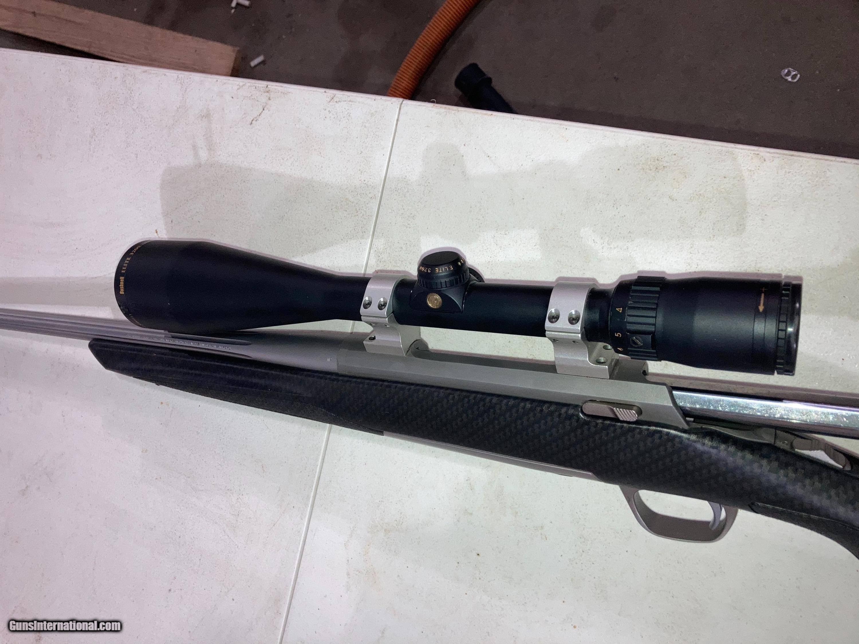 Description: Very nice browning xbolt long range hunter. Stainless fluted barrel. Bushnell Elite 3200 3-9x40 scope with Talley mounts. Great condition. Pictures show some dust. Buyer pays shipping to ffl dealer. $1,100. Call 402-200-0720 Action LengthLong ActionCaliber300 Win Mag Barrel Length26"Overall Length45 3/4" Length of Pull13 5/8"Drop at Comb11/16" Drop at Heel1/2"Weight7 lbs 7 oz Magazine Capacity3Twist Rate9 1/2" Barrel FinishMatteStock FinishCarbon Fiber Dip Receiver FinishMatteChamber FinishPolished Barrel MaterialStainlessBarrel ContourHeavy Sporter Stock MaterialCompositeRecoil PadInflex 1, Small Pistol Grip CapNoneCheckeringTextured Grip Panels Sling Swivel StudsMatte NickelReceiver MaterialStainless Trigger FinishNickel PlatedBolt Slide FinishHigh Gloss Magazine TypeDetachableTrigger MaterialAlloy Trigger Guard MaterialAlloyTrigger Guard EngravingBuck Mark in Gold Floor Plate MaterialCompositeDrilled and Tapped for ScopeYes SOLD Manufacturer: Browning Model: X-Bolt Barrel Length: 26 |
