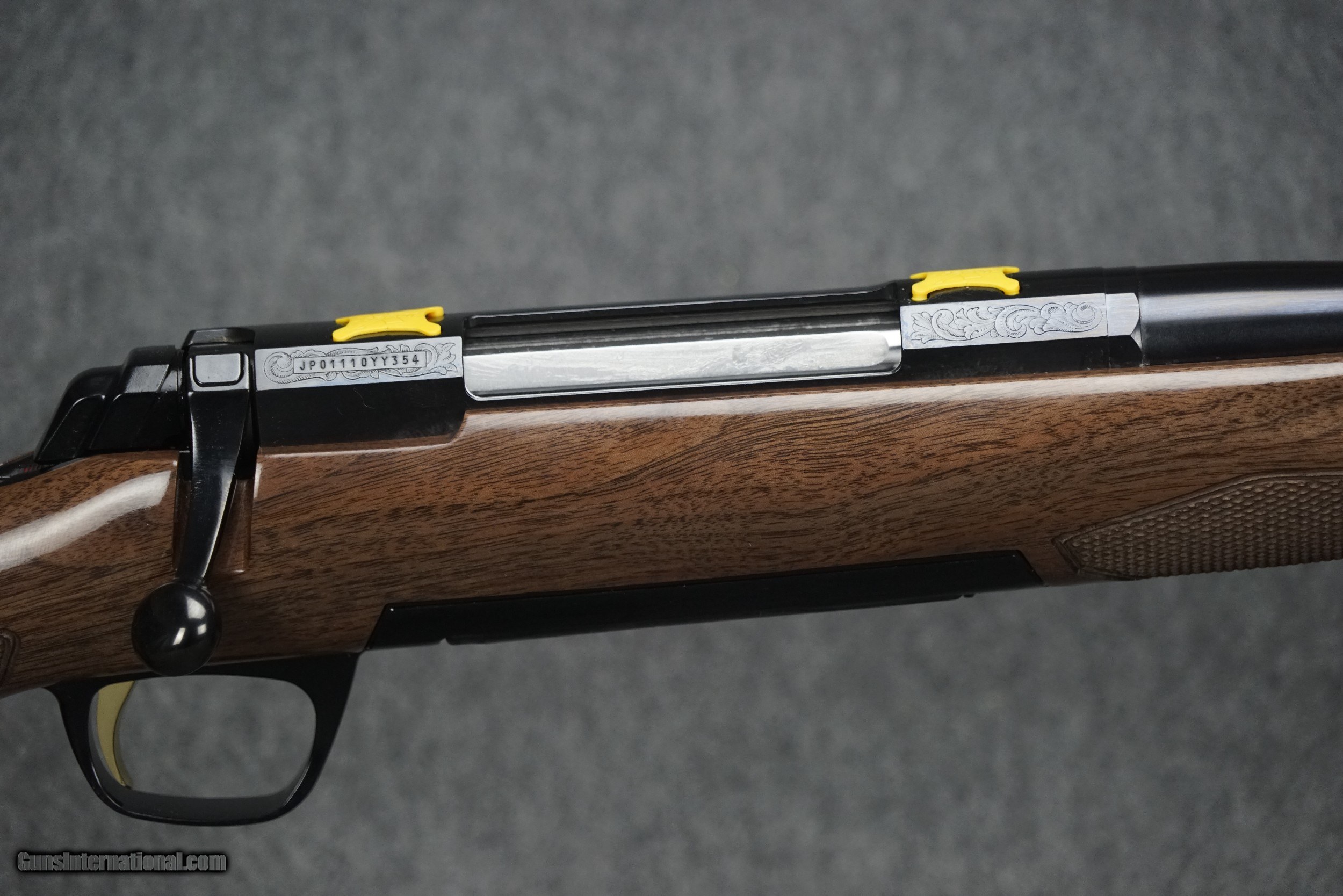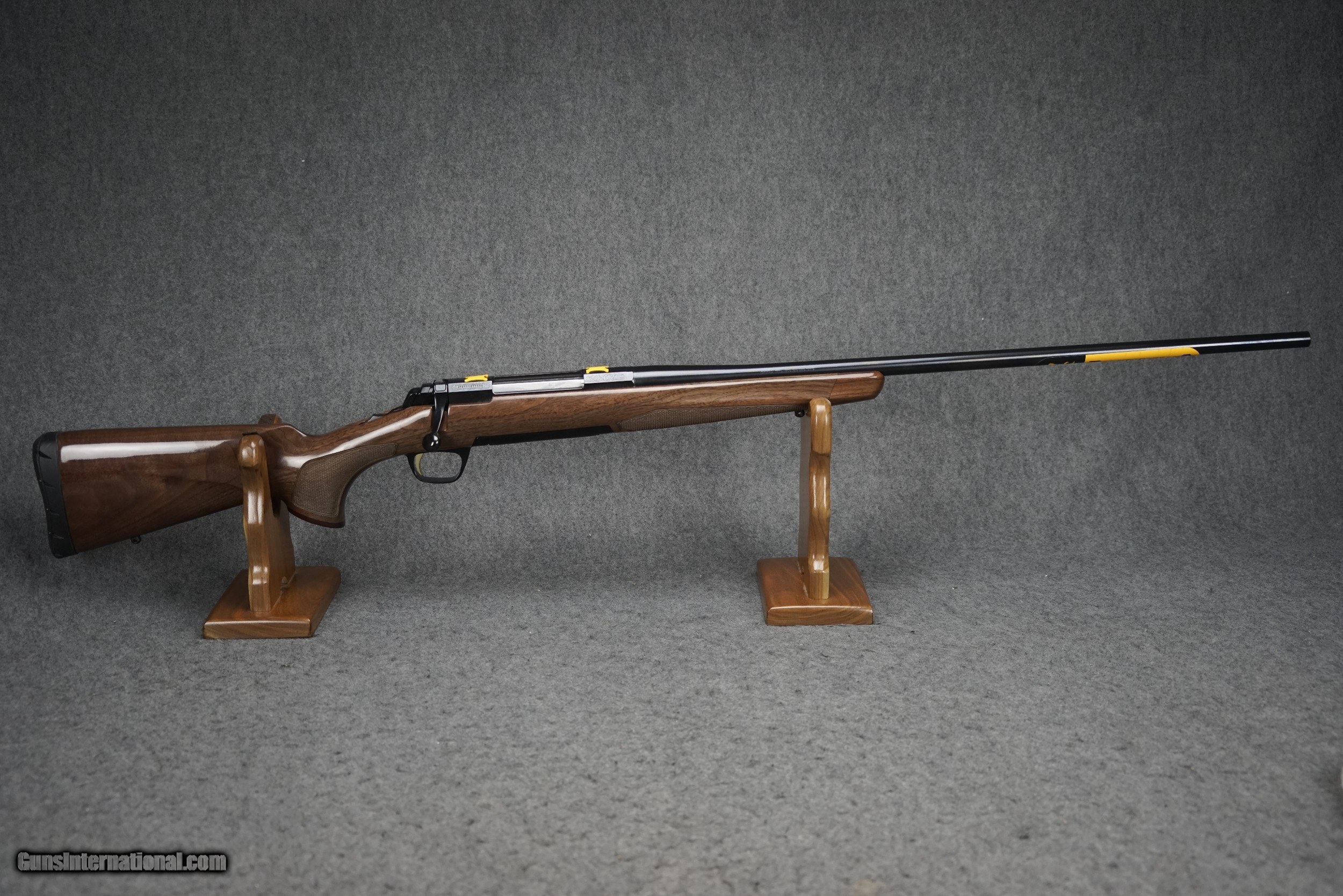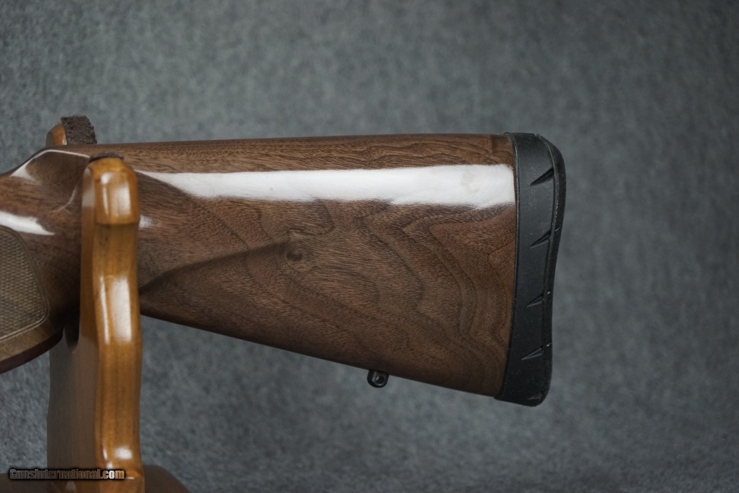 Description: This is the rifle you aspire to. You don't want to be embarrassed with a sub-par rifle on any hunt. And perhaps this is the year you need to upgrade your hunting rifle. The X-Bolt Medallion bolt action rifle is presented with a fine gloss-finished, checkered Walnut stock. The steel receiver is engraved and has a blued finish for beauty and durability. Insuring long-range accuracy is the totally free-floated barrel and Feather Trigger System, two of the most critical components of any high-powered hunting rifle. The function of the 60-degree bolt is sure, smooth and secure. Accuracy components are the key. As rounds feed from the detachable box magazine the bullet aligns straight with the chamber. This way, cartridges push directly in-line with the bore -- sure, simple and secure -- to protect bullet points and accuracy. And it is no ordinary magazine -- it is a compact Rotary magazine design that is as convenient as it is efficient. Did we mention the X-Lock system that's offers scope mounting twice as robust as conventional four screw systems? And the Bolt Unlock Button that allows you to open the bolt with the safety in the on position. Many other high-powered, bolt-action rifles may catch your eye. But feature-to-feature, the X-Bolt Medallion has more critical features to help you shoot straight and bag that deer or any big game animal confidently and accurately. Details matter. A durable gloss finish provides protection and enhances the natural beauty of the hardwood. The high-grade Walnut stock with detailed checkering provides classic good looks. Rosewood caps on the fore-end and grip offer additional elegance. Durable polished blued steel for a striking appearance. Action Length Long Action Caliber 300 Win Mag Barrel Length 26" Overall Length 46 3/4" Length of Pull 13 5/8" Drop at Comb 11/16" Drop at Heel 1/2" Weight 7 lbs 0 oz Magazine Capacity 3 Twist Rate 10" Barrel Finish Polished Blued Stock Finish Gloss Wood Grade Grade I Receiver Finish Polished Blued Chamber Finish Polished Barrel Material Steel Barrel Contour Sporter Stock Material Black Walnut Recoil Pad Inflex 1, Small Pistol Grip Cap Rosewood Checkering Cut 18 LPI Sling Swivel Studs Gloss Blued Receiver Material Steel Trigger Finish Gold Plated Bolt Slide Finish High Gloss Magazine Type Detachable Trigger Material Alloy Trigger Guard Material Alloy Trigger Guard Engraving Buck Mark in Gold Floor Plate Material Composite Drilled and Tapped for Scope Yes SOLD Rifle Caliber: .300 Winchester Magnum Manufacturer: Browning Model: X-Bolt Medallion Barrel Length: 26 Condition: BRAND NEW |
