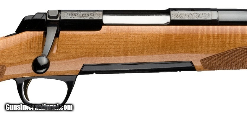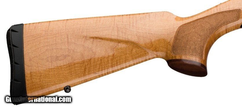 Description: Manufacturer: Browning Model: X-Bolt Medallion Maple SKU: 035448218 Caliber: .308 Win Capacity: 4 Round Detachable Magazine Barrel: 22" Steel, Sporter Contour, Polished Blued Twist Rate: 1:12" Stock: AAA Maple, Gloss Finish Length of Pull: 13.625" Overall Length: 42" Weight: 6 lbs 8 oz Sights: Drilled and Tapped for Scope Mounts High gloss AAA maple stock with rosewood caps, polished blued finish, engraved, detachable rotary magazine, short throw bolt, adjustable trigger, bolt-action A very special rifle indeed. A maple stock harkens back a few years, but the beauty has always been the king of style. And this rifle is no exception. Take one of these to the range and you will have a lot of visitors. The beautifully figured AAA maple is a joy to look at. Maple is nothing like walnut -- it has a look of its own. And the way it contrasts with the various X-Bolt components is striking. Not to mention the classic rosewood fore-end and pistol grip caps that finish the look down to the last detail. RECEIVER – Steel; Polished blued finish; Engraved; Glass bedded; Drilled and tapped for scope mounts BARREL – High gloss blued; Free-floating; Hand chambered; Target crown; Muzzle brake; Thread protector included ACTION – Bolt-action; 60° bolt lift; Adjustable Feather Trigger; Detachable rotary magazine; Top-tang safety; Bolt unlock button STOCK – High gloss AAA Maple with rosewood forend and pistol grip cap FEATURES – Inflex recoil pad; Sling swivel studs installed SOLD |