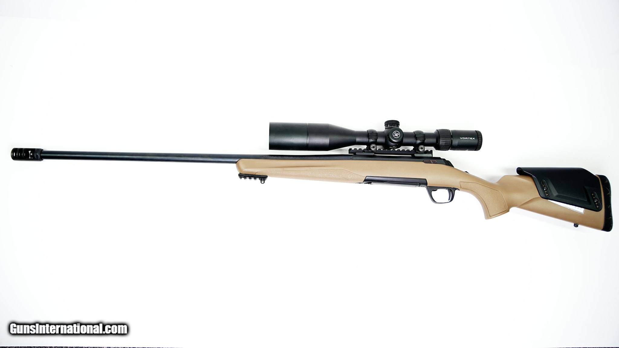 Description: Guns Listing ID: 688039 Browning X-Bolt Stalker Long Range FDE chambered in .28 nosler. Rifle is in excellent shape and includes several upgrades. Comes with Vortex Diamondback Tactical 6-24x50 First Focal Plane Scope with MRAD reticle and dials, Vortex Rings, and Talley 20 MOA rail. Also includes Browning Recoil Hawg muzzle brake. Rifle Specs: Action Length - Long Action Caliber - 28 Nosler Barrel Length - 26\" Overall Length - 46 3/4\" Length of Pull - 13 5/8\" Drop at Comb - Adj Drop at Heel - Adj Weight - 7 lbs 15 oz Magazine Capacity - 3 Twist Rate - 8\" Barrel Finish - Matte Black Stock Finish - Flat Dark Earth Receiver Finish - Matte Black Chamber Finish - Polished Barrel Material - Steel Barrel Contour - Heavy Sporter Stock Material - Composite Recoil Pad - Inflex 1, Small Checkering - Textured Grip Panels Sling Swivel Studs - Matte Blued Receiver Material - Steel Trigger Finish - Gold Plated Bolt Slide Finish - High Gloss Magazine Type - Detachable Trigger Guard Engraving - Buck Mark in Gold Photots are of actual rifle. SOLD Manufacturer: BROWNING Model: X-Bolt Caliber Info: .28 NOSLER Condition: Used - Non-Certified Barrels: 26 BARREL |
