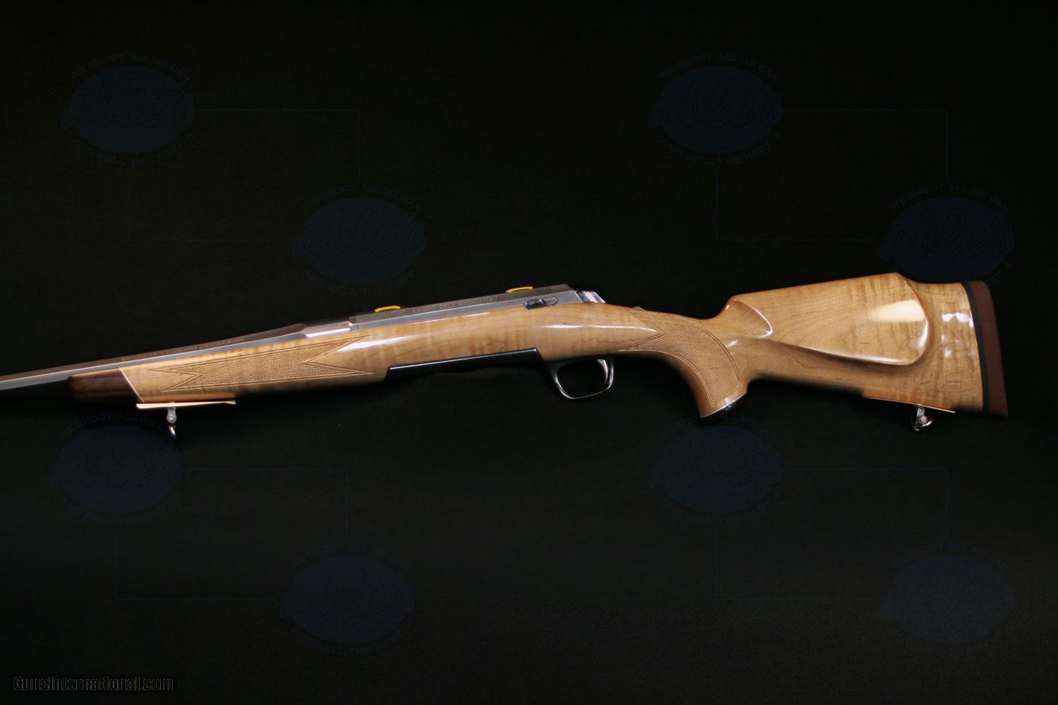 Description: Browning X-Bolt White Gold Medallion Maple Rifle 270 Winchester, 24", Maple Stock, Stainless Finish, 3 Rd Browning has over 50 years of experience with bolt-action high-powered rifles. Today's X-Bolt rifle inherits the strongest, most note-worthy features of its predecessors. The X-Bolt White Gold model has a Monte Carlo stock. This feature is recognized as the comb steps sharply down toward the heel of the buttstock, allowing more contact between the recoil pad of the stock and the shooter's shoulder. With this design, the recoil of the fired shell comes directly back or in-line with the stronger part of the inner shoulder, making the rifle more pleasant to shoot, especially when a long day at the range is expected. The X-Bolt White Gold is beautifully adorned with a polished Stainless steel receiver that is drilled and tapped for scope mounts with Engravings both the front and rear. This rifle also has a polished Stainless steel barrel. Its stock is a gloss-finished, finely Checkered with a rosewood forend and grip cap. The White Gold's beauty is really on the inside, in how it shoots and what makes it so accurate. The three-lever Feather Trigger™ system is probably the most comfortable, simple trigger on any bolt-action rifle on the market. There is no take-up or creep and very little over-travel. This is the kind of trigger serious hunters and shooters demand. Next is the superb free-floating barrel with target Crown, then triple-checked for interior finish, straightness and air-guaged for total uniformity. No doubt, this rifle has it all. Looks, handling and most important, dead-on accuracy. SPECIFICATIONS: Make: ?Browning Model: X-Bolt Model #: 035332224 Action: Bolt Caliber: 270 Win Barrel Length: 24" Capacity: 3 +1 Rounds Safety: Top Tang Stock: Maple FREE SHIPPING! No Credit Card Fees! SOLD |