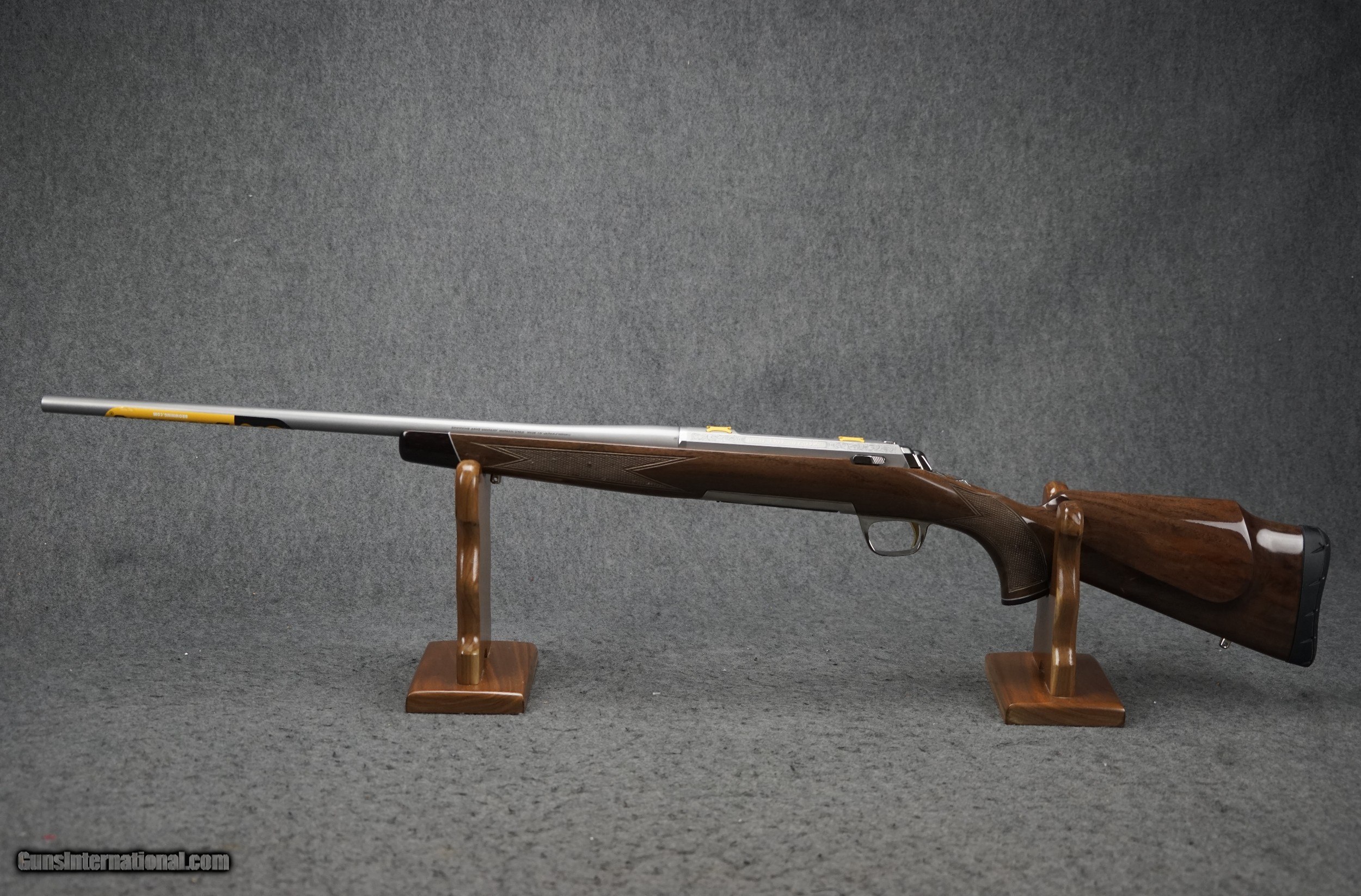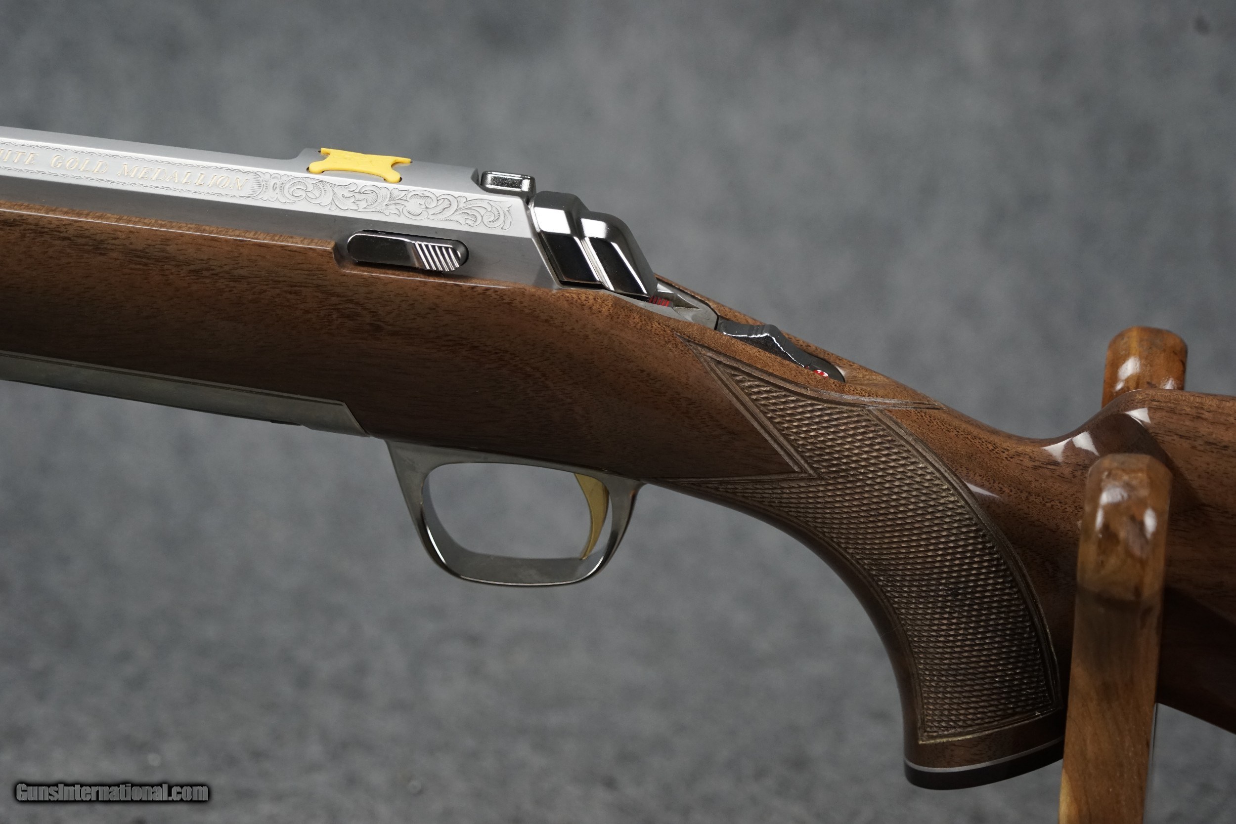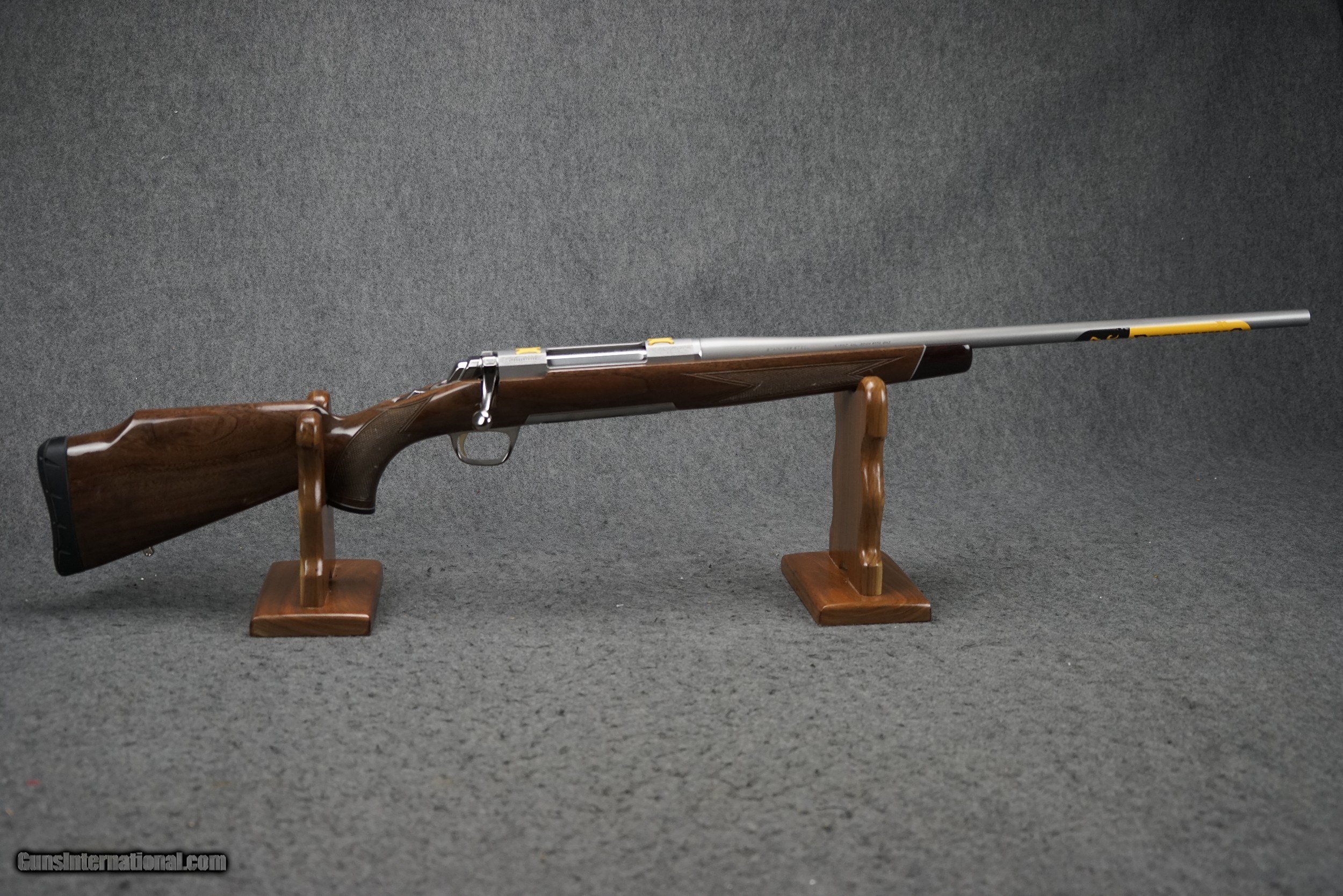 Description: Action Length Long Action Caliber 30-06 Spfld Barrel Length 22 Overall Length 42 3/4 Length of Pull 13 5/8 Drop at Comb 3/4 Drop at Heel 1 7/16 Weight 6 lbs 12 oz Magazine Capacity 4 Twist Rate 10 Barrel Finish Satin Stock Finish Gloss Wood Grade Grade IV/V Receiver Finish Satin Chamber Finish Polished Barrel Material Stainless Barrel Contour Sporter Stock Material Black Walnut Recoil Pad Inflex 1, Small Pistol Grip Cap Rosewood Checkering Cut 18 LPI Sling Swivel Studs Nickel Receiver Material Stainless Trigger Finish Gold Plated Bolt Slide Finish High Gloss Magazine Type Detachable Trigger Material Alloy Trigger Guard Material Alloy Trigger Guard Engraving Buck Mark in Gold Floor Plate Material Composite Drilled and Tapped for Scope Yes SOLD Rifle Caliber: .30-06 Springfield Manufacturer: Browning Model: X-Bolt White Gold Medallion Barrel Length: 22" Barrel Condition: BRAND NEW |
