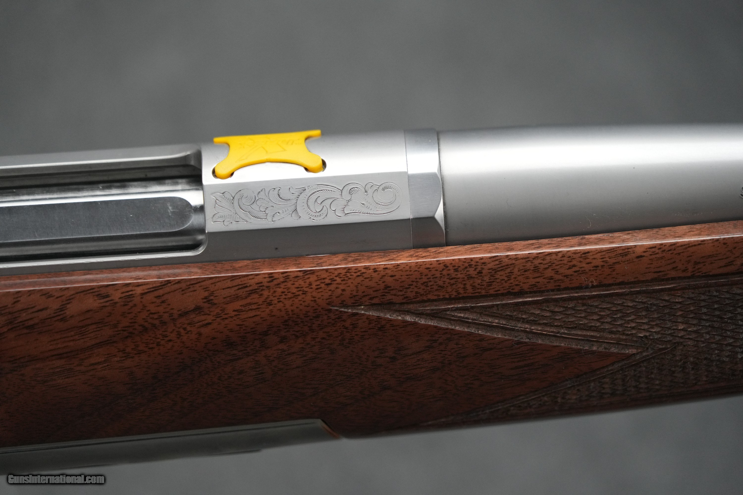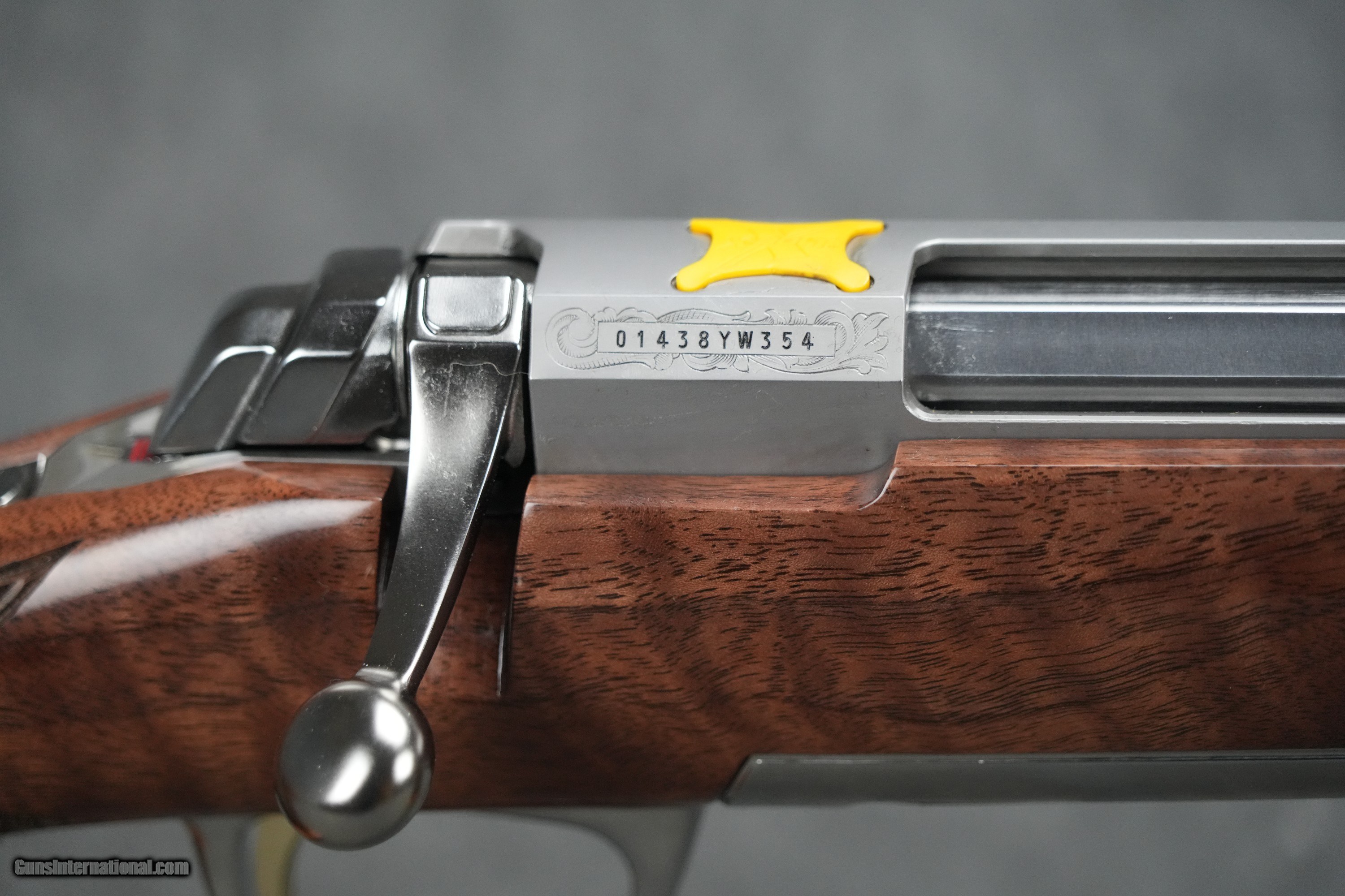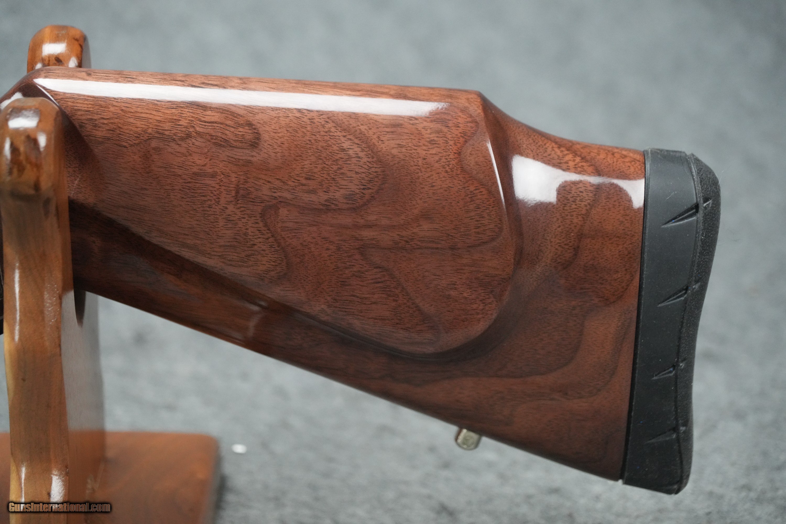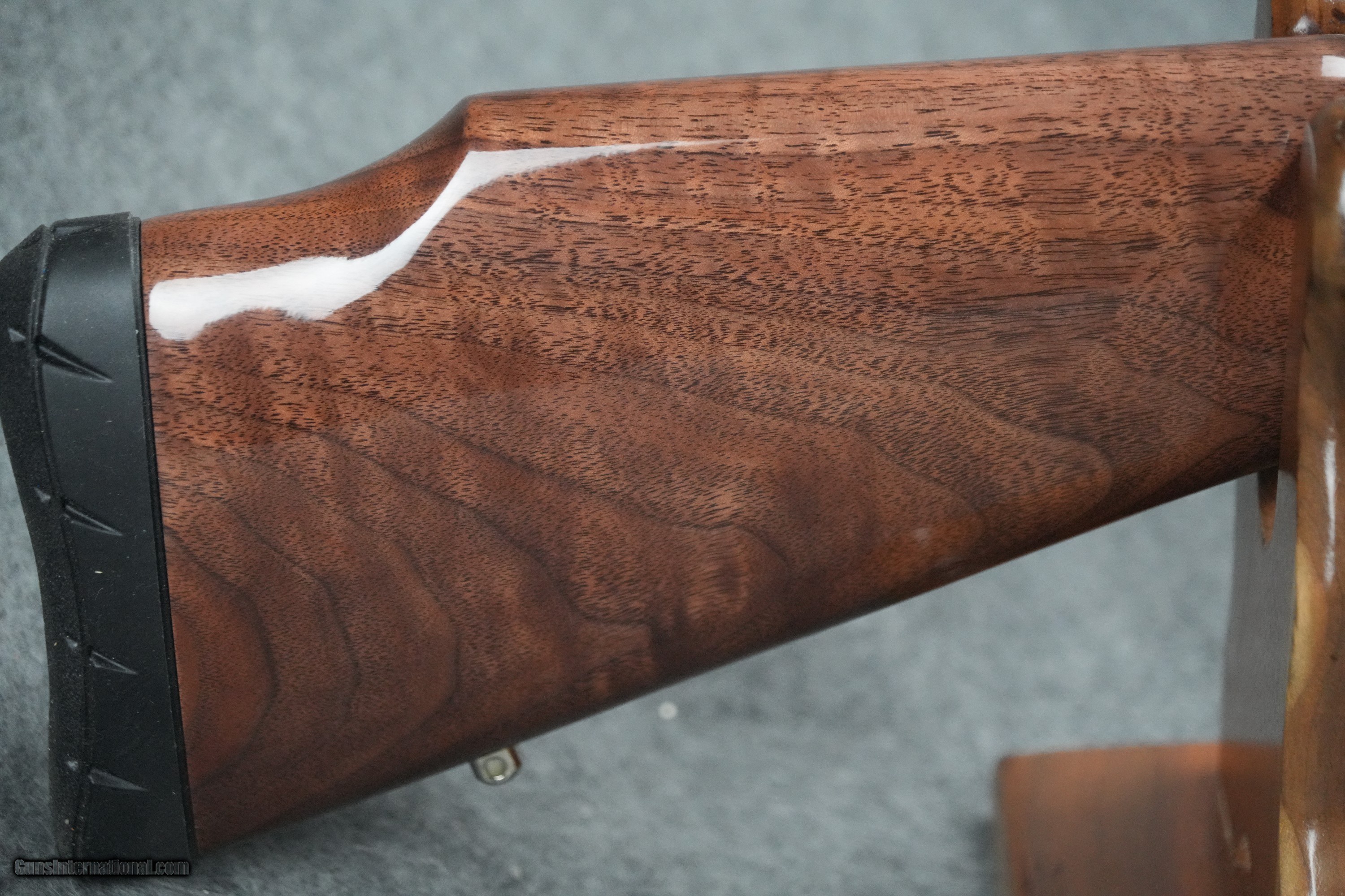Description: *NOTE: The firearm pictured is the ACTUAL gun for sale! All images are of the ACTUAL item, unless specified otherwise. The item seen is the item you will receive. * Browning has over 50 years of experience with bolt-action high-powered rifles. Today's X-Bolt rifle inherits the strongest, most note-worthy features of its predecessors. The X-Bolt White Gold model has a Monte Carlo style stock, a feature recognized as the comb steps sharply down toward the heel of the buttstock, allowing more contact between the recoil pad of the stock and the shooter's shoulder. With this design, the recoil of the fired shell comes directly back or in-line with the stronger part of the inner shoulder, making the rifle more pleasant to shoot, especially when a long day at the range is expected. It is okay for some guns to be referred to as "beautiful" even though it is still a hard working hunting tool. The X-Bolt White Gold is beautifully adorned with a polished and engraved stainless steel receiver and stainless steel barrel. The stock is gloss-finished and finely checkered with rosewood fore-end and grip caps. X-Bolt White Gold Medallion Features Polished, engraved stainless steel receiver Sporter contour barrel for the ideal blend of accuracy and weight savings Raised cheekpiece Gloss finish Grade IV/V checkered walnut stock with rosewood fore-end tip and grip cap Action Length Long Action Caliber 30-06 Spfld Barrel Length 22 Overall Length 42 3/4 Length of Pull 13 5/8 Drop at Comb 3/4 Drop at Heel 1 7/16 Weight 6 lbs 12 oz Magazine Capacity 4 Twist Rate 10 Barrel Finish Satin Stock Finish Gloss Wood Grade Grade IV/V Receiver Finish Satin Chamber Finish Polished Barrel Material Stainless Barrel Contour Sporter Stock Material Black Walnut Recoil Pad Inflex 1, Small Pistol Grip Cap Rosewood Checkering Cut 18 LPI Sling Swivel Studs Nickel Receiver Material Stainless Trigger Finish Gold Plated Bolt Slide Finish High Gloss Magazine Type Detachable Trigger Material Alloy Trigger Guard Material Alloy Trigger Guard Engraving Buck Mark in Gold Floor Plate Material Composite Drilled and Tapped for Scope Yes SOLD Rifle Caliber: .30-06 Springfield Manufacturer: Browning Model: X-Bolt White Gold Medallion Barrel Length: 22" Barrel Condition: BRAND NEW |