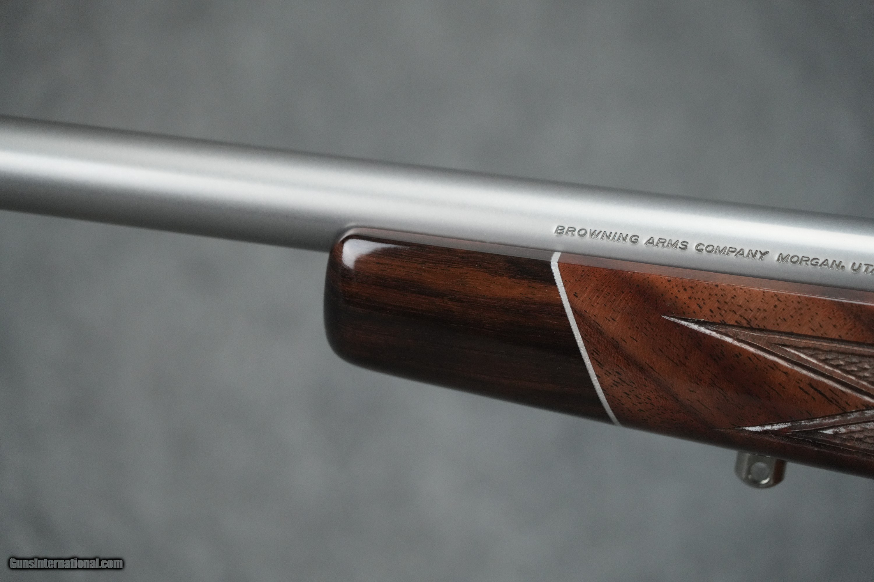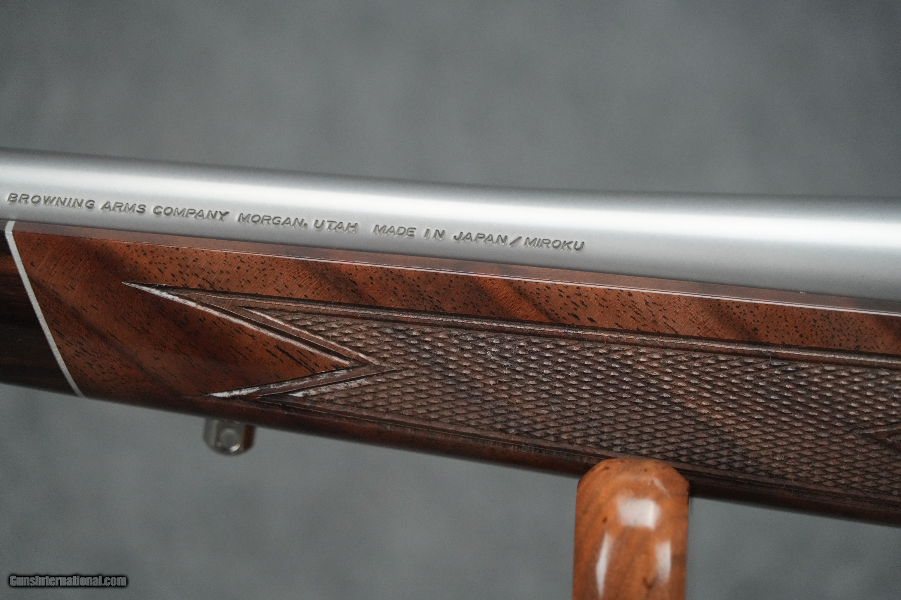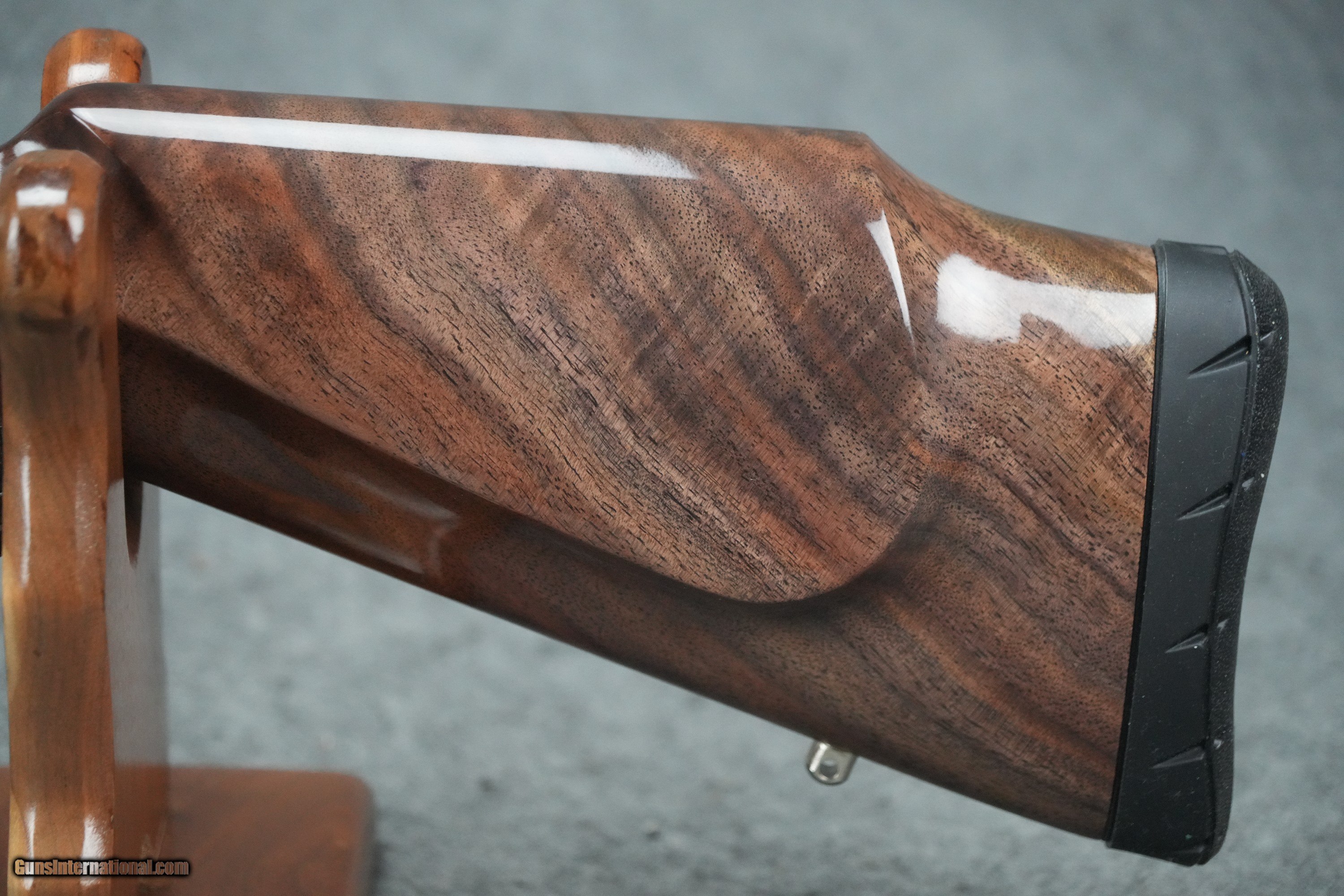 Description: Browning has over 50 years of experience with bolt-action high-powered rifles. Today's X-Bolt rifle inherits the strongest, most note-worthy features of its predecessors. The X-Bolt White Gold model has a Monte Carlo style stock, a feature recognized as the comb steps sharply down toward the heel of the buttstock, allowing more contact between the recoil pad of the stock and the shooter's shoulder. With this design, the recoil of the fired shell comes directly back or in-line with the stronger part of the inner shoulder, making the rifle more pleasant to shoot, especially when a long day at the range is expected. It is okay for some guns to be referred to as "beautiful" even though it is still a hard working hunting tool. The X-Bolt White Gold is beautifully adorned with a polished and engraved stainless steel receiver and stainless steel barrel. The stock is gloss-finished and finely checkered with rosewood fore-end and grip caps. X-Bolt White Gold Medallion Features Polished, engraved stainless steel receiver Sporter contour barrel for the ideal blend of accuracy and weight savings Raised cheekpiece Gloss finish Grade IV/V checkered walnut stock with rosewood fore-end tip and grip cap Action Length Long Action Caliber 300 Win Mag Barrel Length 26 Overall Length 46 3/4 Length of Pull 13 5/8 Drop at Comb 3/4 Drop at Heel 1 7/16 Weight 7 lbs 0 oz Magazine Capacity 3 Twist Rate 10 Barrel Finish Satin Stock Finish Gloss Wood Grade Grade IV/V Receiver Finish Satin Chamber Finish Polished Barrel Material Stainless Barrel Contour Sporter Stock Material Black Walnut Recoil Pad Inflex 1, Small Pistol Grip Cap Rosewood Checkering Cut 18 LPI Sling Swivel Studs Nickel Receiver Material Stainless Trigger Finish Gold Plated Bolt Slide Finish High Gloss Magazine Type Detachable Trigger Material Alloy Trigger Guard Material Alloy Trigger Guard Engraving Buck Mark in Gold Floor Plate Material Composite Drilled and Tapped for Scope Yes SOLD Rifle Caliber: .300 Winchester Magnum Manufacturer: Browning Model: X-Bolt White Gold Medallion Barrel Length: 26" Barrel Condition: BRAND NEW |