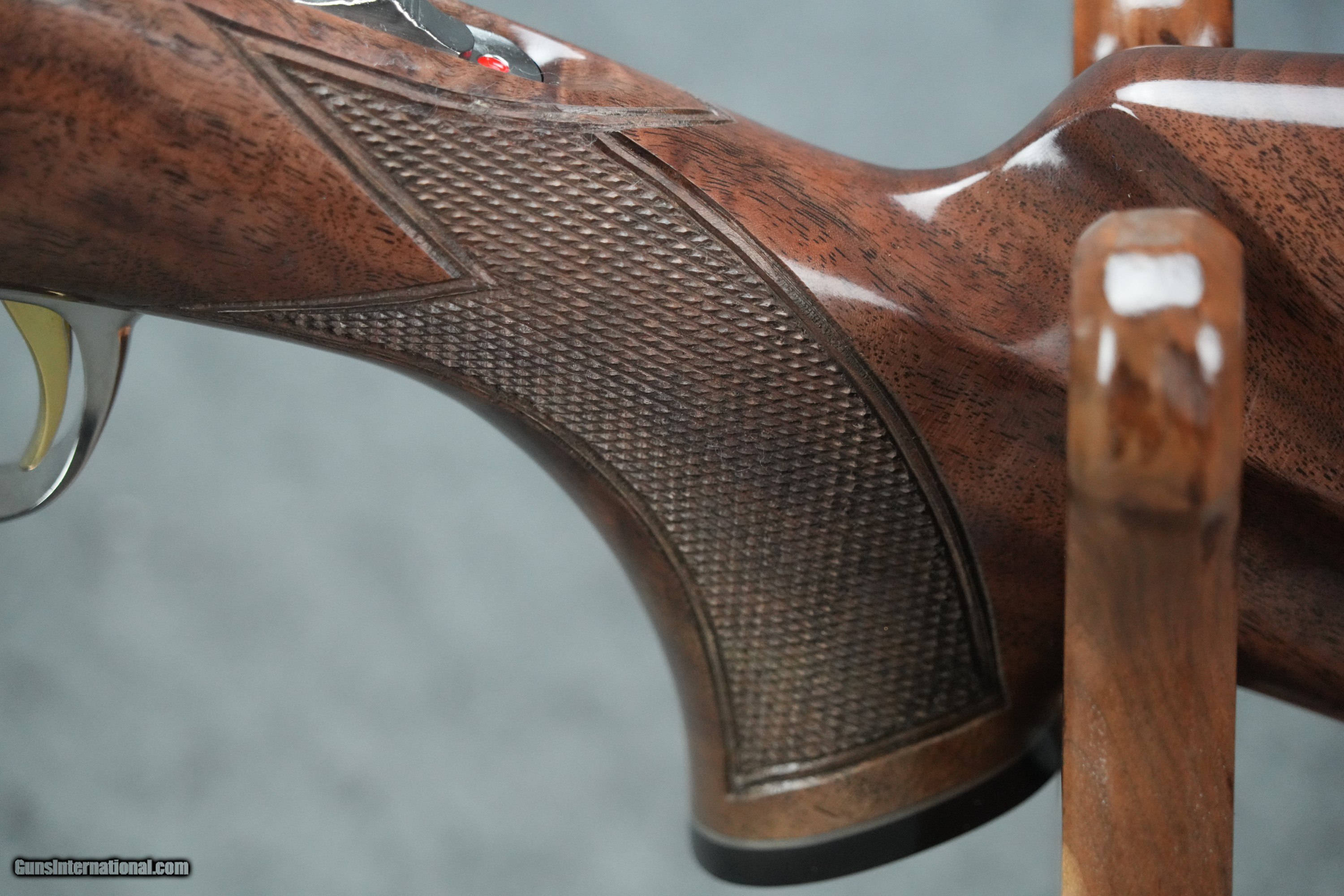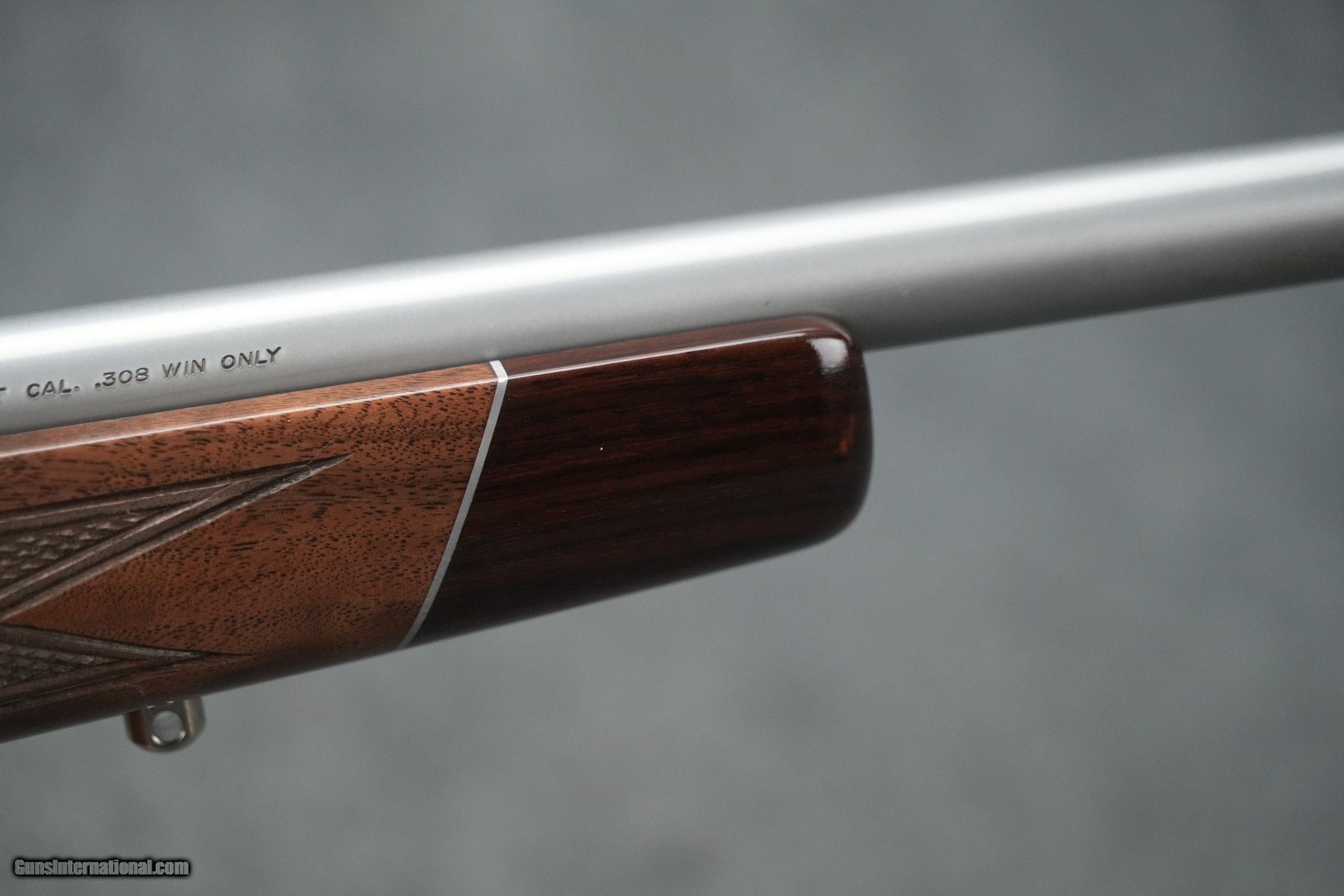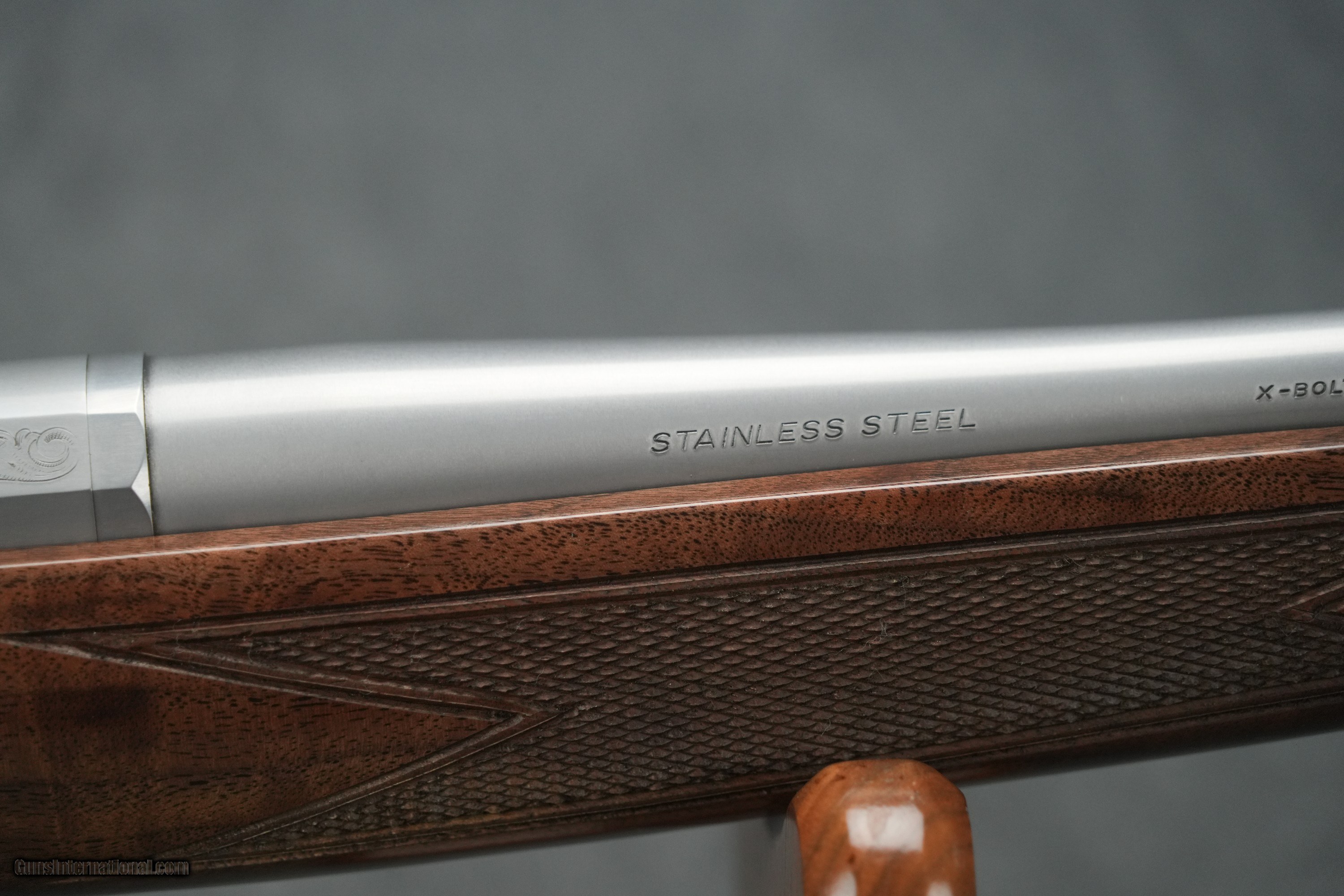 Description: Browning has over 50 years of experience with bolt-action high-powered rifles. Today's X-Bolt rifle inherits the strongest, most note-worthy features of its predecessors. The X-Bolt White Gold model has a Monte Carlo style stock, a feature recognized as the comb steps sharply down toward the heel of the buttstock, allowing more contact between the recoil pad of the stock and the shooter's shoulder. With this design, the recoil of the fired shell comes directly back or in-line with the stronger part of the inner shoulder, making the rifle more pleasant to shoot, especially when a long day at the range is expected. It is okay for some guns to be referred to as "beautiful" even though it is still a hard working hunting tool. The X-Bolt White Gold is beautifully adorned with a polished and engraved stainless steel receiver and stainless steel barrel. The stock is gloss-finished and finely checkered with rosewood fore-end and grip caps. X-Bolt White Gold Medallion Features Polished, engraved stainless steel receiver Sporter contour barrel for the ideal blend of accuracy and weight savings Raised cheekpiece Gloss finish Grade IV/V checkered walnut stock with rosewood fore-end tip and grip cap Action Length Short Action Caliber 308 Win Barrel Length 22 Overall Length 41 3/4 Length of Pull 13 5/8 Drop at Comb 3/4 Drop at Heel 1 7/16 Magazine Capacity 4 Twist Rate 12 Barrel Finish Satin Stock Finish Gloss Wood Grade Grade IV/V Receiver Finish Satin Chamber Finish Polished Barrel Material Stainless Barrel Contour Sporter Stock Material Black Walnut Recoil Pad Inflex 1, Small Pistol Grip Cap Rosewood Checkering Cut 18 LPI Sling Swivel Studs Nickel Receiver Material Stainless Trigger Finish Gold Plated Bolt Slide Finish High Gloss Magazine Type Detachable Trigger Material Alloy Trigger Guard Material Alloy Trigger Guard Engraving Buck Mark in Gold Floor Plate Material Composite Drilled and Tapped for Scope Yes SOLD Rifle Caliber: .308 Winchester Manufacturer: Browning Model: X-Bolt White Gold Medallion Barrel Length: 22" Barrel Condition: BRAND NEW |