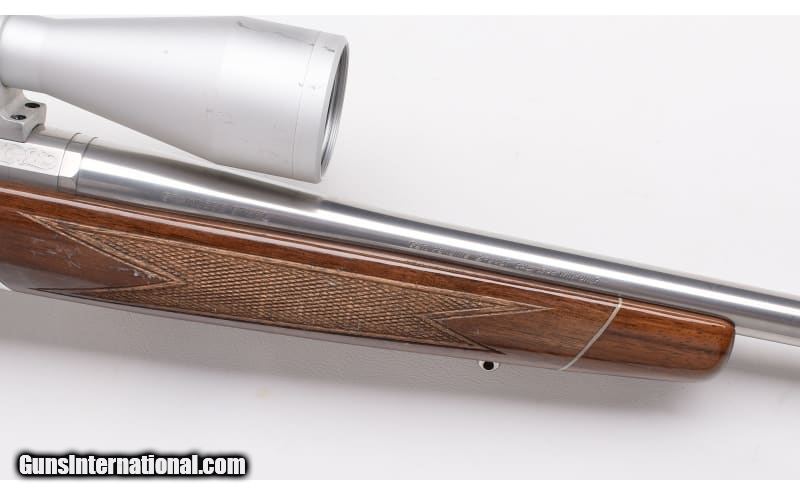 Description: Pre-owned X-Bolt features Grade III/IV American walnut Monte Carlo style stock with rosewood caps and a gloss finish. Polished stainless steel receiver with gray finish and scroll engraving. Pre-owned, shows few scattered nicks and scratches. .308 Winchester SOLD Metal Condition: Stainless w/ Engraved receiver Wood Condition: High gloss Walnut Bore Condition: Bright Sharp Barrels: 22 Inch Stock Dimensions: 13 1/2 Butt Pad: Inflex Recoil Pad Weight: 8 lb - 4 oz Sights: Nikon Prostaff 3-12X Item Location: Buda, TX |