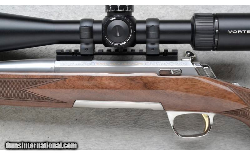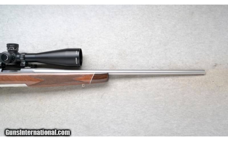Description: This Browning Model X-Bolt White Gold Medallion is a right hand bolt action rifle in 6.5 Creedmoor Cal. It has a 22 inch barrel. It is outfitted with a Vortex 5-25x50 Scope. The butt stock is a checkered grip walnut pistol grip with a raised cheekpiece and rosewood cap. The forearm is a checkered grip walnut with a rosewood tip. The receiver is lightly engraved. Made in Japan. 6.5 Creedmoor SOLD Chambers: Detachable Magazine. Metal Condition: Excellent. Wood Condition: Excellent. Some minor handling marks. Bore Condition: Excellent. Barrels: 22 inch stainless steel. Stock Dimensions: LOP 13 5/8 inches. Fore End: Checkered grip walnut with a rosewood tip. Butt Pad: Inflex Technologies black rubber recoil pad. Weight: 9 lb. 8 oz. Sights: Vortex Viper PST 5-25x50 Scope. Item Location: Richfield, WI |
